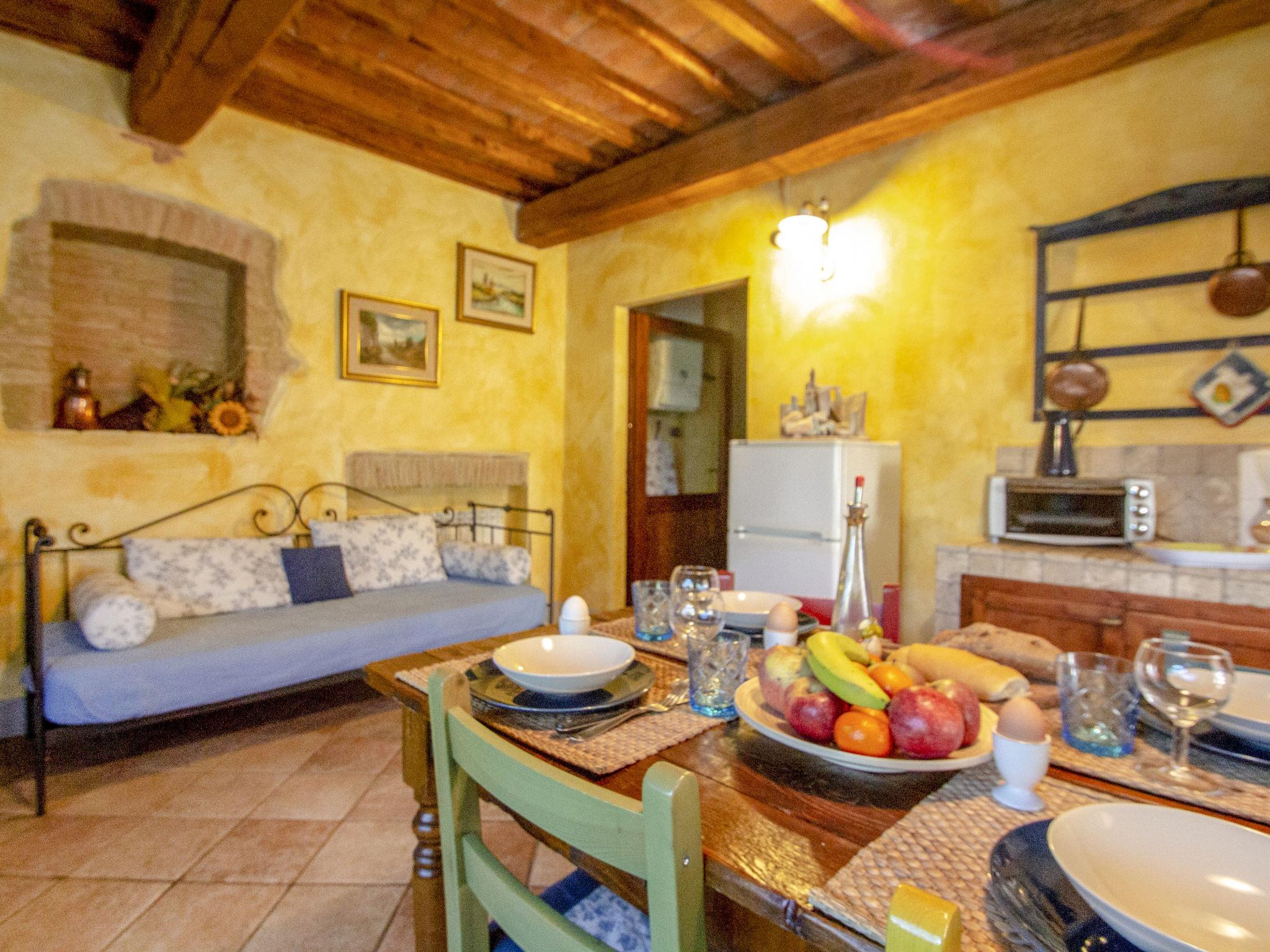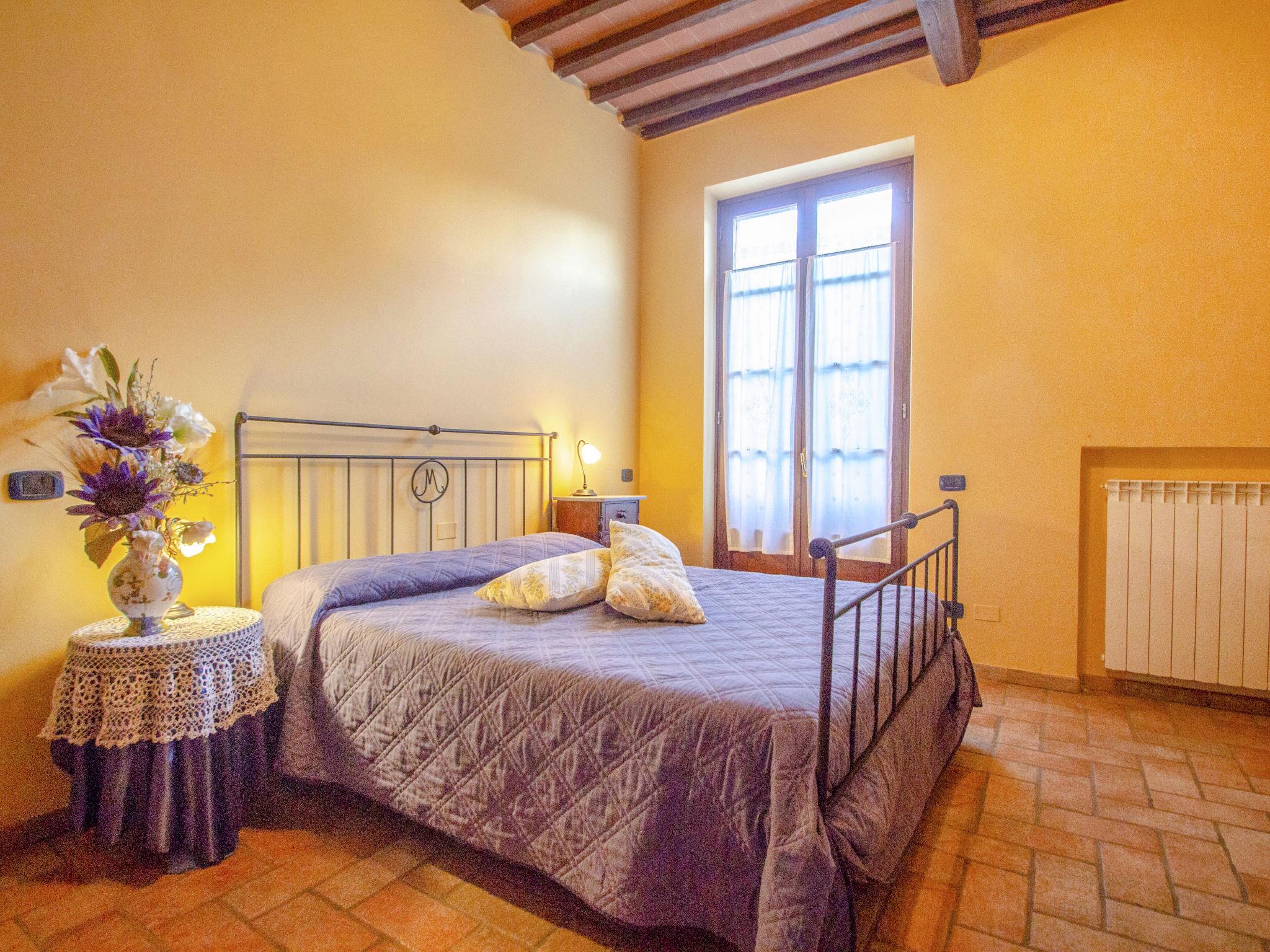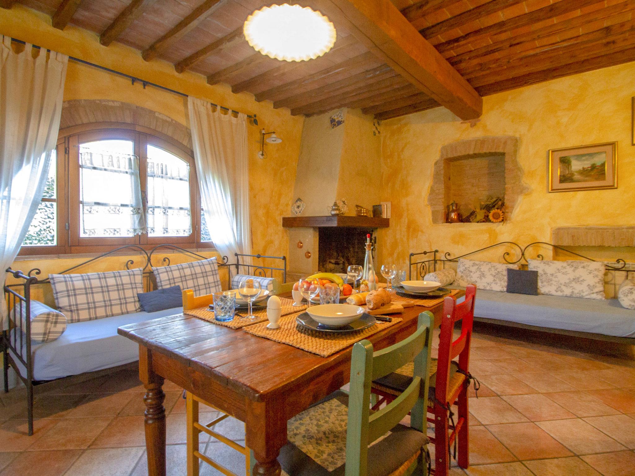 Podere Gioia consists of two independent housing units. Our offer includes three apartments, two of which are in the same unit and the third apartment is a few meters away. Each apartment has an independent entrance and its own kitchen equipped and habitable. The apartments are communicating with each other only from the outside. Country house "Podere Gioia", surrounded by trees. 10 km from the centre of Castellina in Chianti, 15 km from the centre of Siena, 45 km from the centre of Firenze, in a quiet position, in the countryside. Private: garden, swimming pool (depth 140 - 200 cm, seasonal availability: 24.Apr. - 16.Oct.). Garden furniture, barbecue. In the house: breakfast room, internet access, central heating system, washing machine (for shared use, extra), heating to be paid on the spot (01.Nov. - 15.Apr.) (extra). Room cleaning on request (extra). Breakfast possible. Roofed, parking at the house. Shop 2 km, bus stop 2 km, railway station "Castellina Scalo" 2 km. Golf course 15 km, tennis 3 km, riding stable 2 km. Please note: the owner lives on the same property.
