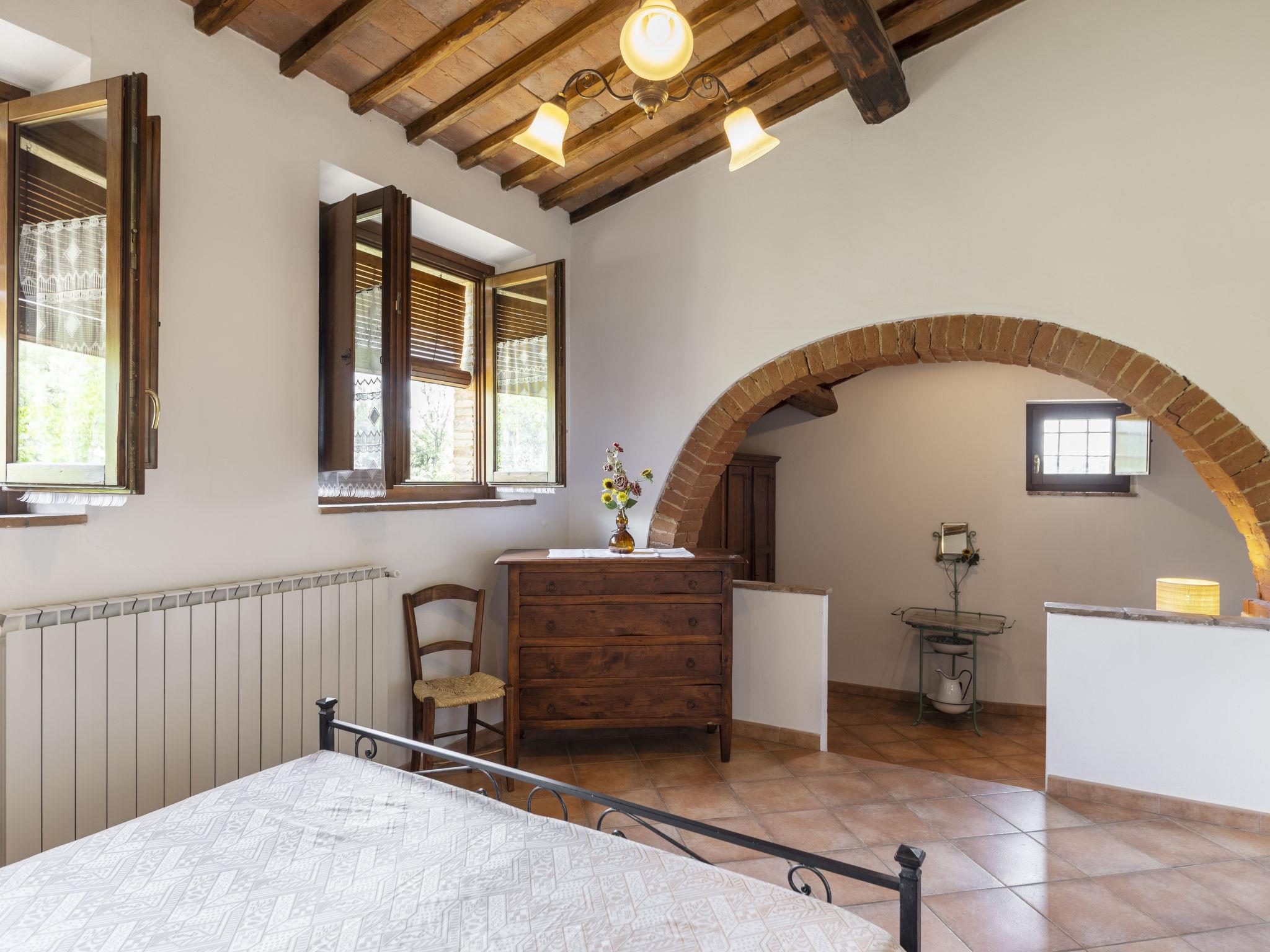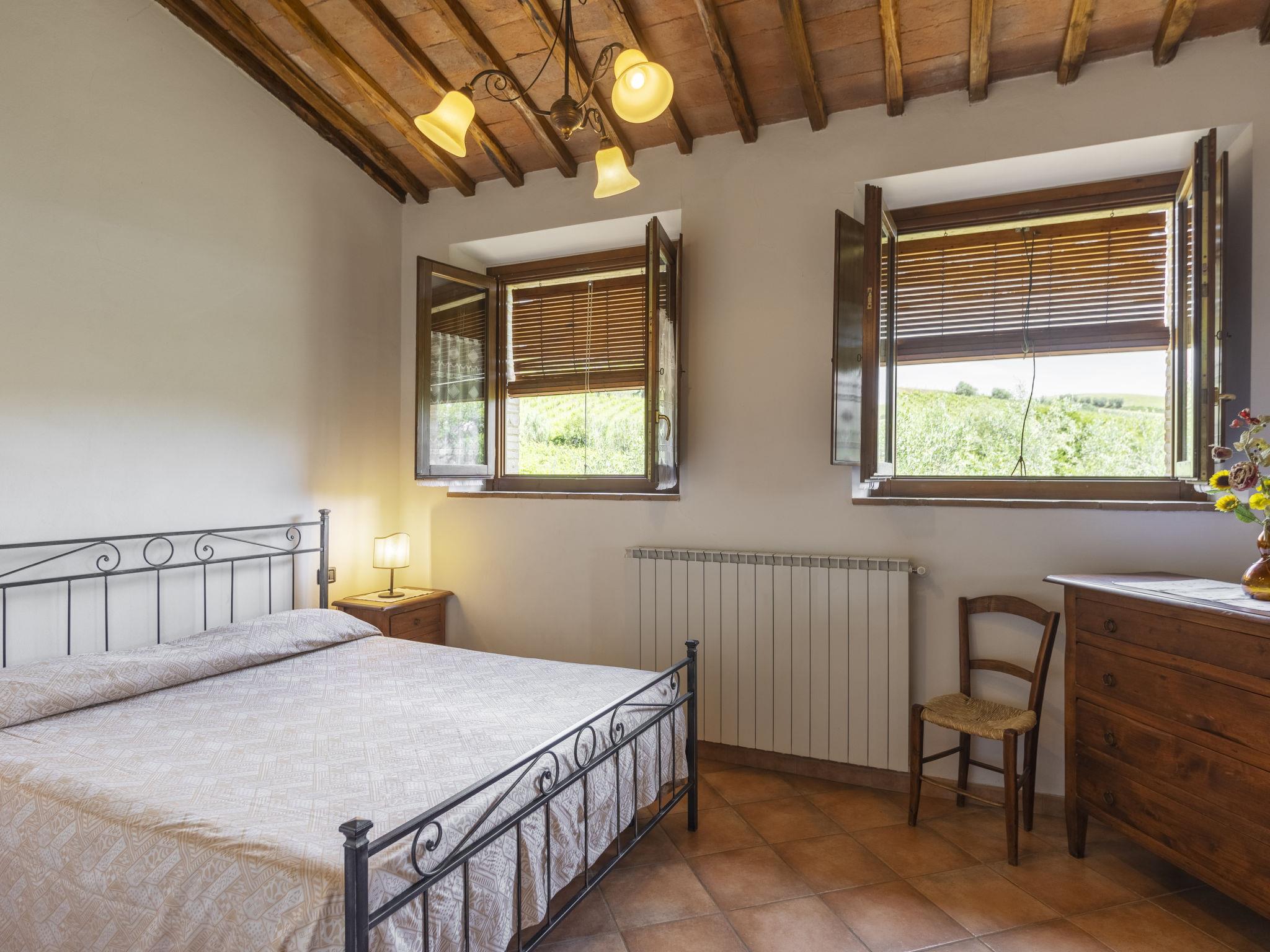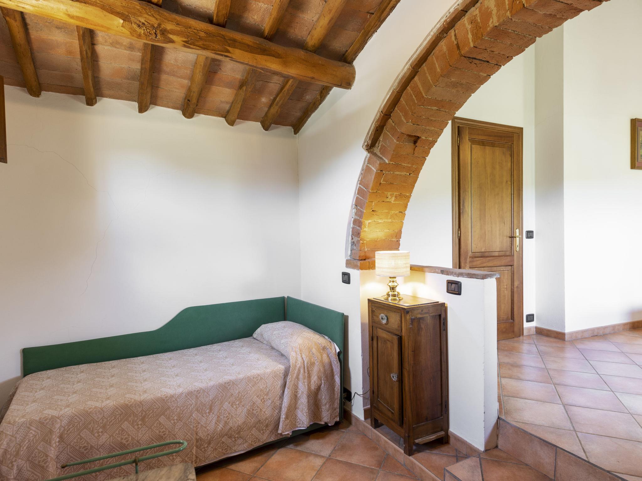 Chianti Classico 14 km from Castellina in Chianti: Dated back to the 1600, is surrounded by the magnificent Tuscan landscape, among vineyards and olive groves. Set on a small working farm there are the main house and the barn now divided in 3 units. Each apartment has independent entrance and outdoor private area. Rustic large working farm "Le Buche". 14 km from the centre of Castellina in Chianti, 38 km from the centre of Siena, 49 km from the centre of Firenze, in a quiet, sunny position, in the countryside. For shared use: swimming pool fenced (6 x 12 m, depth 130 - 230 cm, seasonal availability: 12.Apr. - 01.Nov.). Table tennis, barbecue. In the house: central heating system, heating to be paid on the spot, heating available only from 01.Nov. - 15.Apr.. Motor access to the house (600 m via unmade road). Parking on the premises. Shop 6 km, grocery 6 km, restaurant 6 km, bus stop 6 km, railway station "Poggibonsi" 6 km, thermal baths "Rapolano Terme" 64 km. Golf course (9 hole) 10 km, tennis 6 km, riding stable 10 km. Nearby attractions: Barberino Val D'elsa 16 km, San Gimignano 21 km, Monteriggioni e San Donato 22 km, Radda in Chianti 24 km, Badia a Passignano 25 km, Volterra 40 km. Local sale of farm products.