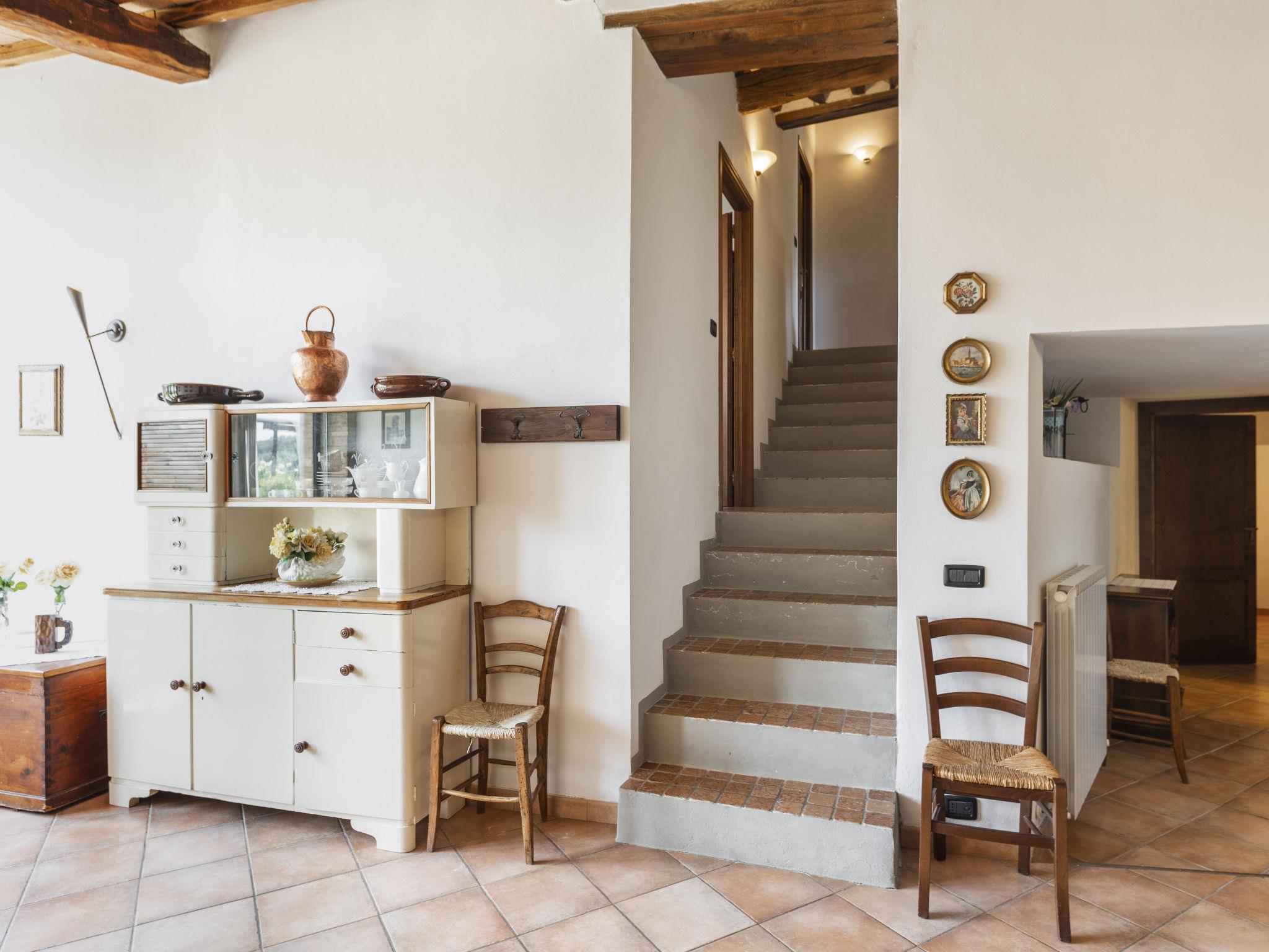 "Il Forno", 5-room apartment 130 m2 on 3 levels, on the ground floor. Beautiful and rustic furnishings: living/dining room. Exit to the loggia. 1 double bedroom, ceiling height 240 cm. Kitchenette (4 hot plates, oven, dishwasher, freezer). Shower/bidet/WC. Upper floor: 1 double bedroom. 2nd upper floor: 1 room with 2 beds and shower/bidet/WC. 1 room with 1 bed and 1 double bed. Shower/bidet/WC. Garden. Barbecue. Facilities: Internet (WiFi, free). Please note: maximum 1 pet/ dog allowed. Smoke alarm, fire extinguisher. The bedroom on the ground floor has a window high on the wall. The upper floor is a mezzanine (6 steps). The ensuite bedroom has also access from outside/ Independent entrance from a small loggia with old wood burning oven. IT052022B52N2F7CIS