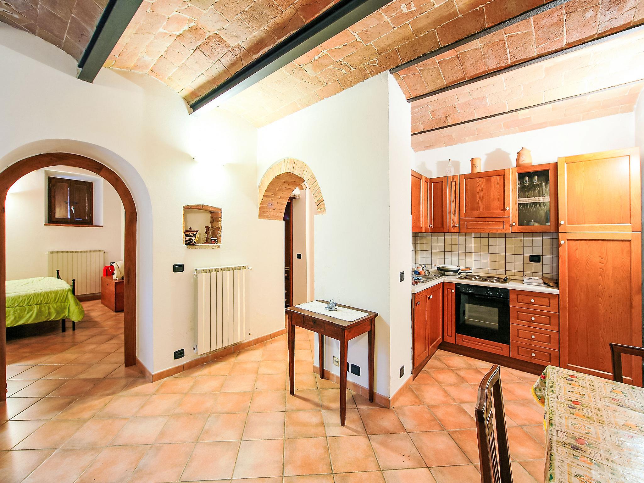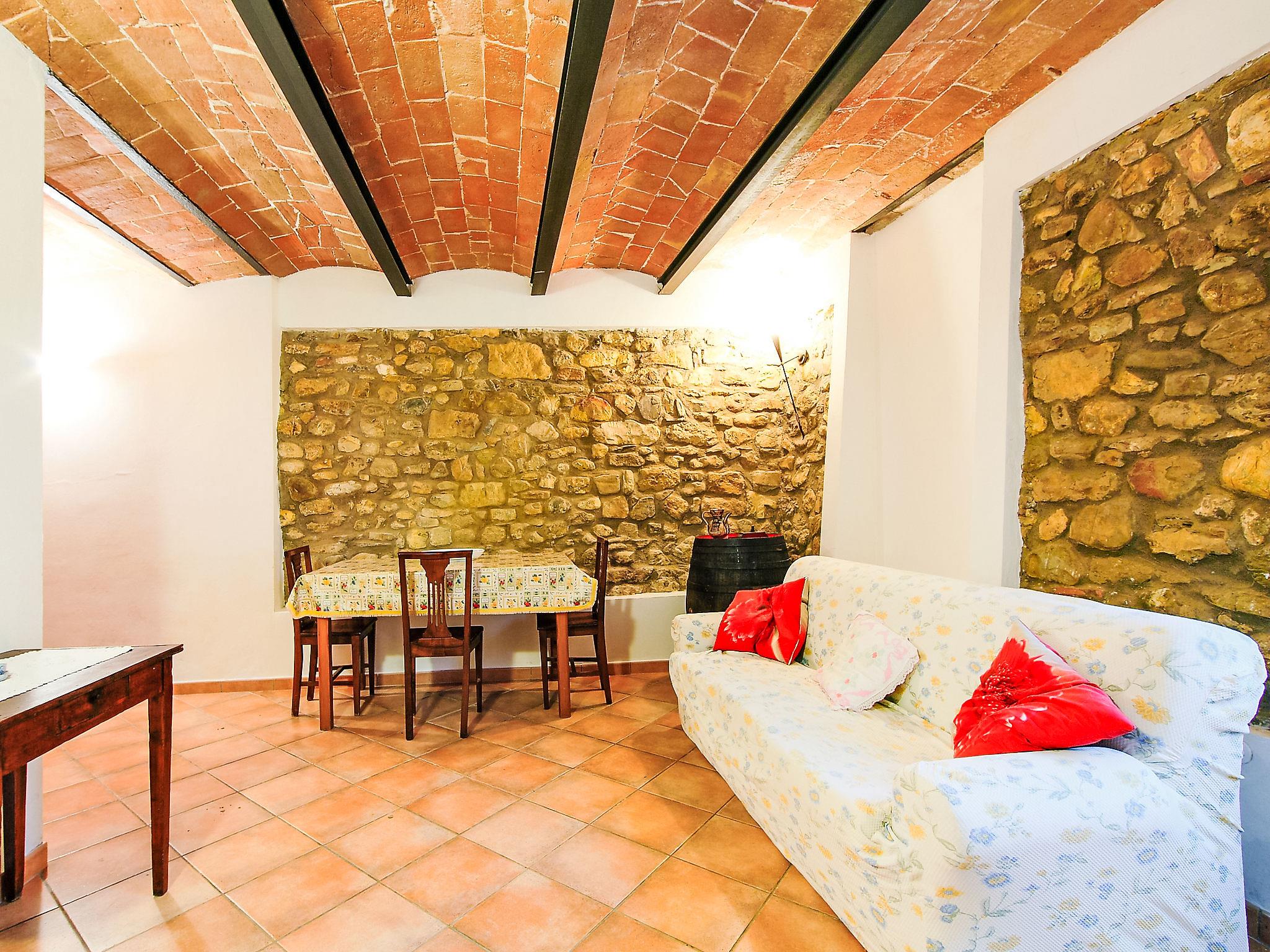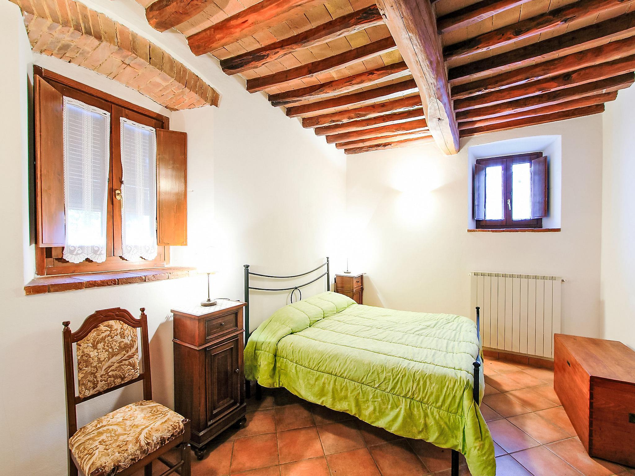 Chianti Classico 14 km from Castellina in Chianti: Dated back to the 1600, is surrounded by the magnificent Tuscan landscape, among vineyards and olive groves. Set on a small working farm there are the main house and the barn now divided in 3 units. Each apartment has independent entrance and outdoor private area. Rustic large working farm "Le Buche". 14 km from the centre of Castellina in Chianti, 38 km from the centre of Siena, 49 km from the centre of Firenze, in a quiet, sunny position, in the countryside. For shared use: swimming pool fenced (6 x 12 m, depth 130 - 230 cm, seasonal availability: 12.Apr. - 01.Nov.). Table tennis, barbecue. In the house: central heating system, heating to be paid on the spot, heating available only from 01.Nov. - 15.Apr.. Motor access to the house (600 m via unmade road). Parking on the premises. Shop 6 km, grocery 6 km, restaurant 6 km, bus stop 6 km, railway station "Poggibonsi" 6 km, thermal baths "Rapolano Terme" 64 km. Golf course (9 hole) 10 km, tennis 6 km, riding stable 10 km. Nearby attractions: Barberino Val D'elsa 16 km, San Gimignano 21 km, Monteriggioni e San Donato 22 km, Radda in Chianti 24 km, Badia a Passignano 25 km, Volterra 40 km. Local sale of farm products.