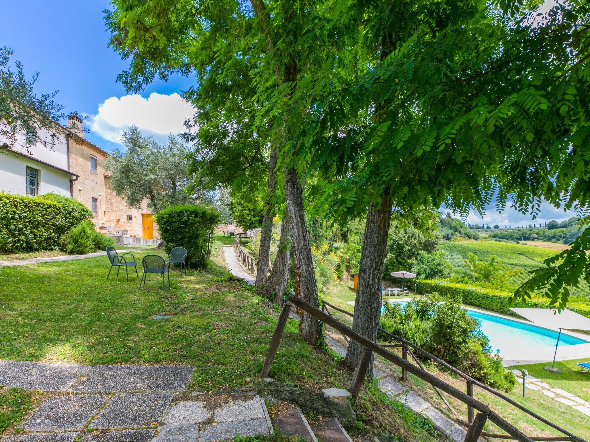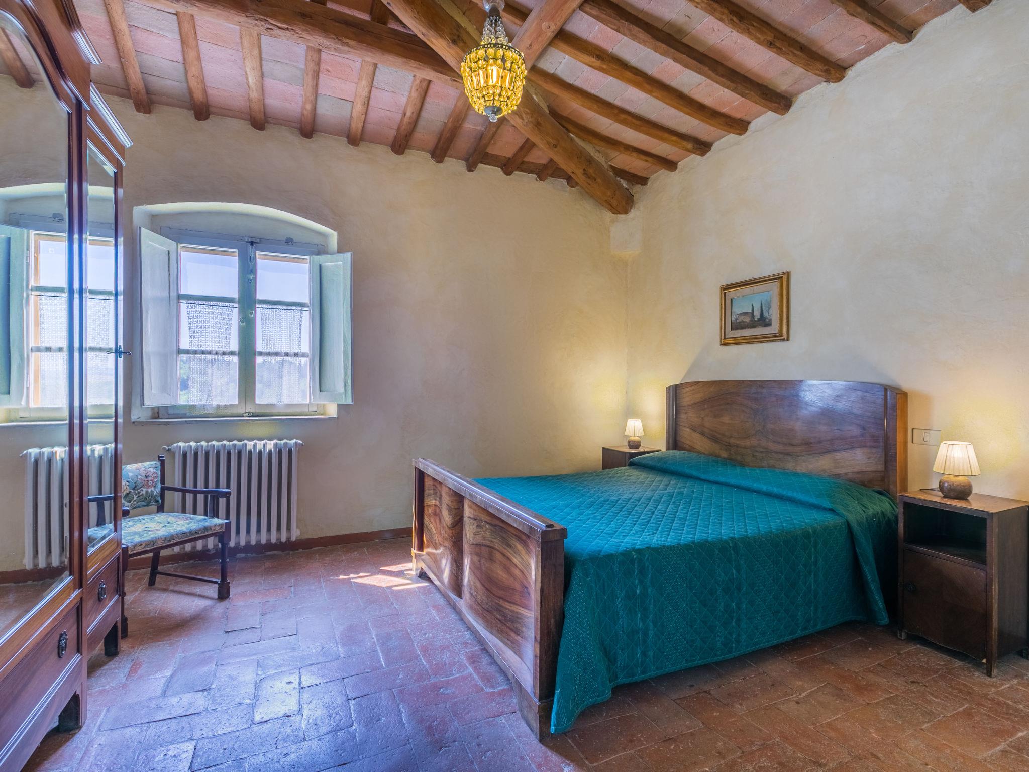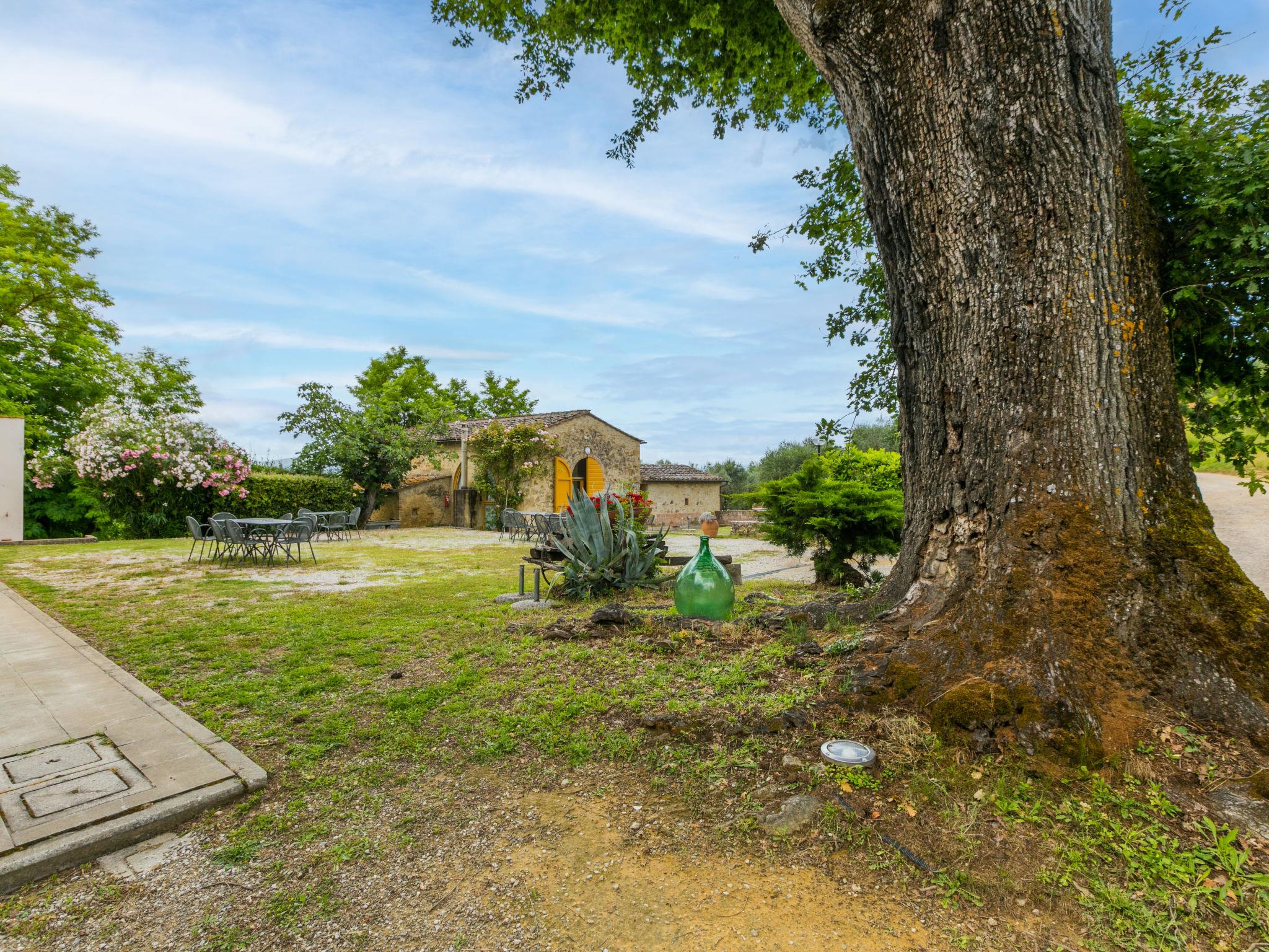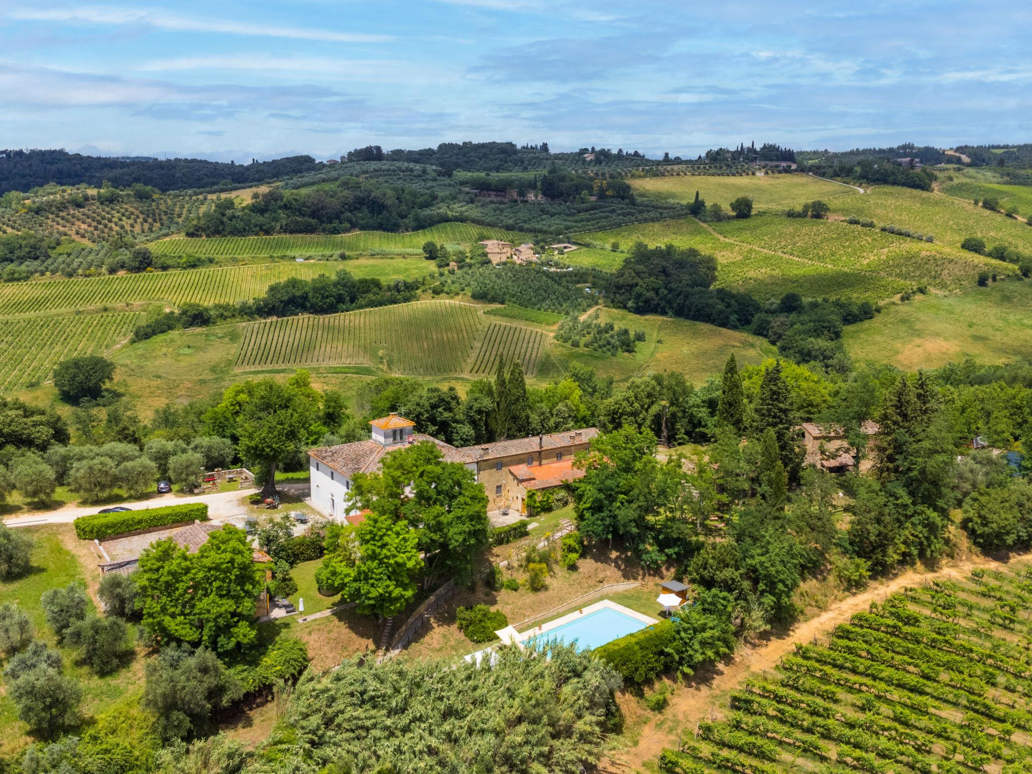 The farm surrounded by olive groves and vineyards of Chianti. Each of 12 apartments are located in the main house and a former barn has its own outside area with a table on the terraces surrounding with the main building. The location is very central and ideal for trips to discover the natural and cultural beauties of the region large working farm "La Moraia", renovated. 14 km from the centre of Castellina in Chianti, 18 km from the centre of San Gimignano, 50 km from the centre of Firenze, in an elevated position, in the countryside. For shared use: garden, swimming pool (7 x 14 m, depth 120 - 160 cm, seasonal availability: 09.May. - 26.Sep. pool opening hours: 09:00-19:00). Patio, barbecue. In the house: central heating system, washing machine (for shared use, extra), heating to be paid on the spot, heating available only from 01.Nov. - 04.Apr.. Motor access to the house (1 km via unmade road). Parking. Supermarket 5 km, restaurant 5 km, bus stop 5 km, railway station "Poggibonsi" 5 km, thermal baths "Rapolano Terme" 55 km. Tennis 5 km. Nearby attractions: Monteriggioni 14 km, Barberino Val d'Elsa 16 km, San Donato 21 km, Radda in Chianti e Badia a Passignano 25 km, Siena 30 km, Volterra 38 km. Please note: the photograph shows a typical example. Additional accommodations can be booked. On request, at the moment of booking, there are opportunities to rent bicycles.