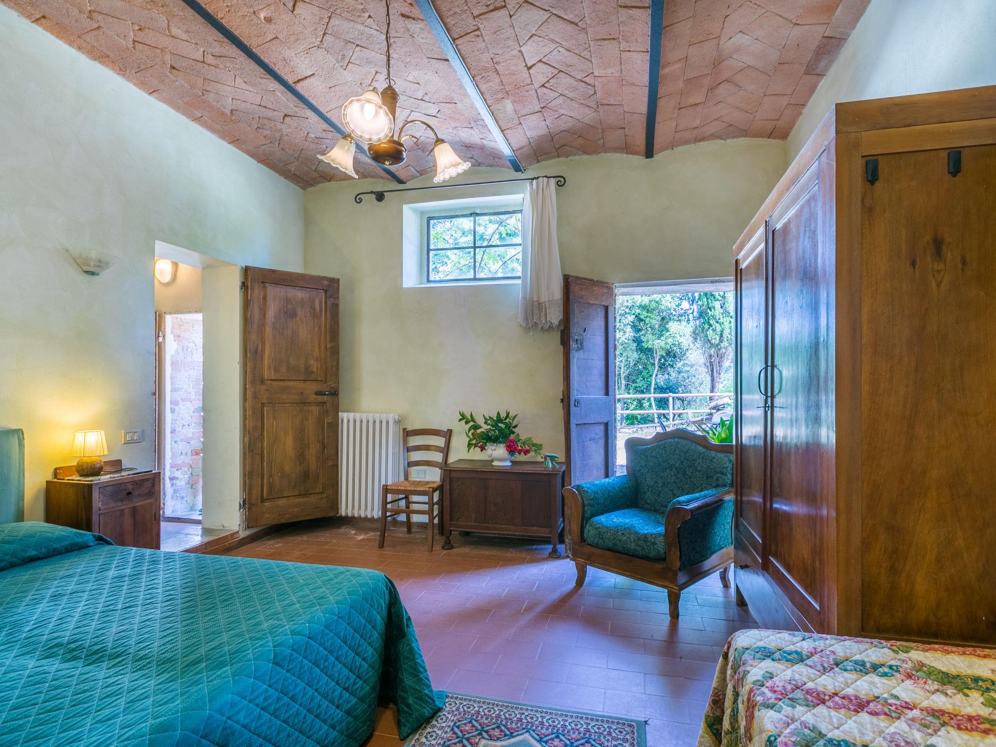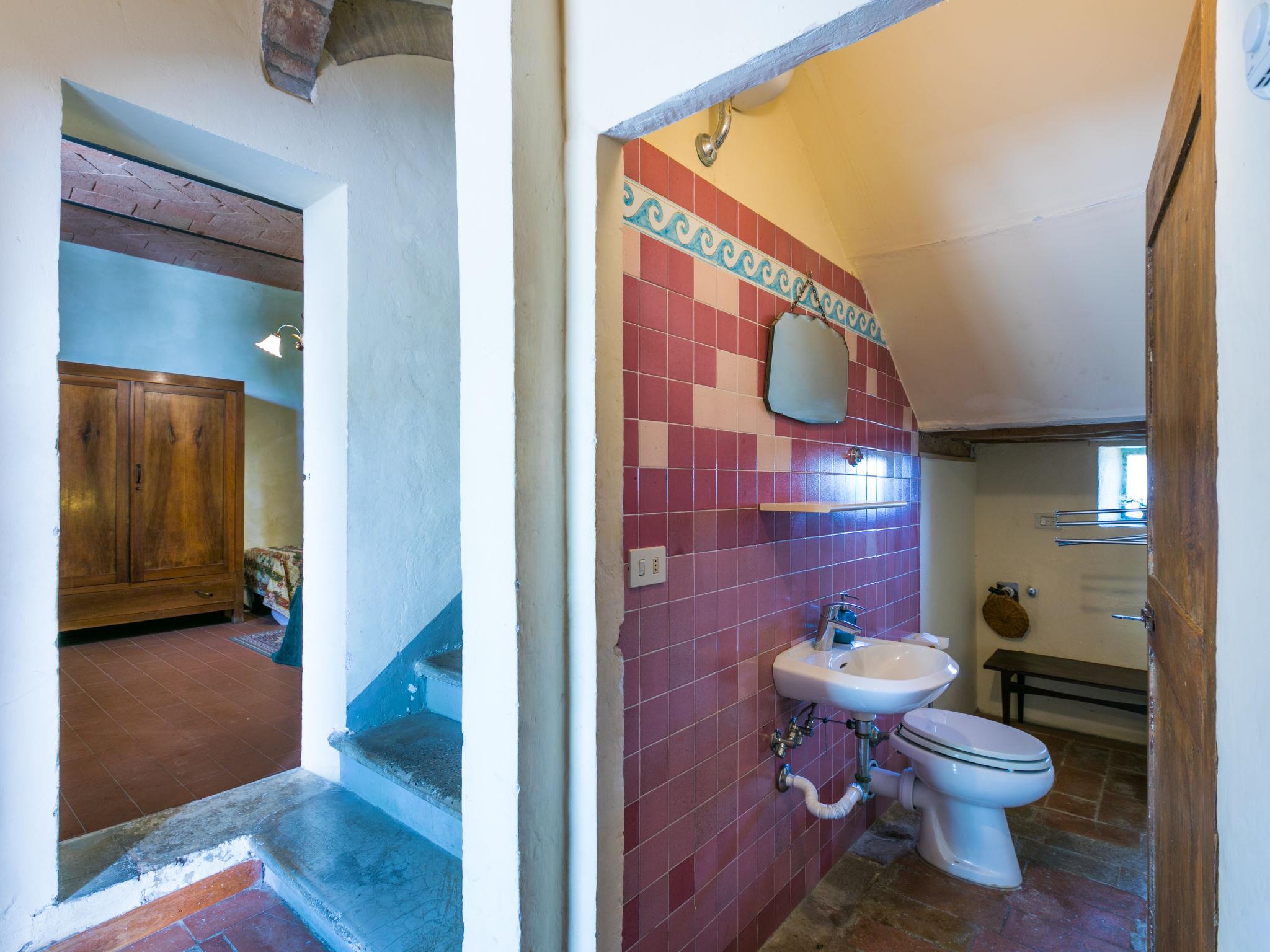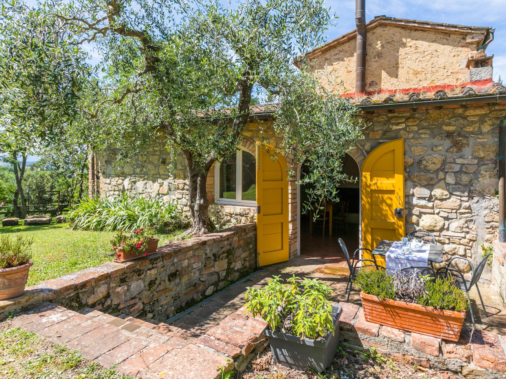 The farm surrounded by olive groves and vineyards of Chianti. Each of 12 apartments are located in the main house and a former barn has its own outside area with a table on the terraces surrounding with the main building. The location is very central and ideal for trips to discover the natural and cultural beauties of the region large working farm "La Moraia", renovated. 14 km from the centre of Castellina in Chianti, 18 km from the centre of San Gimignano, 50 km from the centre of Firenze, in an elevated position, in the countryside. For shared use: garden, swimming pool (7 x 14 m, depth 120 - 160 cm, seasonal availability: 09.May. - 26.Sep. pool opening hours: 09:00-19:00). Patio, barbecue. In the house: central heating system, washing machine (for shared use, extra), heating to be paid on the spot, heating available only from 01.Nov. - 04.Apr.. Motor access to the house (1 km via unmade road). Parking. Supermarket 5 km, restaurant 5 km, bus stop 5 km, railway station "Poggibonsi" 5 km, thermal baths "Rapolano Terme" 55 km. Tennis 5 km. Nearby attractions: Monteriggioni 14 km, Barberino Val d'Elsa 16 km, San Donato 21 km, Radda in Chianti e Badia a Passignano 25 km, Siena 30 km, Volterra 38 km. Please note: the photograph shows a typical example. Additional accommodations can be booked. On request, at the moment of booking, there are opportunities to rent bicycles.