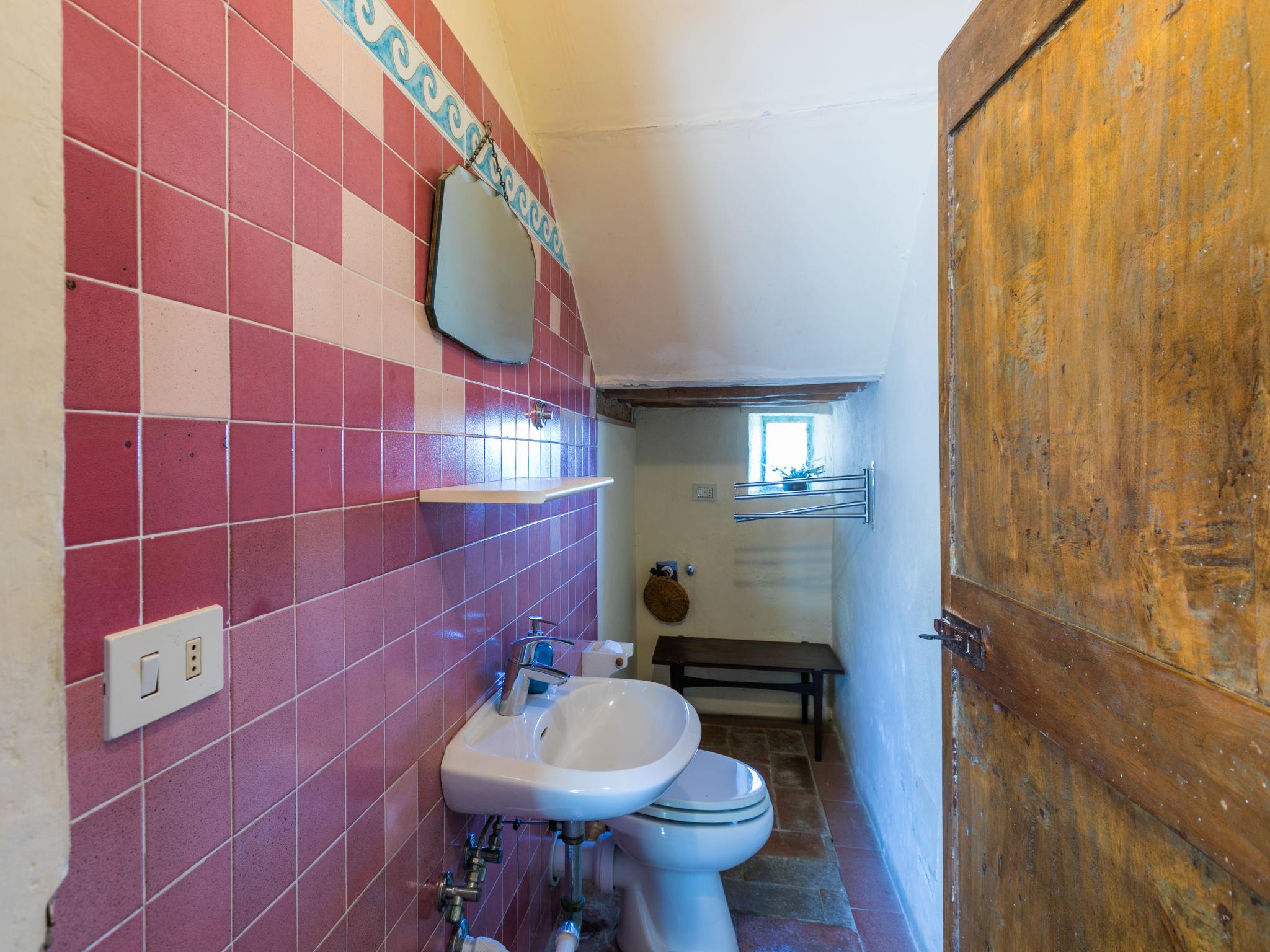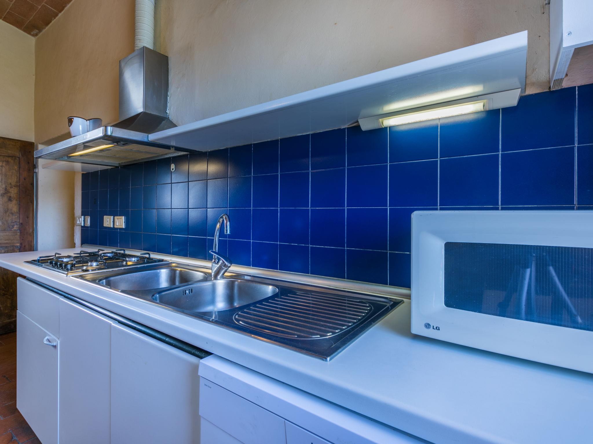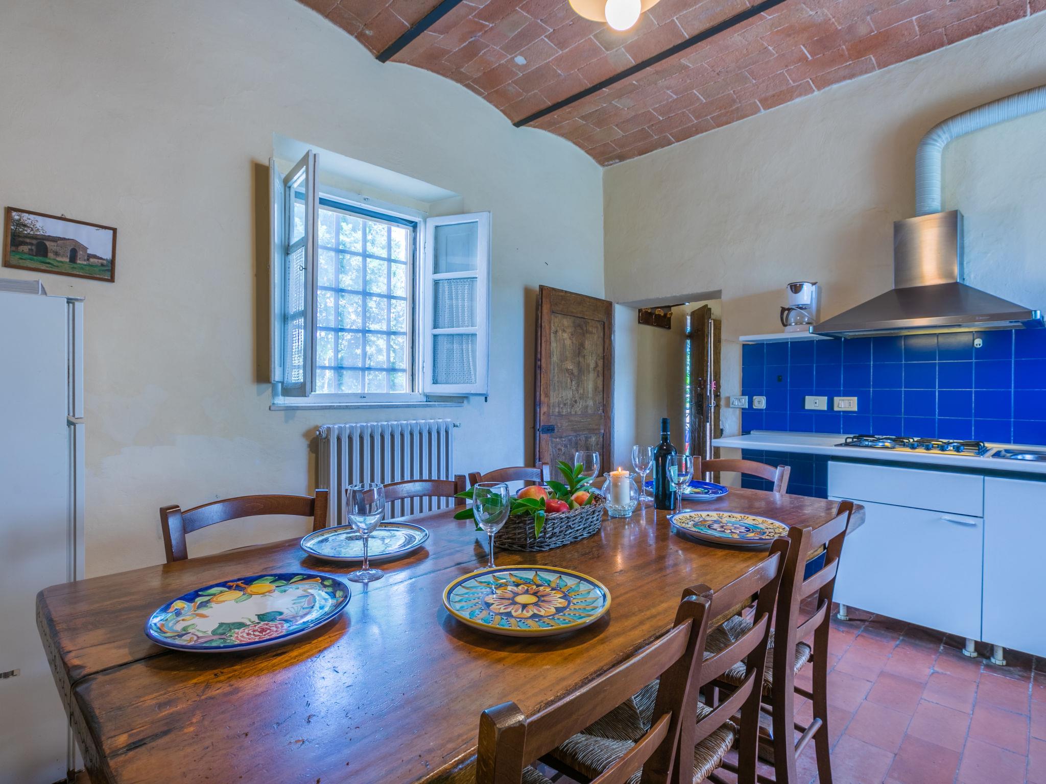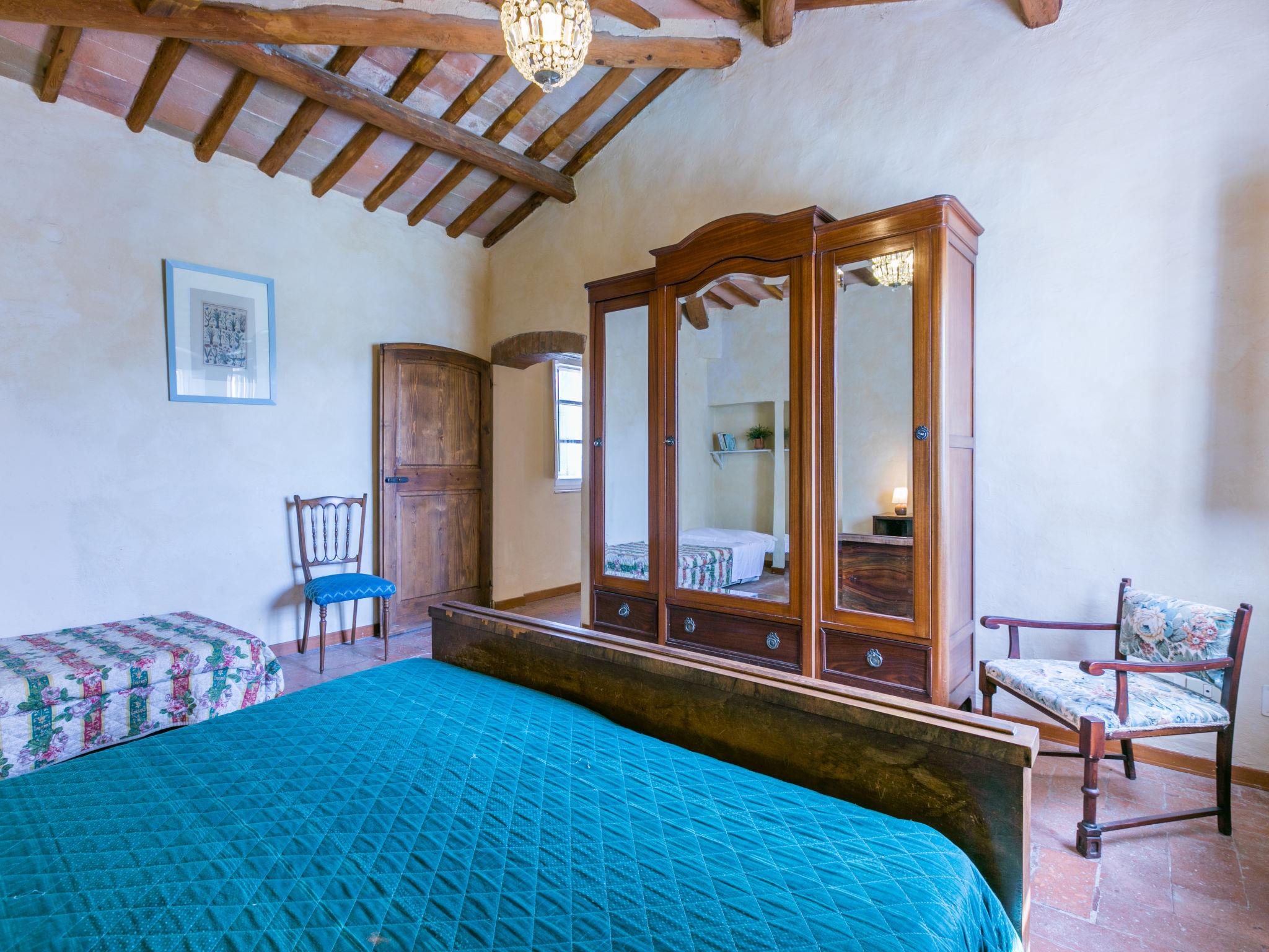 The farm surrounded by olive groves and vineyards of Chianti. Each of 12 apartments are located in the main house and a former barn has its own outside area with a table on the terraces surrounding with the main building. The location is very central and ideal for trips to discover the natural and cultural beauties of the region large working farm "La Moraia", renovated. 14 km from the centre of Castellina in Chianti, 18 km from the centre of San Gimignano, 50 km from the centre of Firenze, in an elevated position, in the countryside. For shared use: garden, swimming pool (7 x 14 m, depth 120 - 160 cm, seasonal availability: 09.May. - 26.Sep. pool opening hours: 09:00-19:00). Patio, barbecue. In the house: central heating system, washing machine (for shared use, extra), heating to be paid on the spot, heating available only from 01.Nov. - 04.Apr.. Motor access to the house (1 km via unmade road). Parking. Supermarket 5 km, restaurant 5 km, bus stop 5 km, railway station "Poggibonsi" 5 km, thermal baths "Rapolano Terme" 55 km. Tennis 5 km. Nearby attractions: Monteriggioni 14 km, Barberino Val d'Elsa 16 km, San Donato 21 km, Radda in Chianti e Badia a Passignano 25 km, Siena 30 km, Volterra 38 km. Please note: the photograph shows a typical example. Additional accommodations can be booked. On request, at the moment of booking, there are opportunities to rent bicycles.