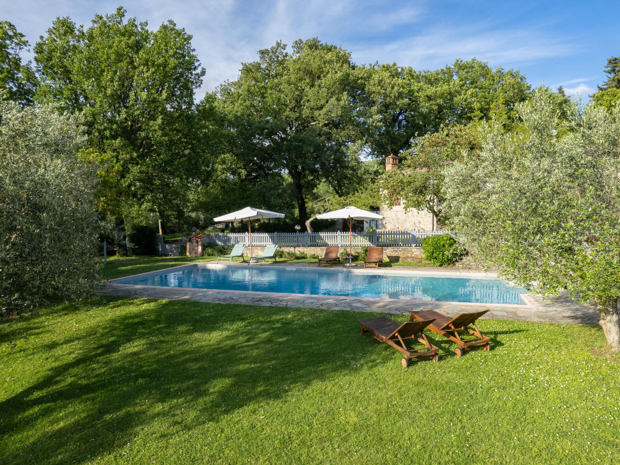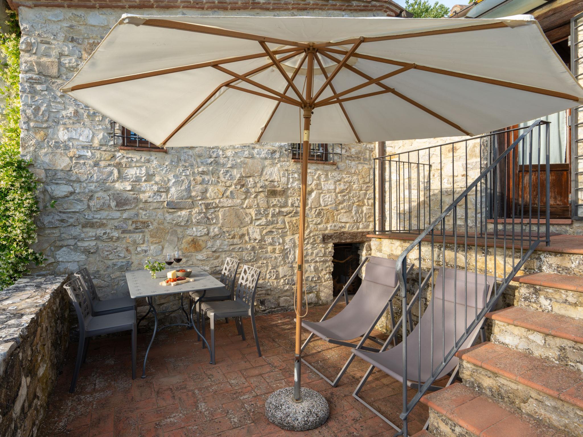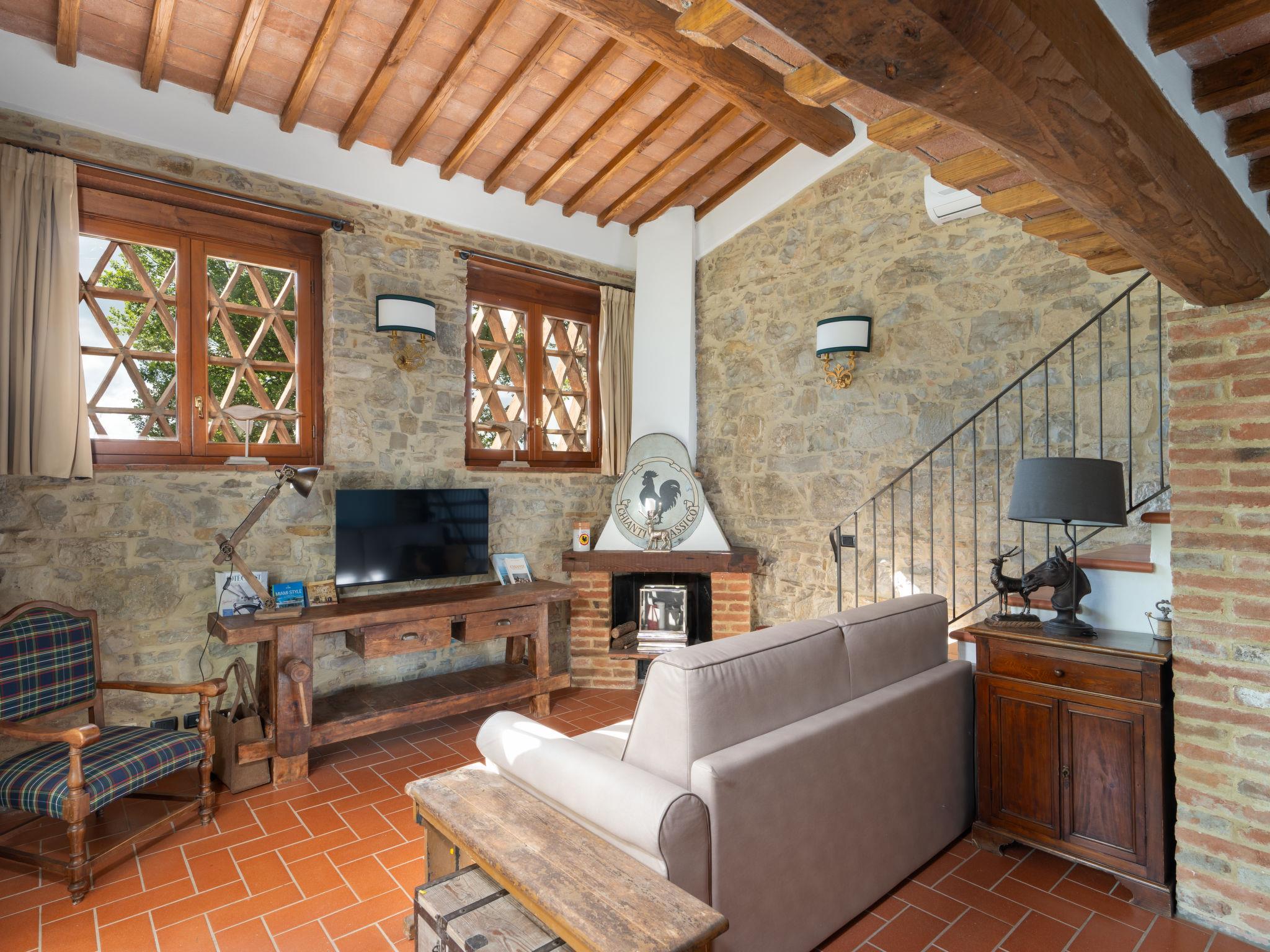 Pretty stone farmhouse. The property, made up of two connected units, is immersed in the countryside in the heart of Chianti, an ideal area for visiting Tuscany. Country house "Olimpia", 400 m a.s.l., renovated in 2023. 2 km from the centre of Castellina in Chianti, 19 km from the centre of Monteriggioni, 50 km from the centre of Firenze, in a sunny position on a slope, in the countryside. For shared use: garden 1'000 m2 (not fenced), swimming pool fenced (14 x 6 m, depth 120 - 220 cm, seasonal availability: 01.May. - 30.Sep.). Outdoor shower, garden furniture. Private: garden furniture, barbecue. In the house: central heating system, heating to be paid on the spot, heating available only from 01.Nov. - 04.Apr.. Motor access to the house (200 m via unmade road). Parking on the premises. Shop 2 km, supermarket 2 km, restaurant 2 km, bus stop 500 m, sandy beach "Castiglione della Pescaia" 120 km, thermal baths "Rapolano Terme" 56 km. Nearby attractions: Radda in Chianti 8 km, Volpaia 15 km, Greve in Chianti 18 km, Gaiole in Chianti 19 km, San Gimignano, Siena 30 km. The fenced pool is shared with another 5-seater house.