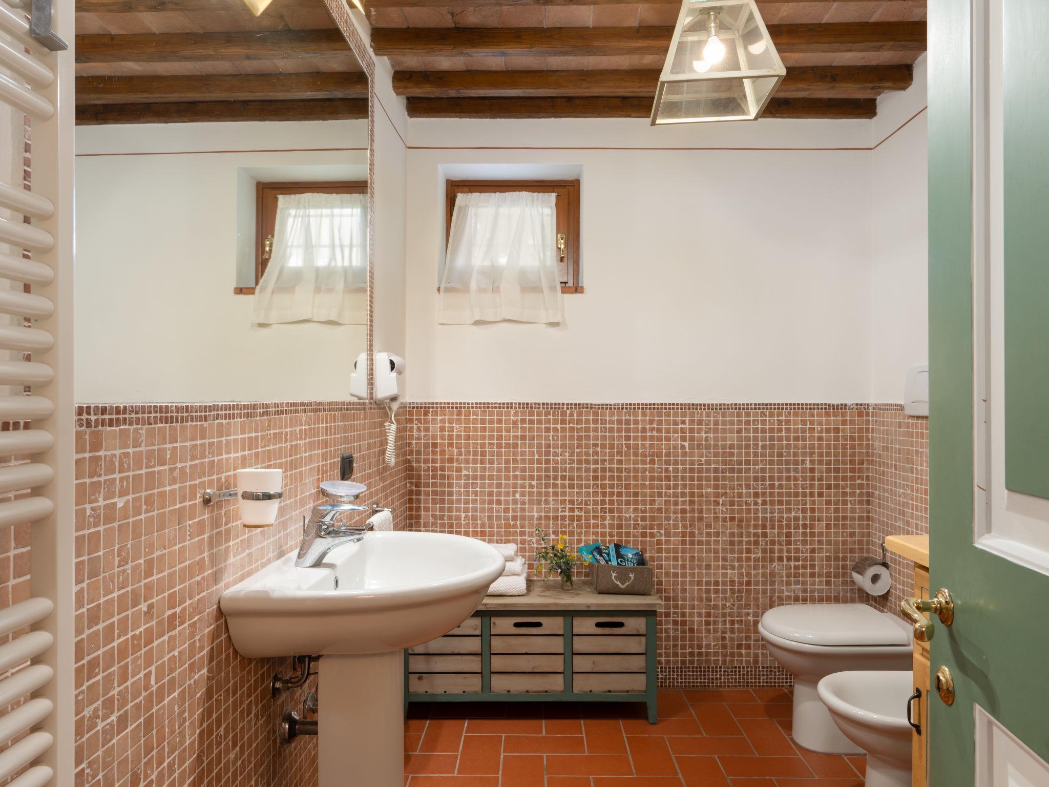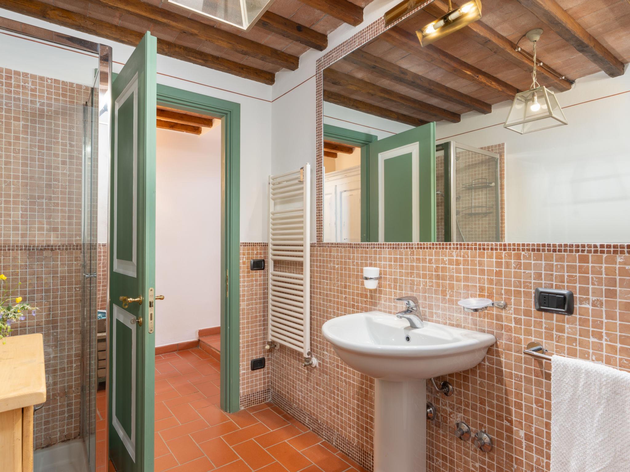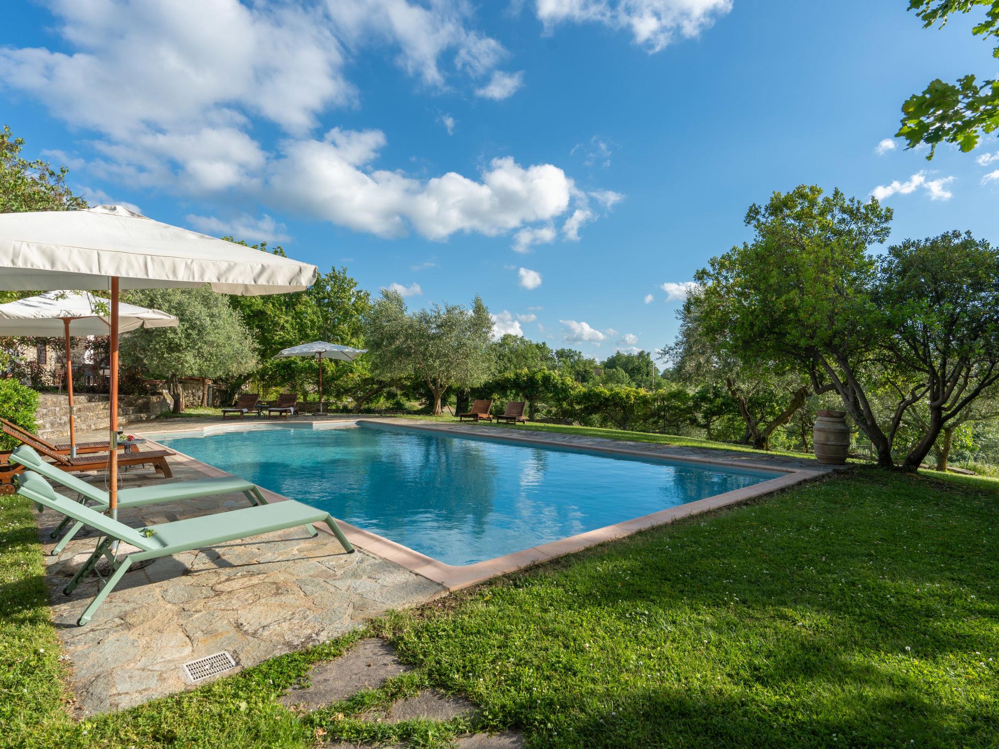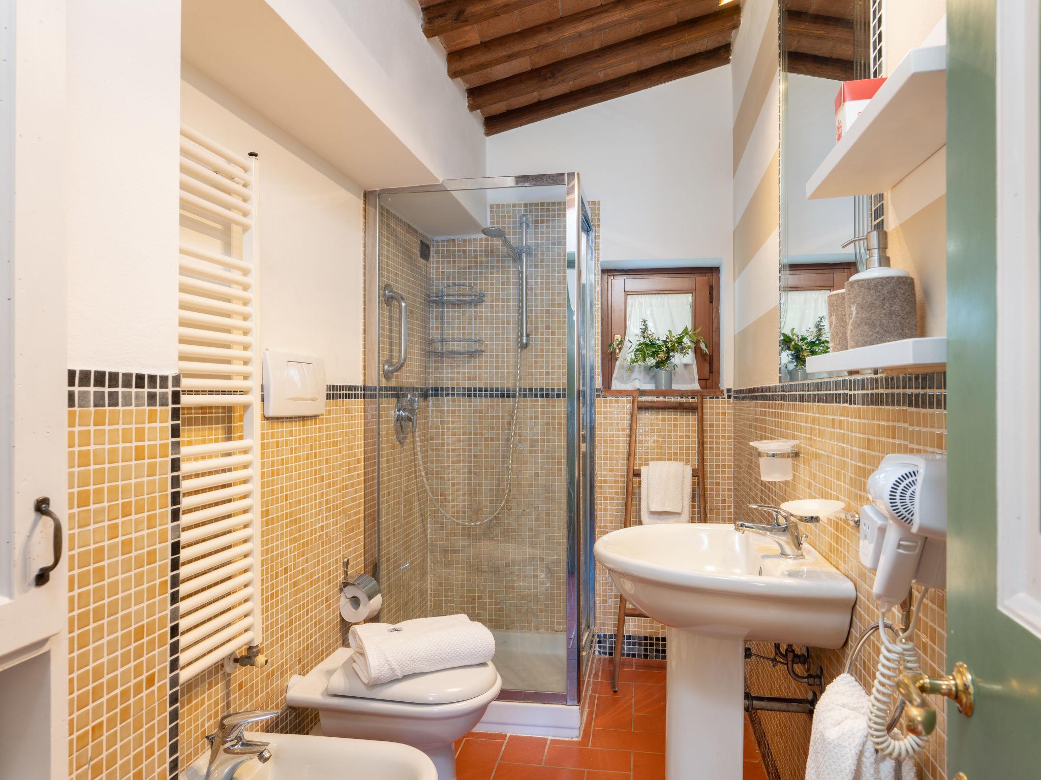 Pretty stone farmhouse. The property, made up of two connected units, is immersed in the countryside in the heart of Chianti, an ideal area for visiting Tuscany. Country house "Olimpia", 400 m a.s.l., renovated in 2023. 2 km from the centre of Castellina in Chianti, 19 km from the centre of Monteriggioni, 50 km from the centre of Firenze, in a sunny position on a slope, in the countryside. For shared use: garden 1'000 m2 (not fenced), swimming pool fenced (14 x 6 m, depth 120 - 220 cm, seasonal availability: 01.May. - 30.Sep.). Outdoor shower, garden furniture. Private: garden furniture, barbecue. In the house: central heating system, heating to be paid on the spot, heating available only from 01.Nov. - 04.Apr.. Motor access to the house (200 m via unmade road). Parking on the premises. Shop 2 km, supermarket 2 km, restaurant 2 km, bus stop 500 m, sandy beach "Castiglione della Pescaia" 120 km, thermal baths "Rapolano Terme" 56 km. Nearby attractions: Radda in Chianti 8 km, Volpaia 15 km, Greve in Chianti 18 km, Gaiole in Chianti 19 km, San Gimignano, Siena 30 km. The fenced pool is shared with another 5-seater house.