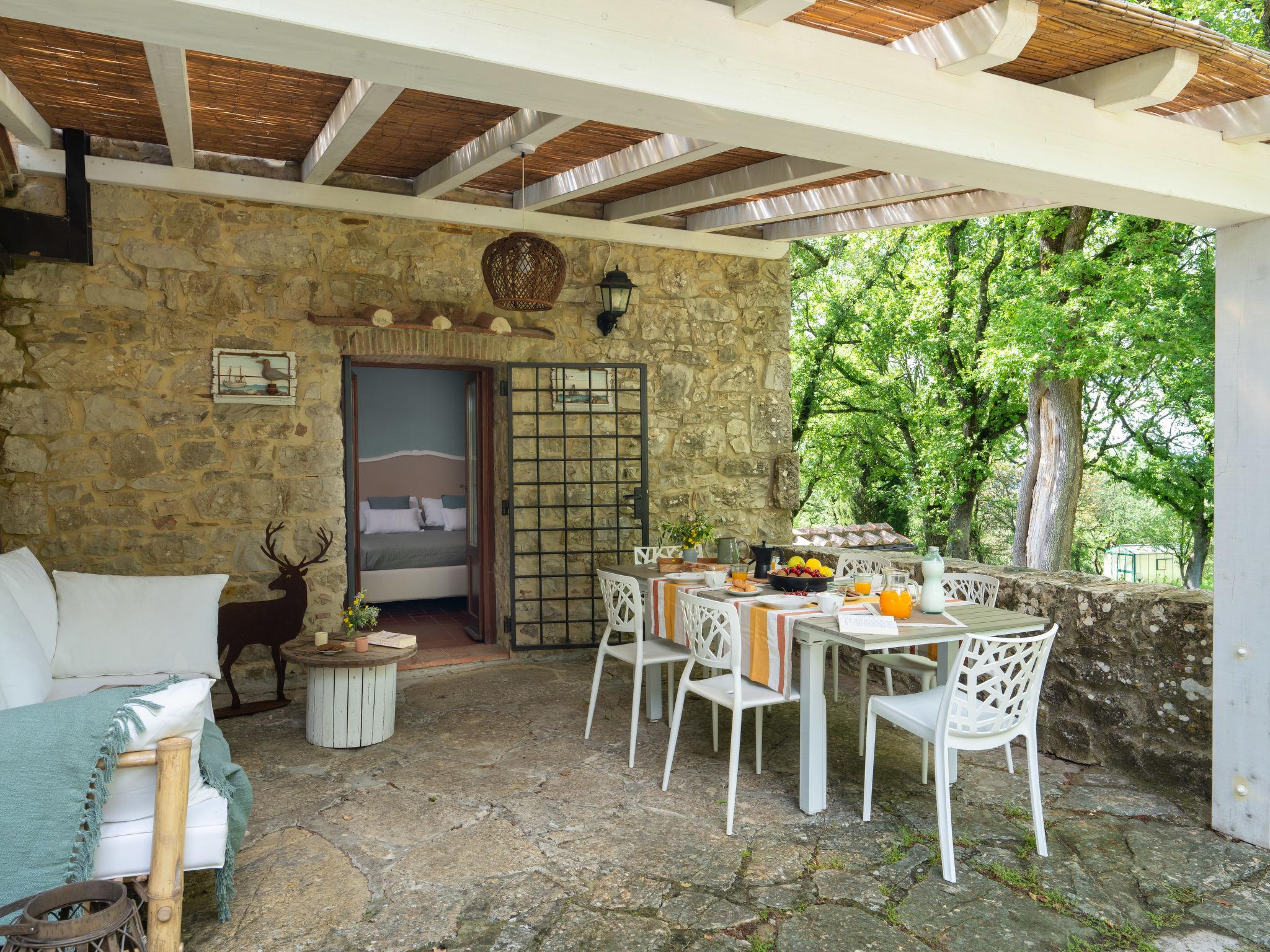 4-room house 120 m2 on 2 levels, on the ground floor. Renovated in 2023, comfortable and cosy furnishings: living/dining room with open-hearth fireplace, satellite TV and air conditioning. Exit to the garden. Open gallery with 1 double bed and air conditioning. Kitchenette (4 hot plates, oven, dishwasher, freezer). Shower/bidet/WC. Upper floor: living/dining room with 1 double sofabed, open-hearth fireplace and satellite TV. 1 double bedroom with air conditioning. Exit to the garden. Kitchenette (4 hot plates, oven, dishwasher, toaster, kettle, microwave, freezer). Terrace furniture, barbecue. Panoramic view of the countryside. Facilities: washing machine, iron, children's high chair, baby cot for up to 2 year olds, hair dryer. Internet (WiFi, free). IT052005C2P4EUFYD7