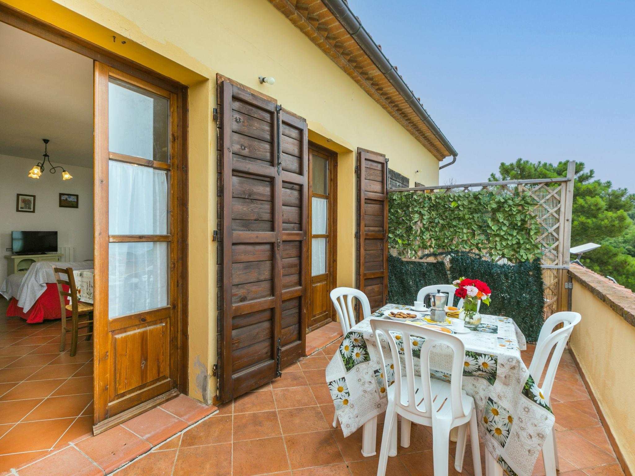 Cottage "Bellavista", 3 storeys, semi-detached, surrounded by meadows and fields. 4 apartments in the property. On the outskirts, 1.2 km from the centre of Castellina Marittima, in a secluded, quiet, elevated position, 10 m from the edge of the forest, 17 km from the sea, 17 km from the beach. For shared use: property, swimming pool (above ground) round (5 m diameter, depth 125 - 125 cm, seasonal availability: 01.Jun. - 30.Sep.). Pool maintenance by the owner/gardener. In the house: washing machine, tumble dryer (for shared use). Motor access (100 m via unmade road). Parking on the premises. Shop 1.2 km, grocery 1.2 km, restaurant 700 m, bus stop 100 m, sandy beach "Vada" 17 km, thermal baths "Casciana Terme" 30 km. Nearby attractions: Pisa 50 km, Lucca 70 km, Firenze 120 km.