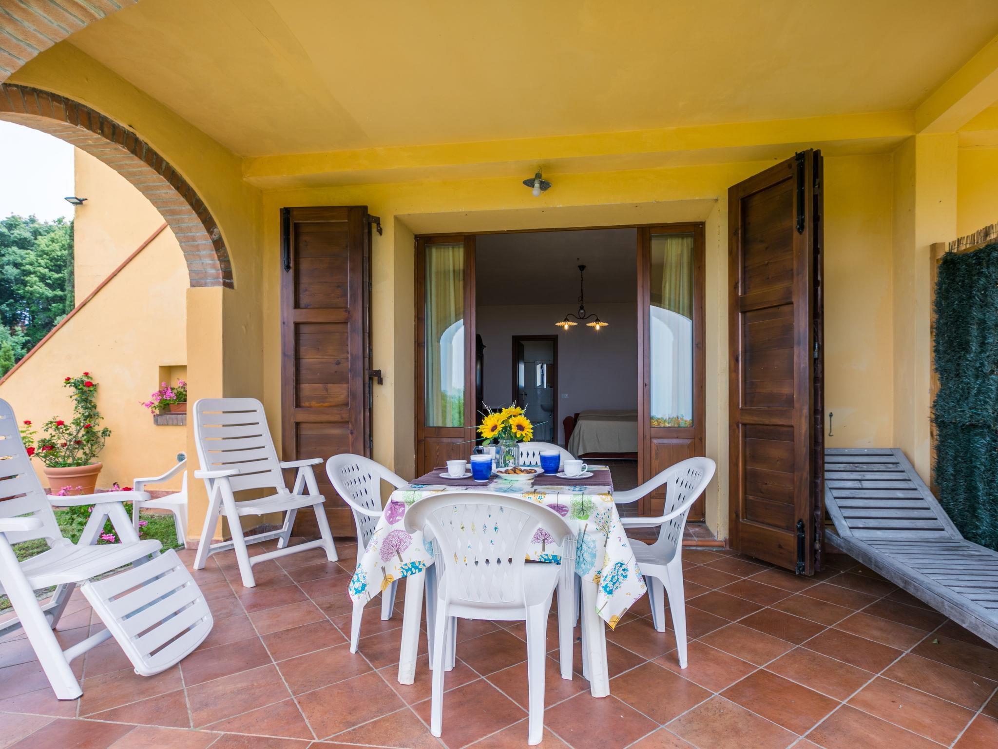 Cottage "Bellavista", 3 storeys, semi-detached, surrounded by meadows and fields. 4 apartments in the property. On the outskirts, 1.2 km from the centre of Castellina Marittima, in a secluded, quiet, elevated position, 10 m from the edge of the forest, 17 km from the sea, 17 km from the beach. For shared use: property, swimming pool (above ground) round (5 m diameter, depth 125 - 125 cm, seasonal availability: 01.Jun. - 30.Sep.). Pool maintenance by the owner/gardener. In the house: washing machine, tumble dryer (for shared use). Motor access (100 m via unmade road). Parking on the premises. Shop 1.2 km, grocery 1.2 km, restaurant 700 m, bus stop 100 m, sandy beach "Vada" 17 km, thermal baths "Casciana Terme" 30 km. Nearby attractions: Pisa 50 km, Lucca 70 km, Firenze 120 km.