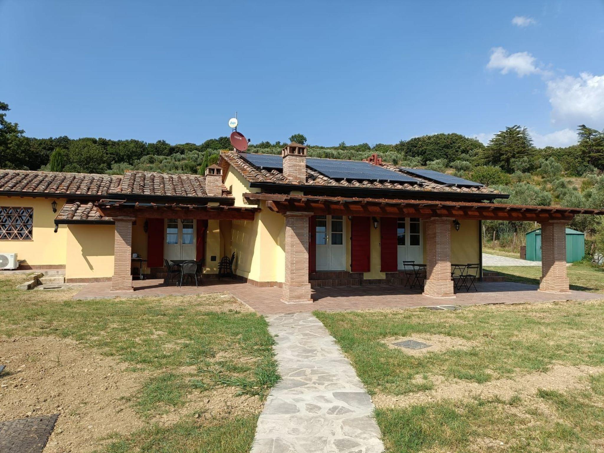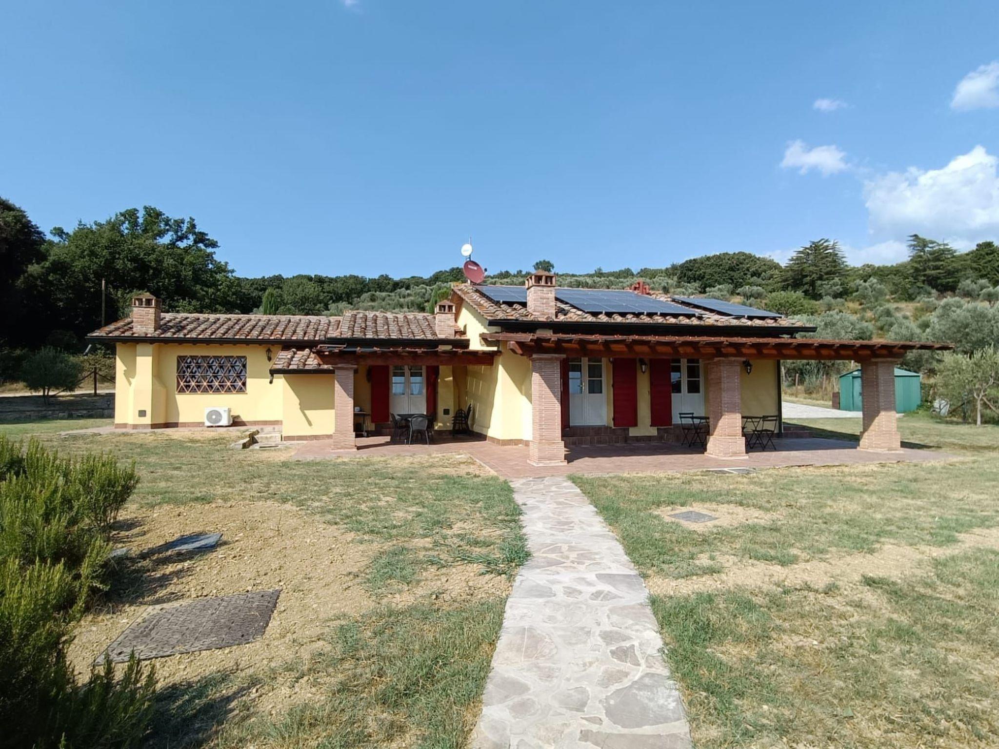 in all rooms and a photovoltaic system. It is ideal for those who want a relaxing holiday in the heart of Tuscany. The house is only 1600 m from the village, inside a private park of about 1,000 sqm with olive and cypress trees, completely fenced and with a splendid panoramic view of the green hills of the Val di Cornia, in a quiet but not isolated position. The beaches of Marina di Donoratico are only 22 km away.