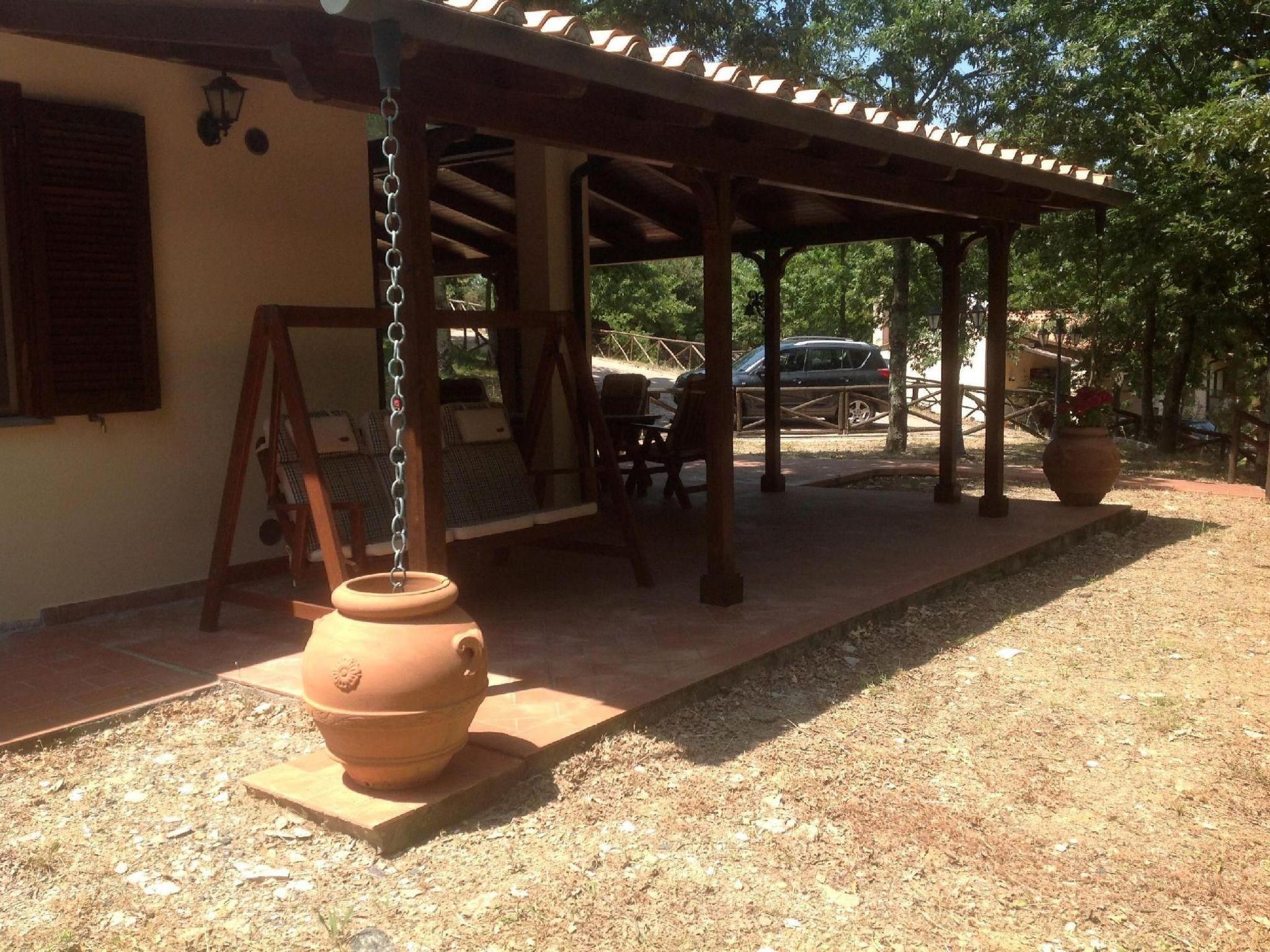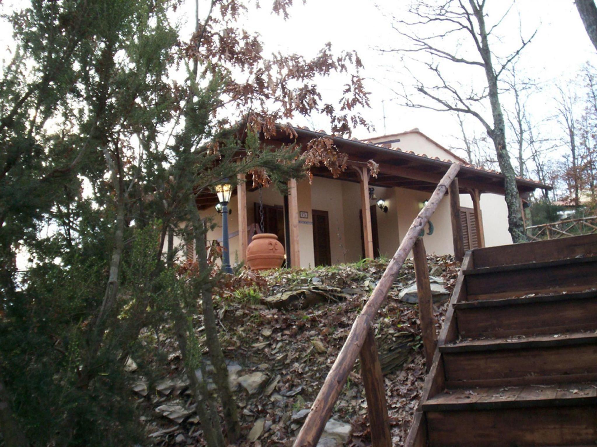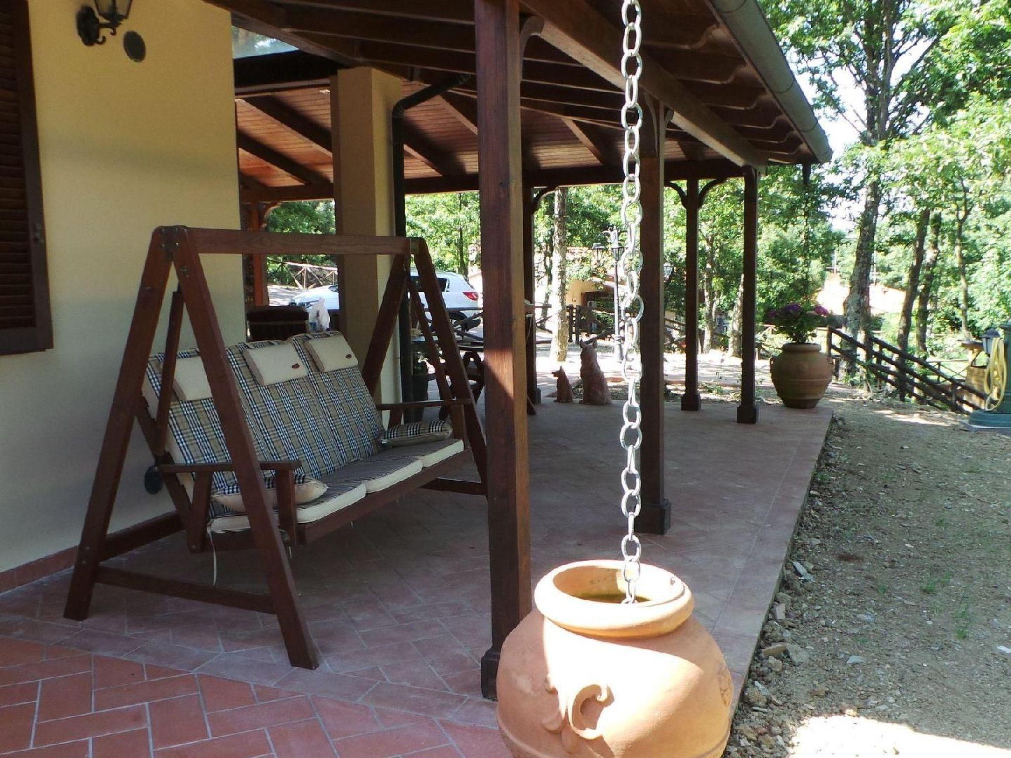 The interior of the villa exemplifies Tuscan elegance, with ornate walls and curtains complementing carefully selected furnishings. Guests' comfort is ensured by a living-dining room with a quality double sofa bed, a well-equipped kitchen complete with modern appliances, and a cosy bedroom layout that includes one with a double bed and one with a bunk bed. The practical and comfortable bathroom has a washbasin, bidet, toilet and shower. Modern equipment such as satellite TV, DVD, WIFI, safe, washing machine and central heating ensure a pleasant and carefree stay.