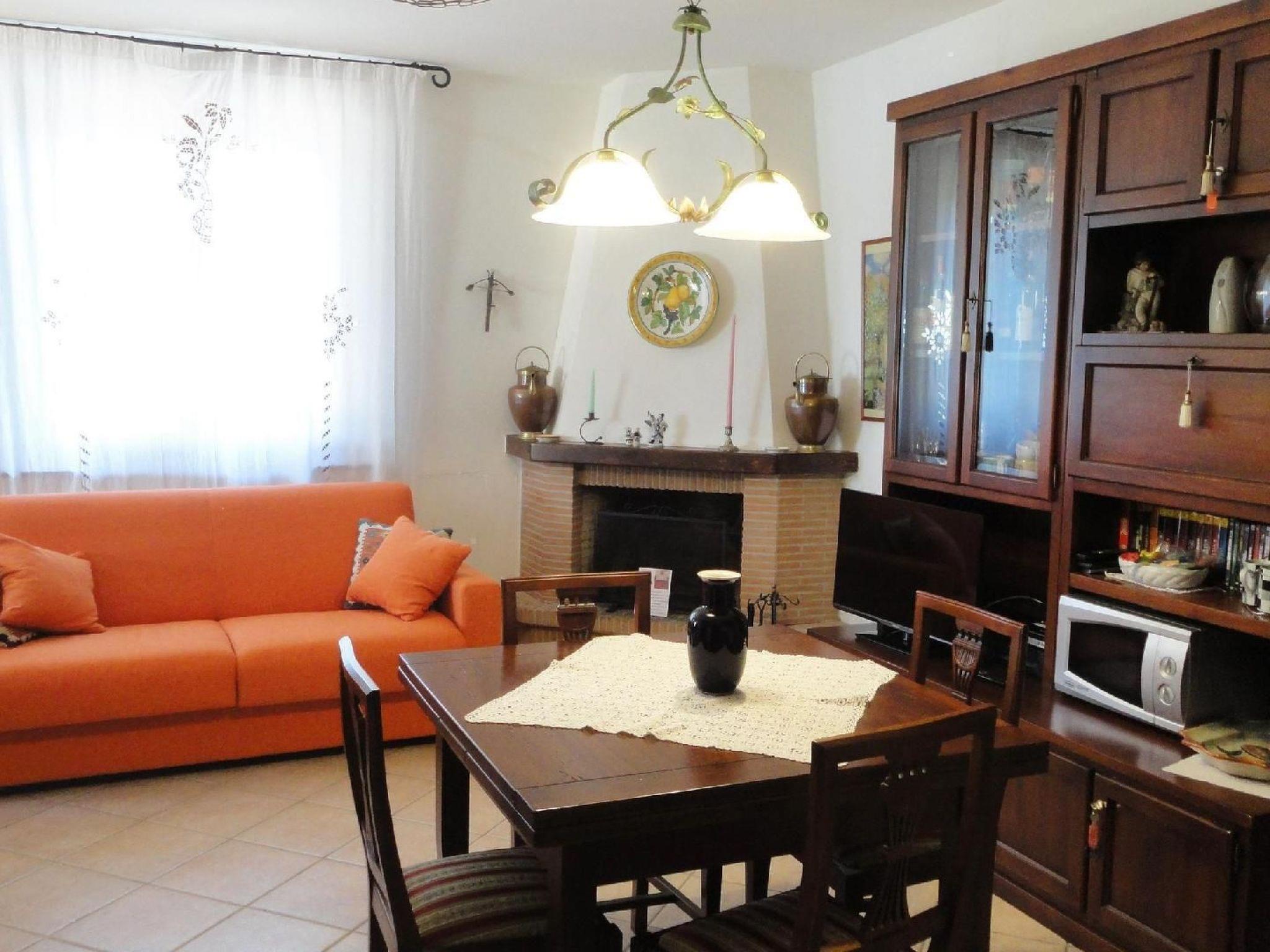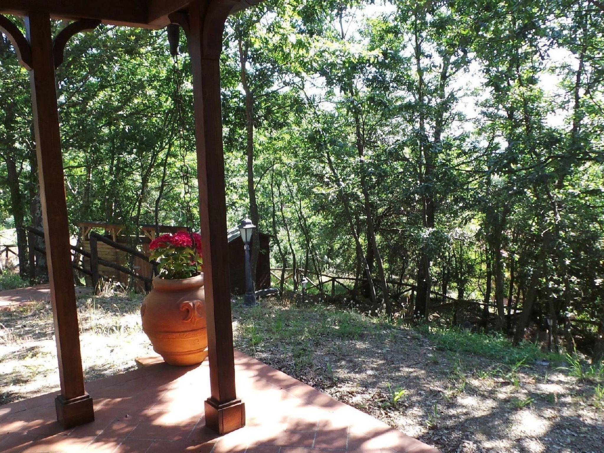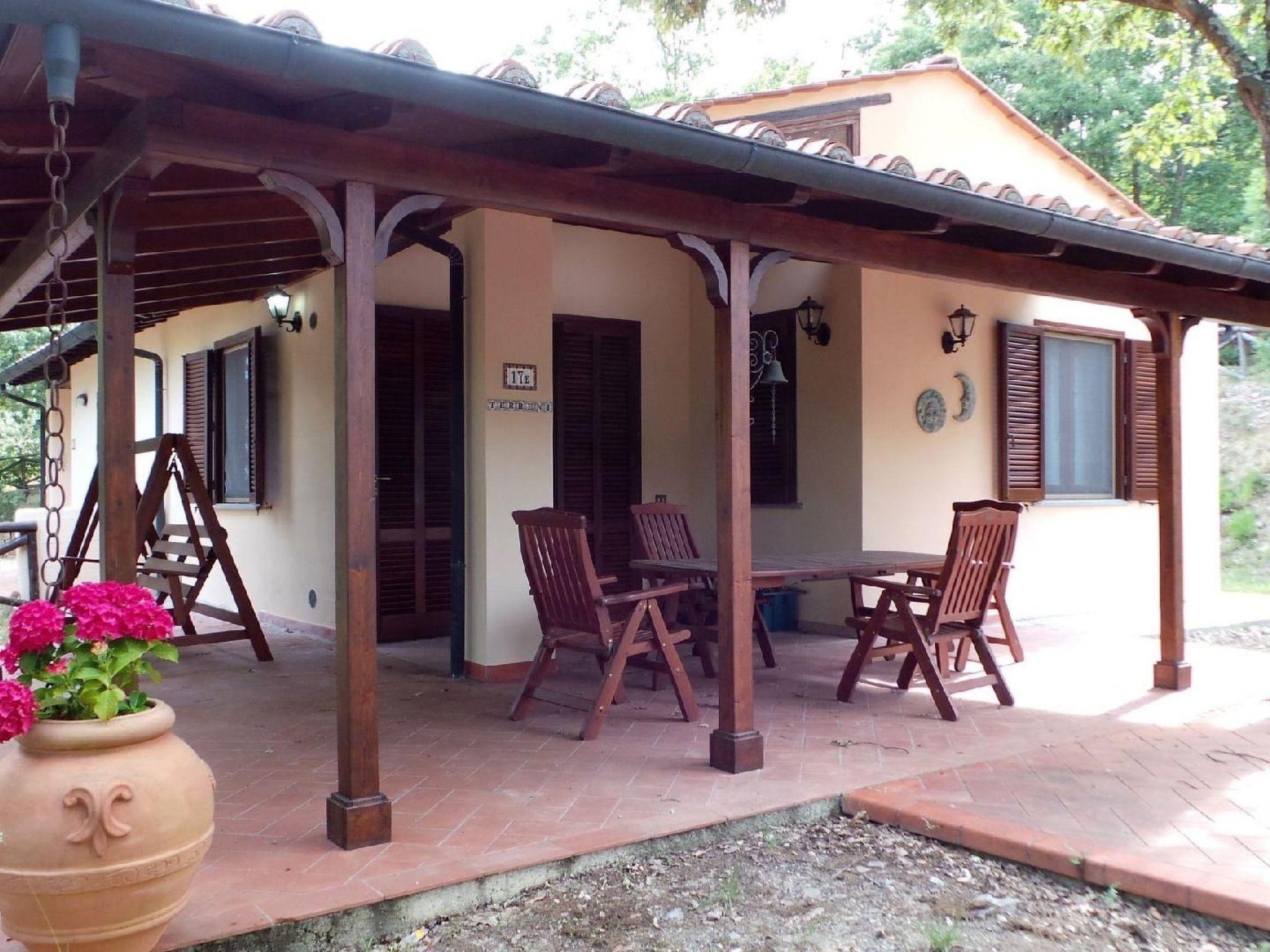 The interior of the villa exemplifies Tuscan elegance, with ornate walls and curtains complementing carefully selected furnishings. Guests' comfort is ensured by a living-dining room with a quality double sofa bed, a well-equipped kitchen complete with modern appliances, and a cosy bedroom layout that includes one with a double bed and one with a bunk bed. The practical and comfortable bathroom has a washbasin, bidet, toilet and shower. Modern equipment such as satellite TV, DVD, WIFI, safe, washing machine and central heating ensure a pleasant and carefree stay.