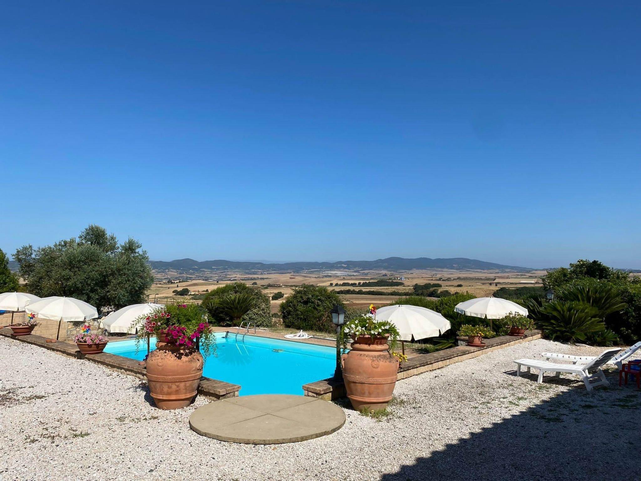 The villa can accommodate up to 24 people and, thanks to its dominant position, enjoys a breathtaking view over the countryside to the sea, 12 km away.