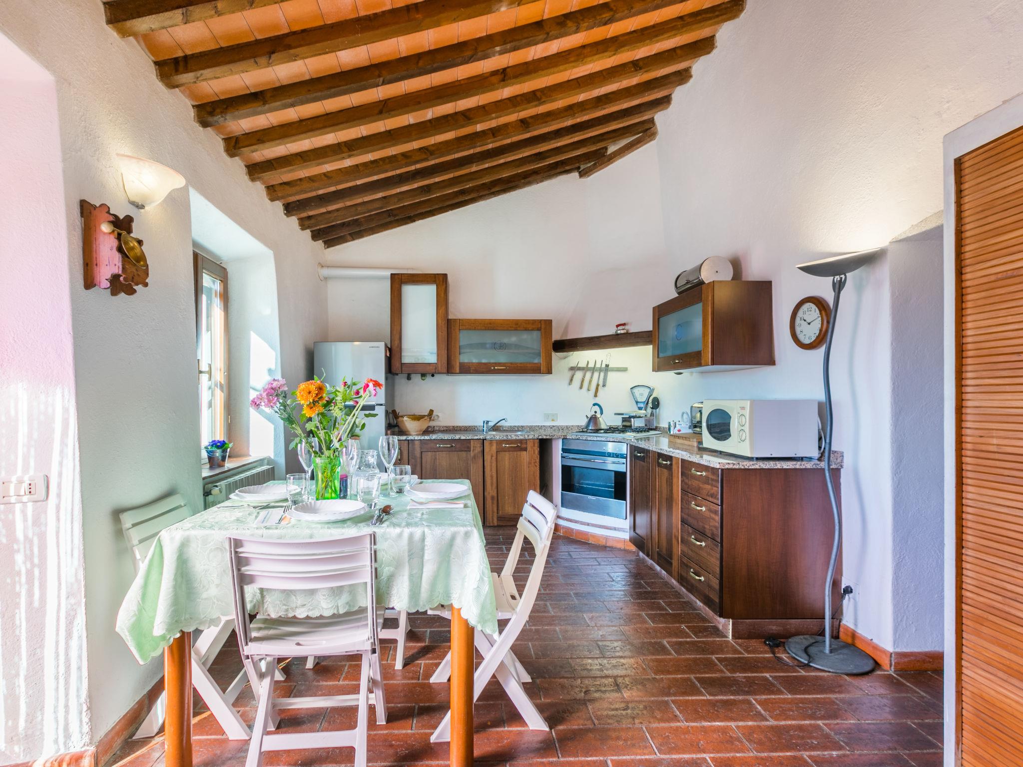 Beautiful "rustico" cottage "Bruna", 400 m a.s.l.. On the outskirts, 400 m from the centre of Castellina Marittima, in a quiet position on a slope, 50 m from the edge of the forest, 15 km from the sea, 15 km from the beach. Private: property, terraced garden (fenced). Hot tub, pool maintenance by the owner/gardener. Linen change (suppl. charge extra). Towel change (suppl. charge extra). Parking at the house. Shop, grocery 400 m, café 300 m, bus stop "Castellina Lavatoi" 300 m, sandy beach "Vada" 15 km, thermal baths "Casciana Terme" 30 km. Marina 15 km, golf course (9 hole) 28 km. Nearby attractions: Bolgheri 30 km, Pisa 55 km, Firenze 100 km.