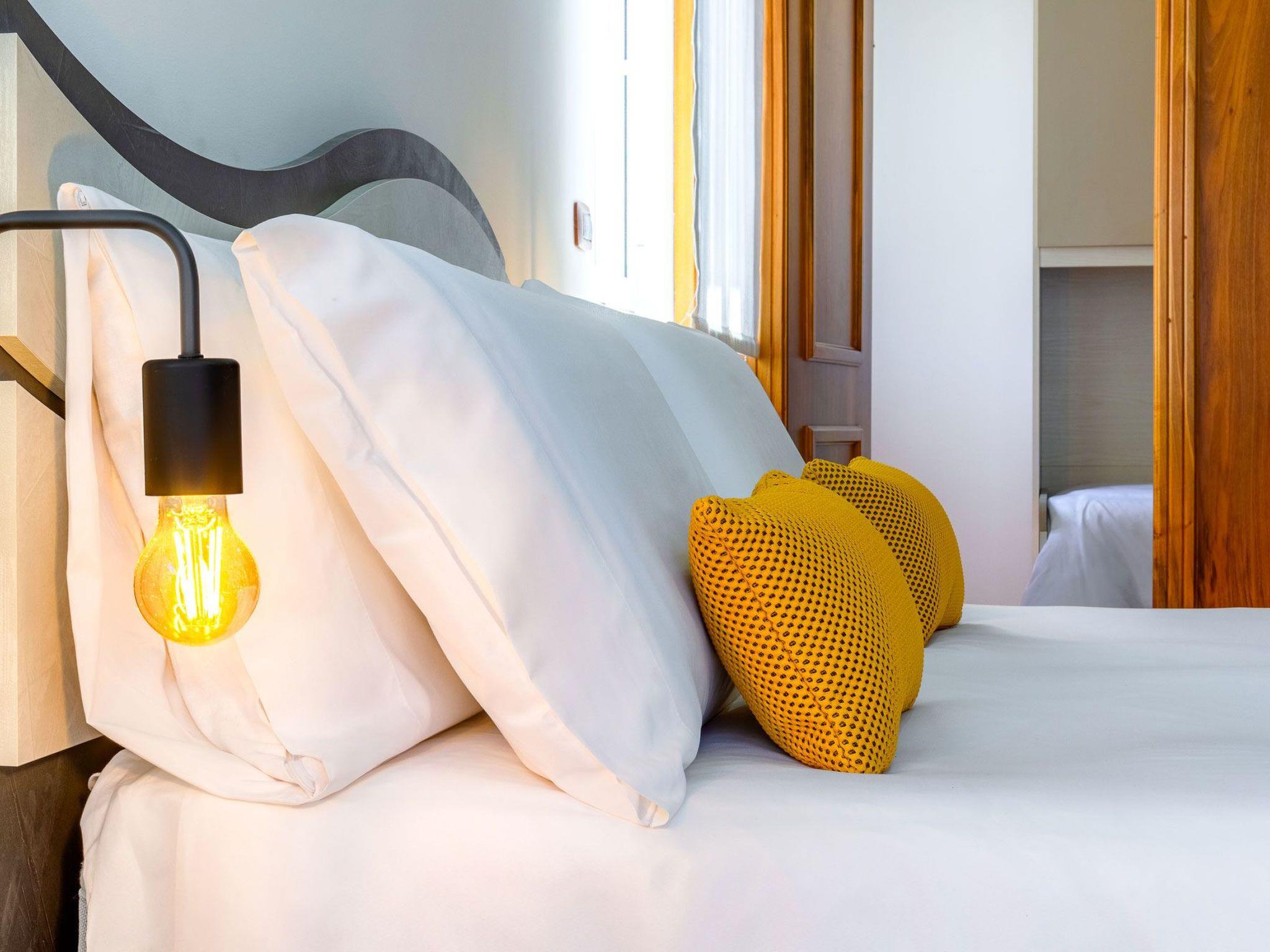 The rooms are modern and cosy, equipped with a flat-screen TV and a private bathroom with complimentary toiletries, hairdryer and bidet. For an extra touch of luxury, guests can enjoy a relaxing whirlpool bath for a pure wellness experience.