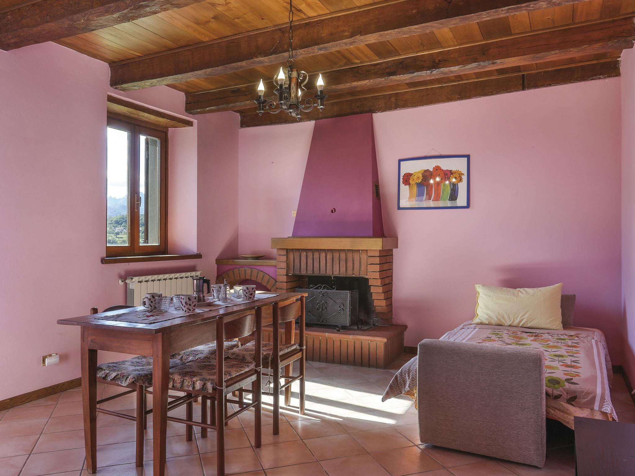 "Caminetto (CNG177)", 3-room apartment 64 m2 on 2 levels. Renovated in 2019, simple furnishings: living/sleeping room with 1 sofabed, open-hearth fireplace and dining table. Open kitchen (4 hot plates, oven, freezer) with dining nook. Bath/WC. Upper floor: 1 room with 1 french bed. 1 room with 1 x 2 bunk beds. Heating. Wooden floors. Beautiful panoramic view of the mountains and the valley. Facilities: Internet (WiFi, free). Please note: non-smokers only. Maximum 1 pet/ dog allowed. Smoke alarm, fire extinguisher. IT046035B5HAMYO3ZT