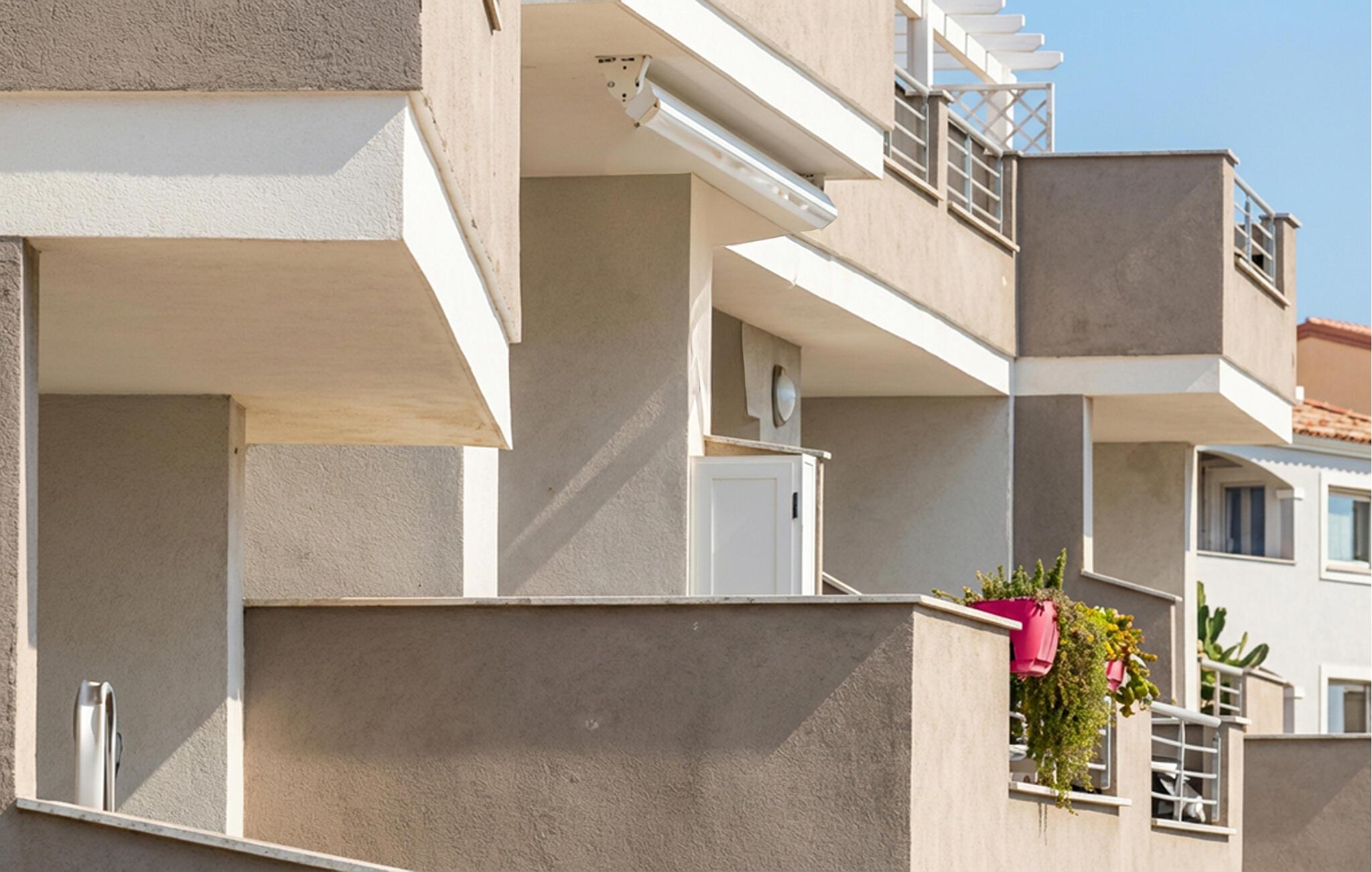 Kliv ut på balkongen och njut av den friska luften. Dra nytta av den gemensamma poolen, som inbjuder dig att svalka dig. Tillbringa lugna timmar vid vattnet och låt blicken vandra över takåsarna till havet.