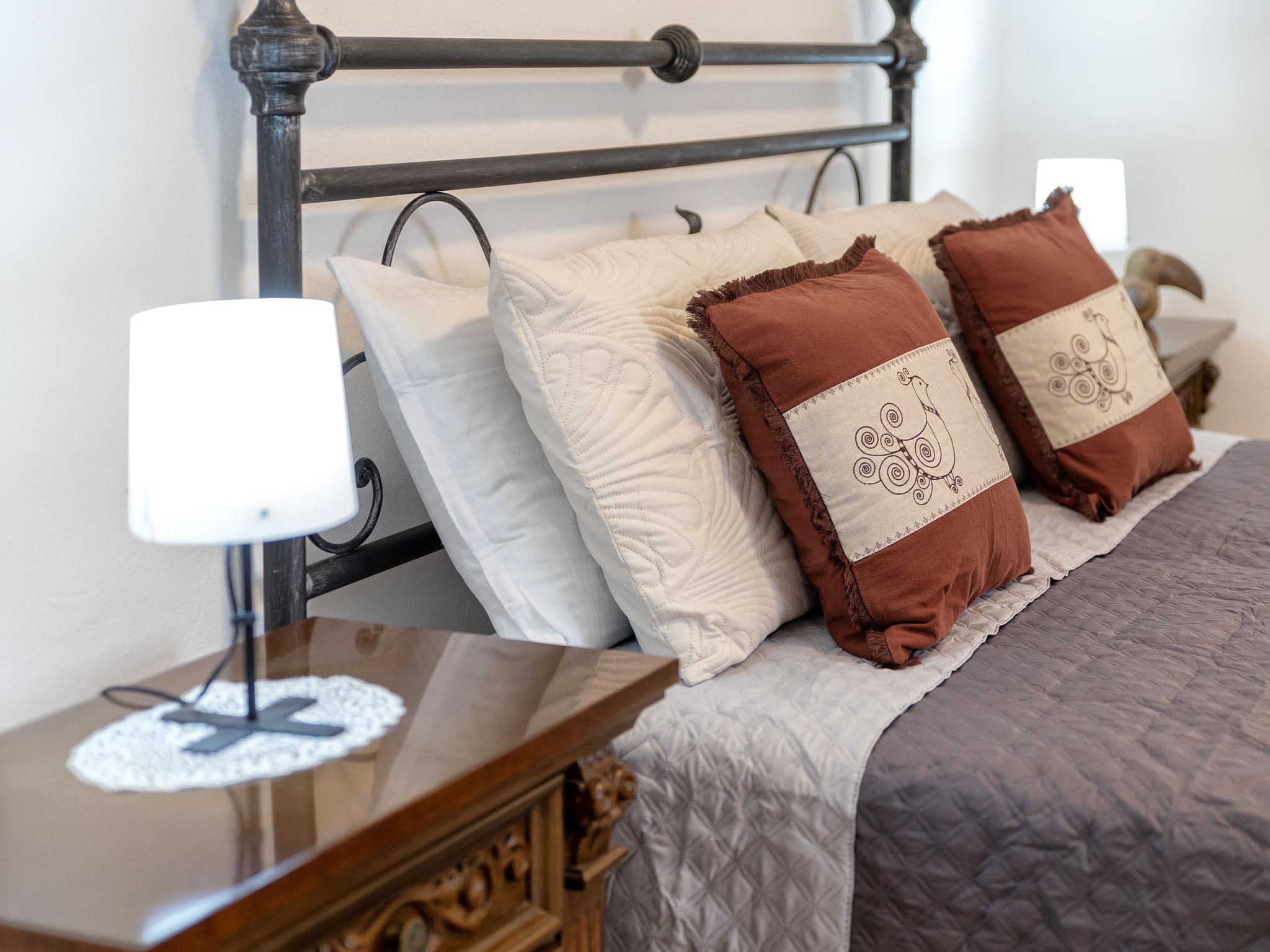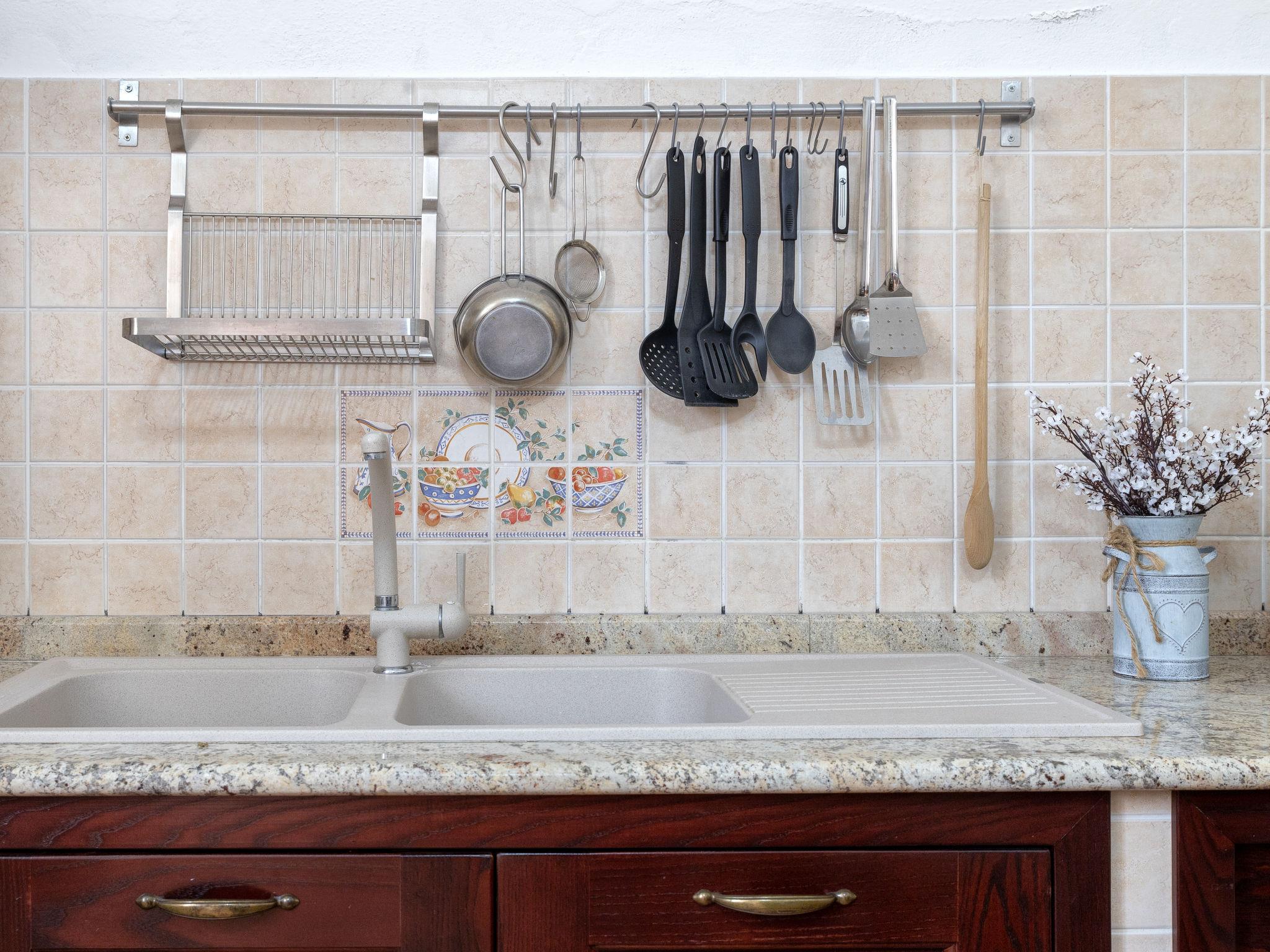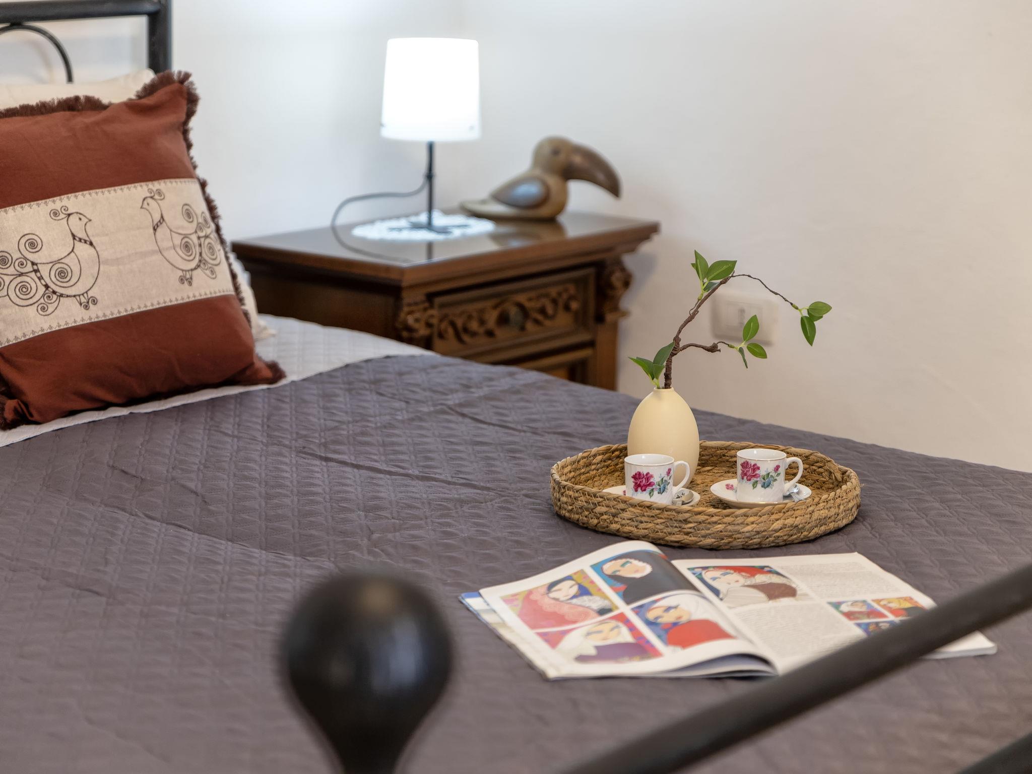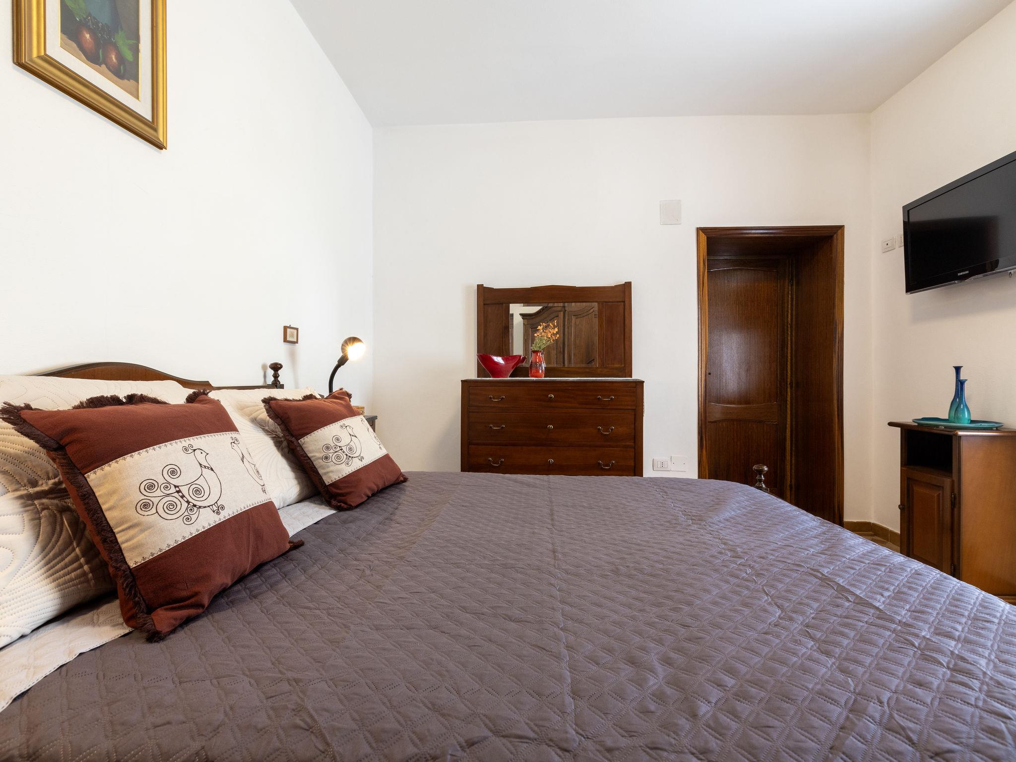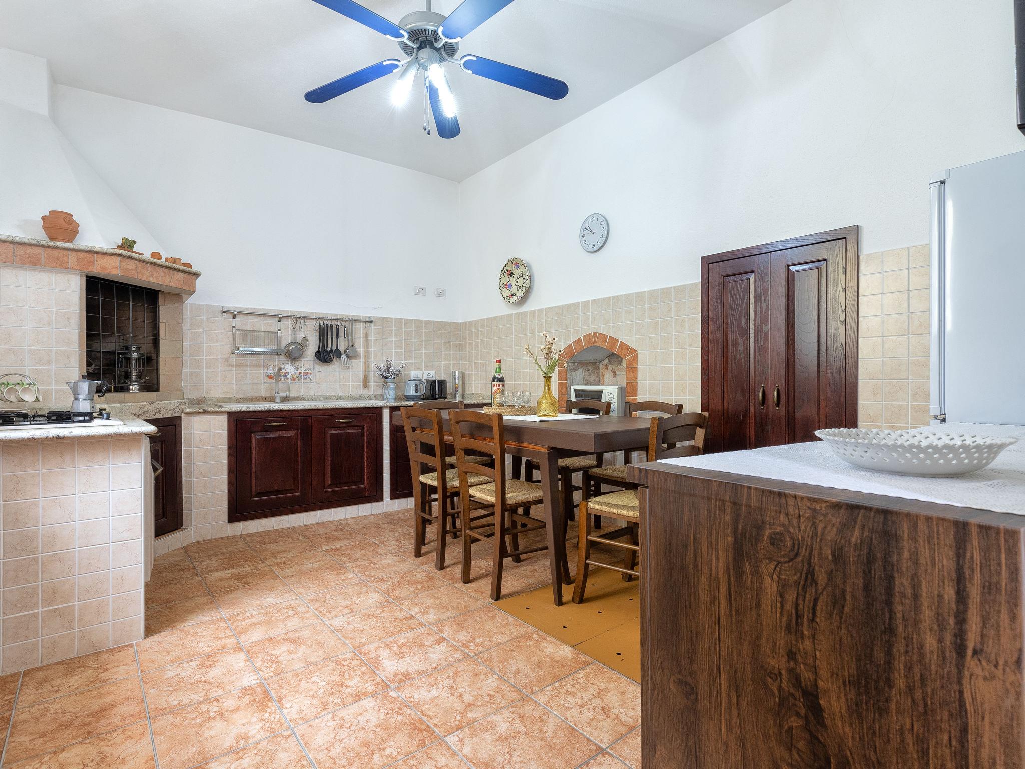 "Sos Candhaleris", 4-room house 140 m2 on 2 levels, on the ground floor. Antique and cosy furnishings: entrance hall. Large kitchen (4 gas rings, toaster, kettle, microwave) with open-hearth fireplace (only for decoration), TV, flat screen and fan. Shower/bidet/WC, double hand-basin. Boiler. Upper floor: 1 double bedroom with TV, flat screen and fan. 2 double bedrooms, each room with fan. Facilities: washing machine, iron, hair dryer. Suitable for families. IT090046C2000T5186