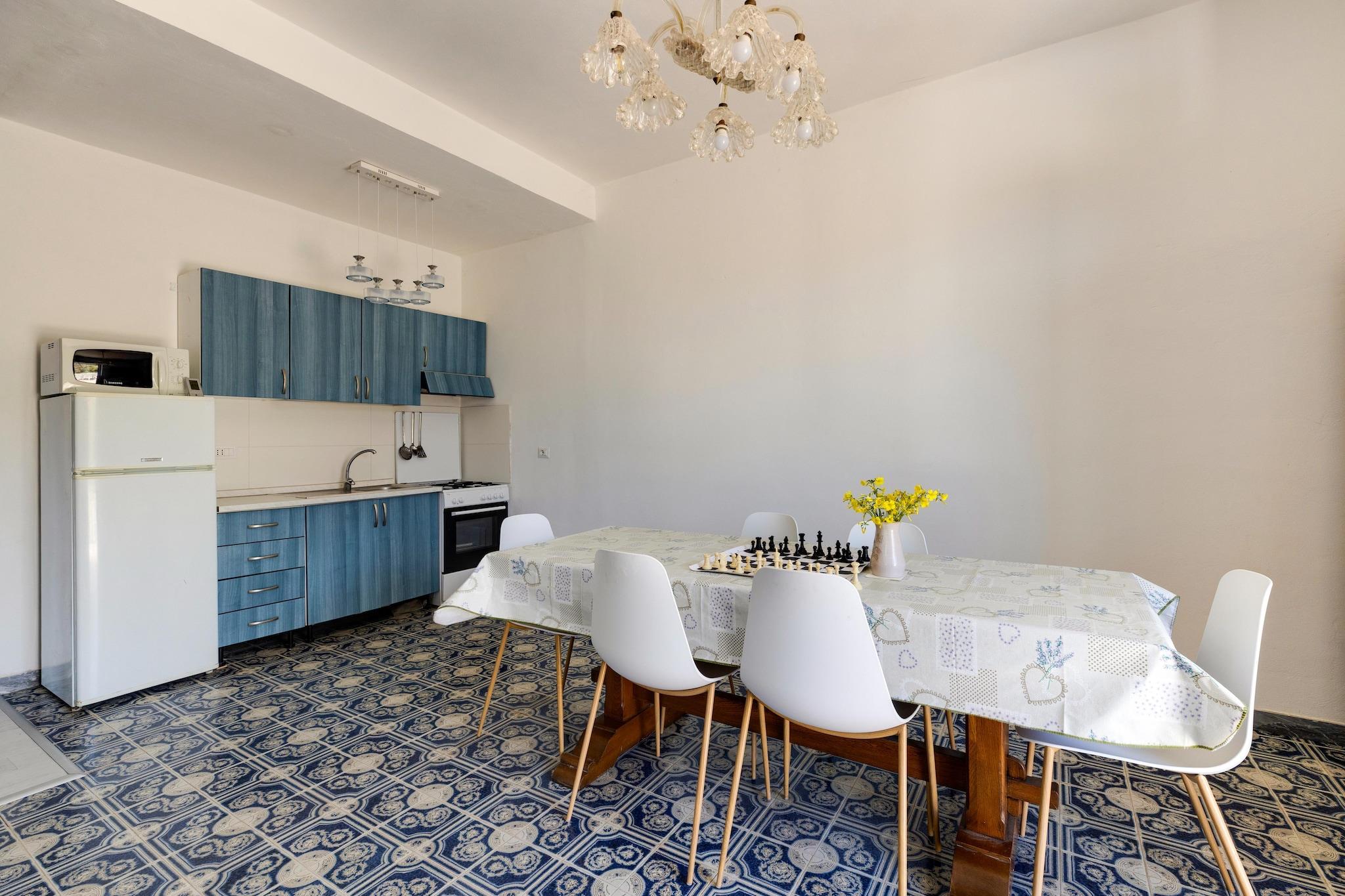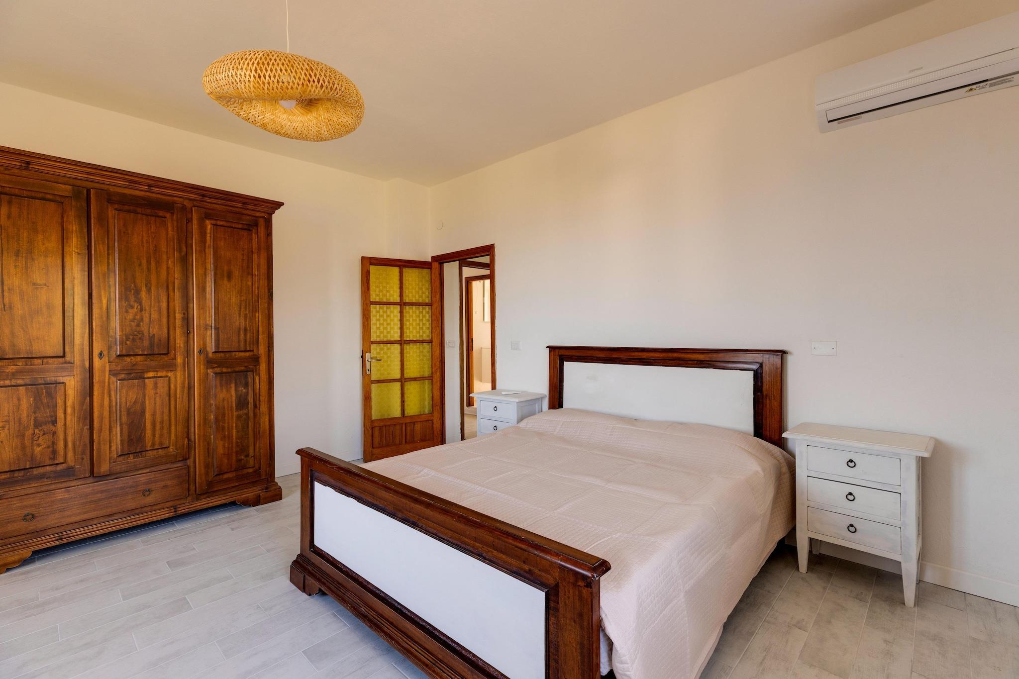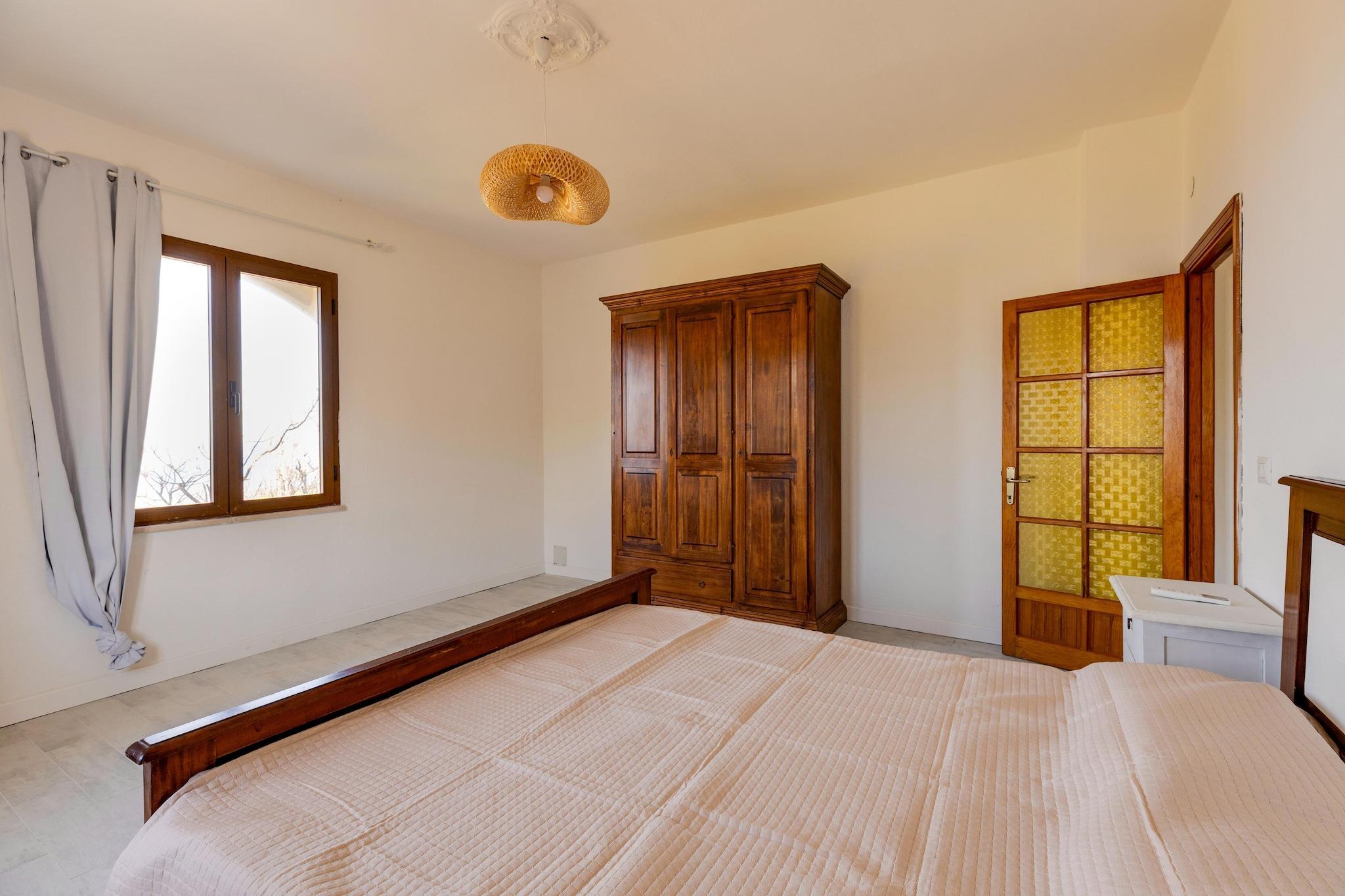 Välkommen till Lu Rommasinu, ett rymligt och helt fristående hus inbäddat i en frodig naturmiljö med en fantastisk havsutsikt. Fastigheten är fördelad på två våningar och erbjuder generösa och bekväma utrymmen, perfekt för grupper och familjer som söker en lugn semester på norra Sardinien. På bottenvåningen leder huvudentrén till ett sovrum med dubbelsäng, ett sovrum med enkelsäng, ett badrum, ett pentry i anslutning till ett ljust vardagsrum och en 15 kvadratmeter stor utomhusveranda, perfekt för avkoppling eller frukost utomhus. Första våningen har fyra sovrum med dubbelsäng och ett sovrum med enkelsäng, två funktionella badrum och ett bekvämt pentry med matplats. Huset är omgivet av en stor privat trädgård på cirka 1 000 kvadratmeter, som erbjuder inomhusparkering, utomhusplatser för att njuta av solen och möjlighet att organisera grillfester tack vare grillen. Bekvämligheterna kompletteras av luftkonditionering i hela första våningen, Wi-Fi, TV, kylskåp och tvättmaskin, för en praktisk och trevlig vistelse. Lu Rommasinu har ett strategiskt och särskilt lugnt läge, perfekt för dig som vill koppla av utan att offra bekvämligheten med att resa längs hela Sardiniens norra kust. Bara några minuter bort ligger Castelsardo, en av öns charmigaste byar, rik på historia, traditioner och förtrollande vyer. I närheten finns några av områdets vackraste stränder, såsom Ampurias, Lu Bagnu, La Ciaccia och Baia Ostina, samt möjligheter till vattensporter, utflykter, besök på arkeologiska platser eller helt enkelt att njuta av den naturliga omgivningen. Detta hem är en idealisk utgångspunkt för att uppleva det bästa av Sardinien i en lugn och välkomnande miljö, lämplig för dig som söker rymlighet, avskildhet och en bekväm bas för att upptäcka områdets underverk.