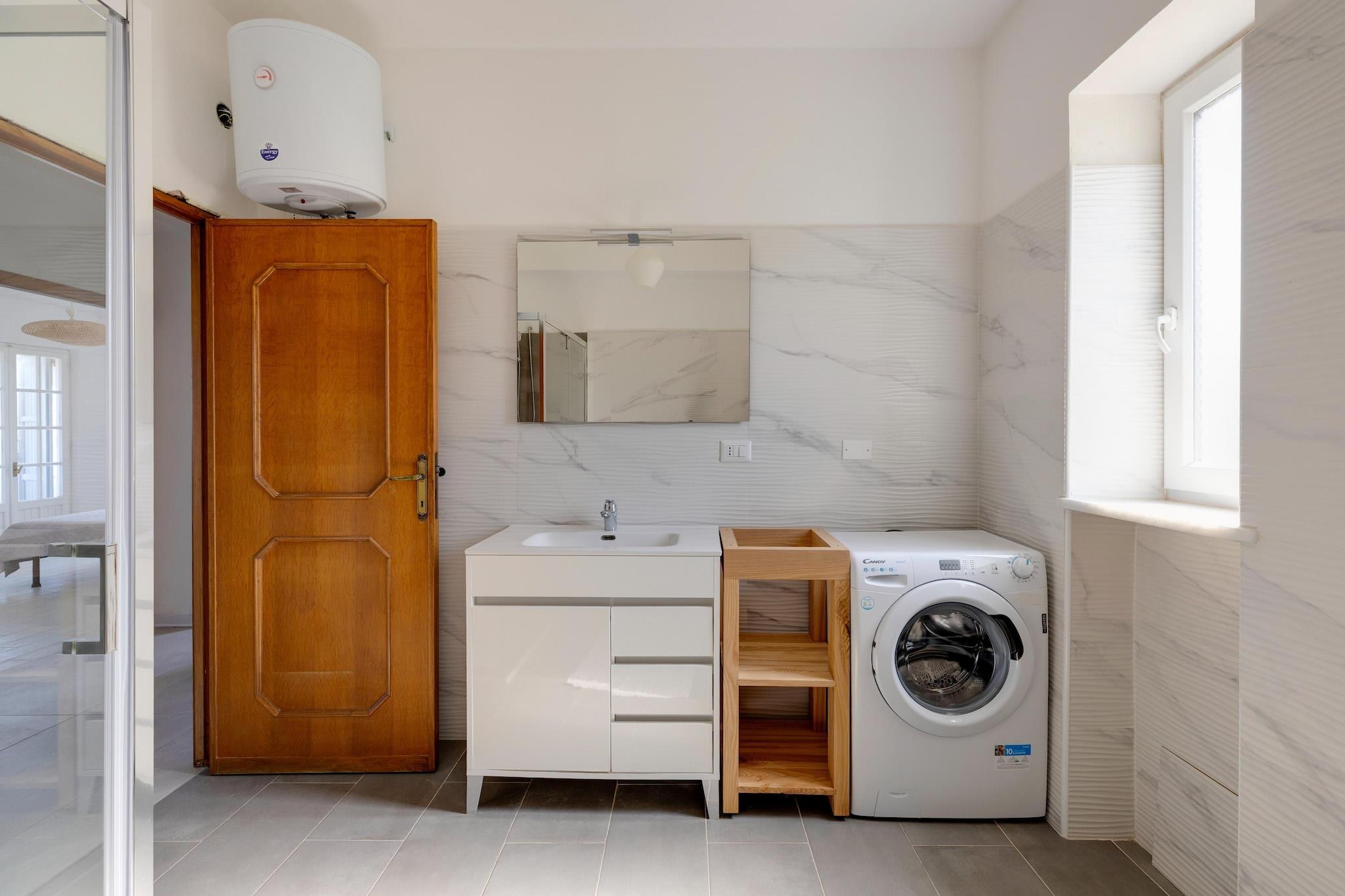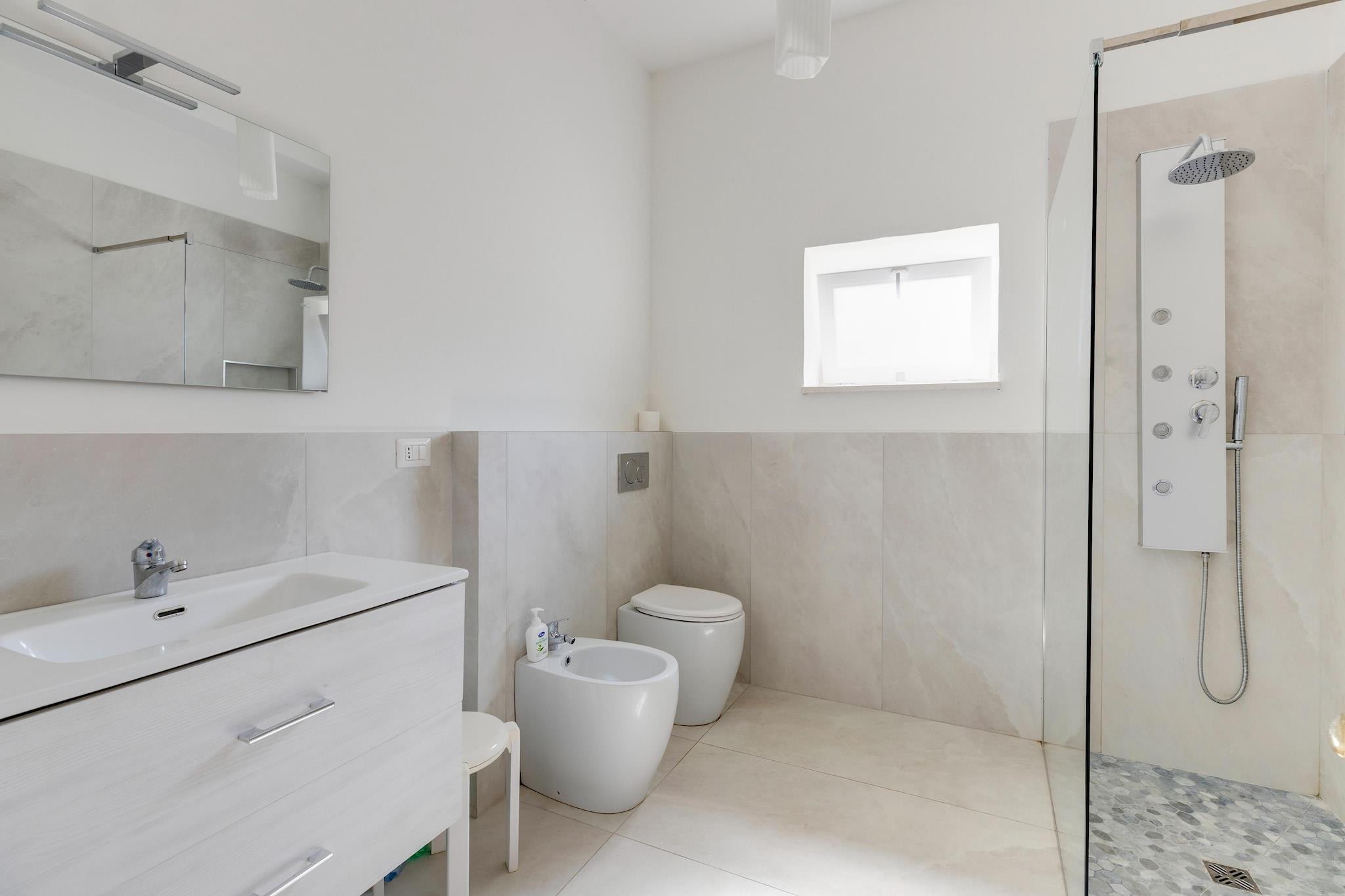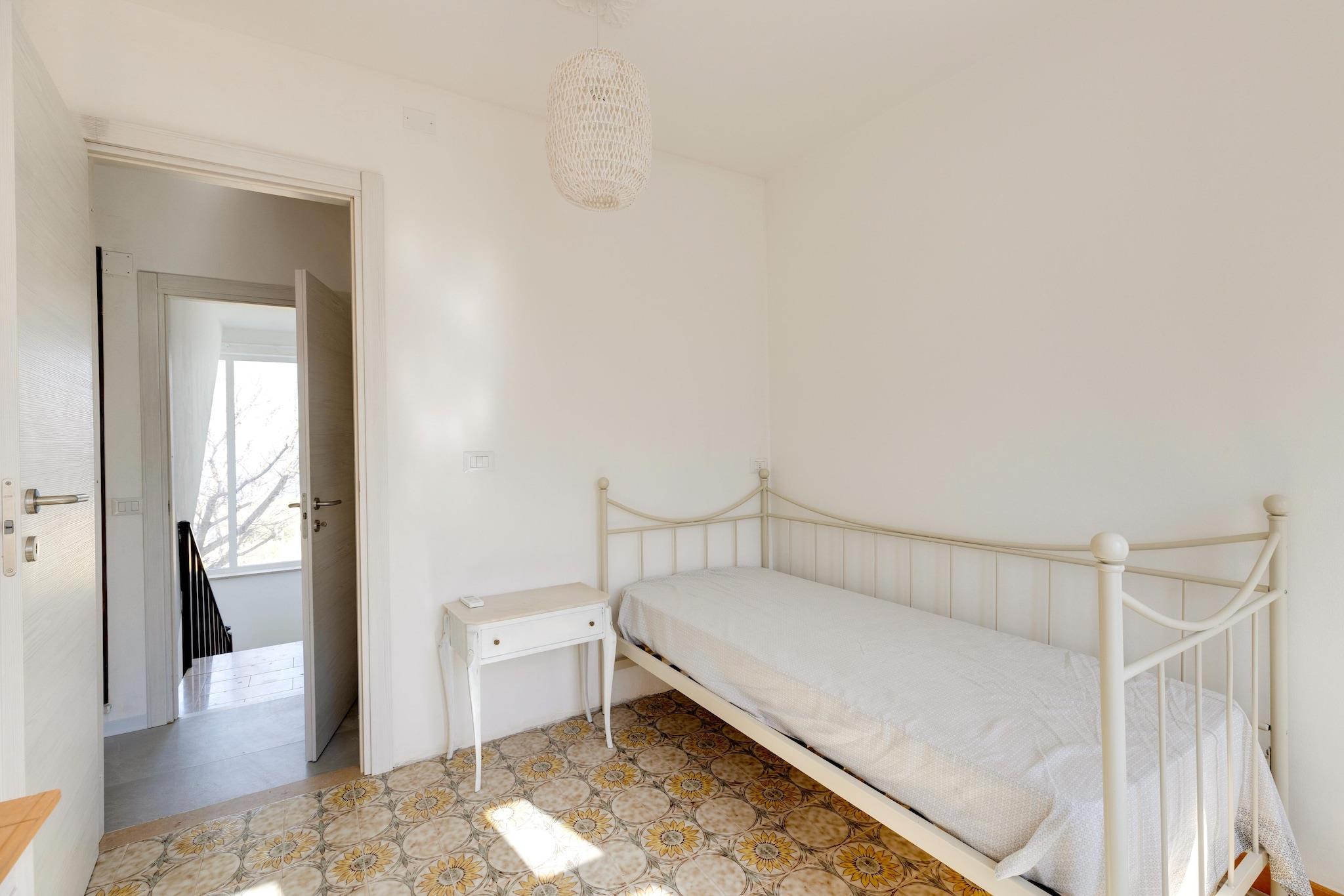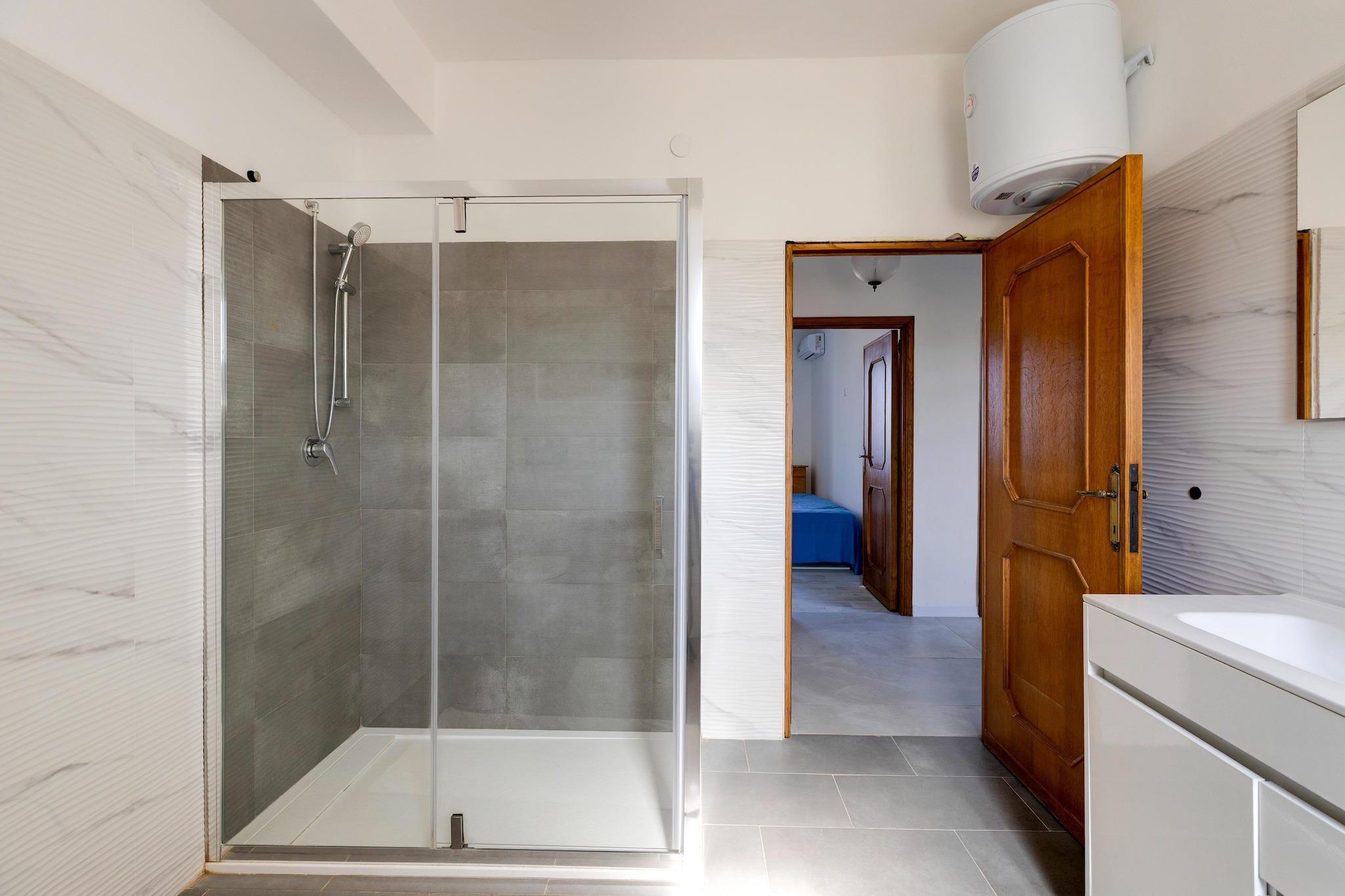 Välkommen till Lu Rommasinu, ett rymligt och helt fristående hus inbäddat i en frodig naturmiljö med en fantastisk havsutsikt. Fastigheten är fördelad på två våningar och erbjuder generösa och bekväma utrymmen, perfekt för grupper och familjer som söker en lugn semester på norra Sardinien. På bottenvåningen leder huvudentrén till ett sovrum med dubbelsäng, ett sovrum med enkelsäng, ett badrum, ett pentry i anslutning till ett ljust vardagsrum och en 15 kvadratmeter stor utomhusveranda, perfekt för avkoppling eller frukost utomhus. Första våningen har fyra sovrum med dubbelsäng och ett sovrum med enkelsäng, två funktionella badrum och ett bekvämt pentry med matplats. Huset är omgivet av en stor privat trädgård på cirka 1 000 kvadratmeter, som erbjuder inomhusparkering, utomhusplatser för att njuta av solen och möjlighet att organisera grillfester tack vare grillen. Bekvämligheterna kompletteras av luftkonditionering i hela första våningen, Wi-Fi, TV, kylskåp och tvättmaskin, för en praktisk och trevlig vistelse. Lu Rommasinu har ett strategiskt och särskilt lugnt läge, perfekt för dig som vill koppla av utan att offra bekvämligheten med att resa längs hela Sardiniens norra kust. Bara några minuter bort ligger Castelsardo, en av öns charmigaste byar, rik på historia, traditioner och förtrollande vyer. I närheten finns några av områdets vackraste stränder, såsom Ampurias, Lu Bagnu, La Ciaccia och Baia Ostina, samt möjligheter till vattensporter, utflykter, besök på arkeologiska platser eller helt enkelt att njuta av den naturliga omgivningen. Detta hem är en idealisk utgångspunkt för att uppleva det bästa av Sardinien i en lugn och välkomnande miljö, lämplig för dig som söker rymlighet, avskildhet och en bekväm bas för att upptäcka områdets underverk.