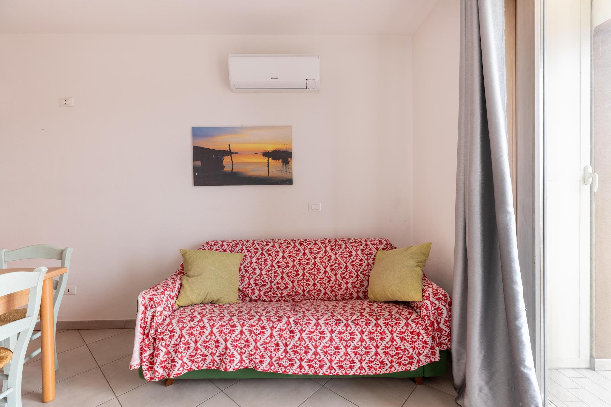 Njut av Castelsardos charm i denna bekväma tvårumslägenhet med plats för fyra personer, belägen i hjärtat av staden och bara 350 meter från Marina-stranden. Lägenheten är utrustad med luftkonditionering, TV, internet, tvättmaskin, induktionshäll med kyl och frys samt en stor möblerad terrass med fantastisk havsutsikt, perfekt för luncher och middagar utomhus. En reserverad parkeringsplats ingår också. Läget är idealiskt för att uppleva Castelsardo utan bil: du kan promenera till traditionella restauranger, hantverksbutiker, panoramabarer och stormarknader. Saker att göra i närheten: Besök den medeltida historiska stadskärnan med Doria-slottet och dess panoramamurar, promenera genom kullerstensgatorna och beundra hisnande solnedgångar över Asinarabukten, koppla av på Marina-stranden eller upptäck lugnare vikar som Lu Bagnu och Baia Ostina, upptäck lokala produkter på marknaderna och prova sardiska rätter på byns fisk- och skaldjursrestauranger. Några minuters bilresa tar dig till Valledoria, Isola Rossa eller Stintino för dagsutflykter. Perfekt för par, familjer eller små grupper som söker en bekväm semester som kombinerar hav, kultur och avkoppling.