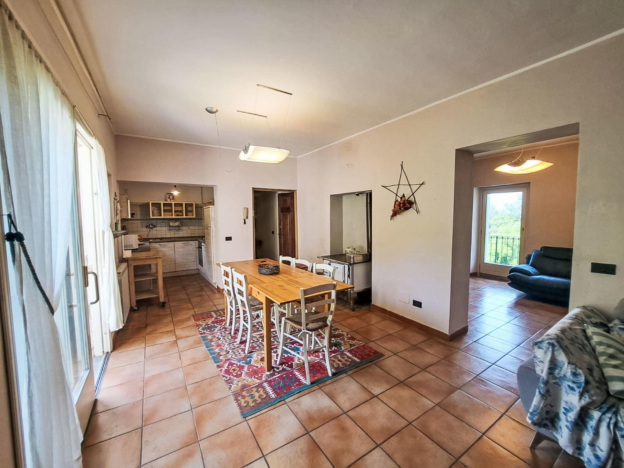 Single-family house "Bel Giardino". In the hamlet Sarigo 4 km from the centre of Porto Valtravaglia, in a quiet, elevated position, 4 km from the lake. Private: property 3'000 m2 (fenced) with lawn and trees. Garden furniture. 40 m long narrow motor access to the house. Width of access road: 200 cm. Parking (for 3 cars) on the premises, public parking 100 m. Supermarket 3 km, restaurant 1 km, bar 1 km, bus stop 3 km, railway station "Porto Valtravaglia" 4 km. Please note: car recommended.