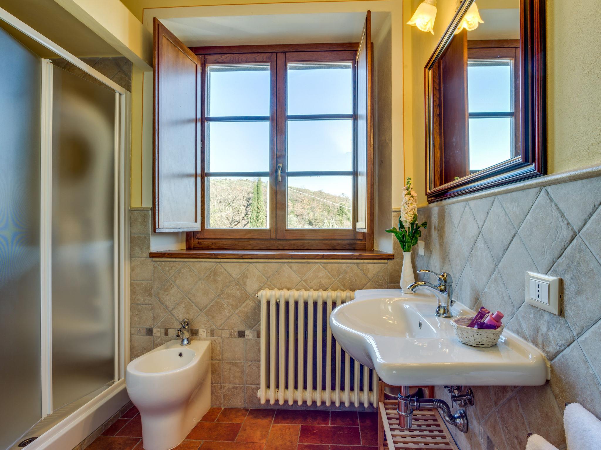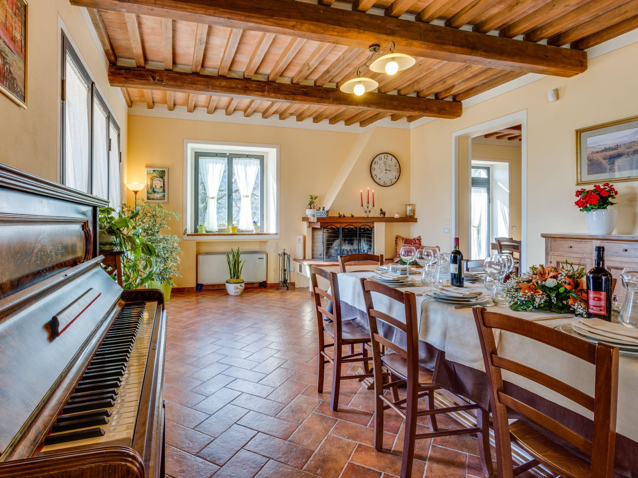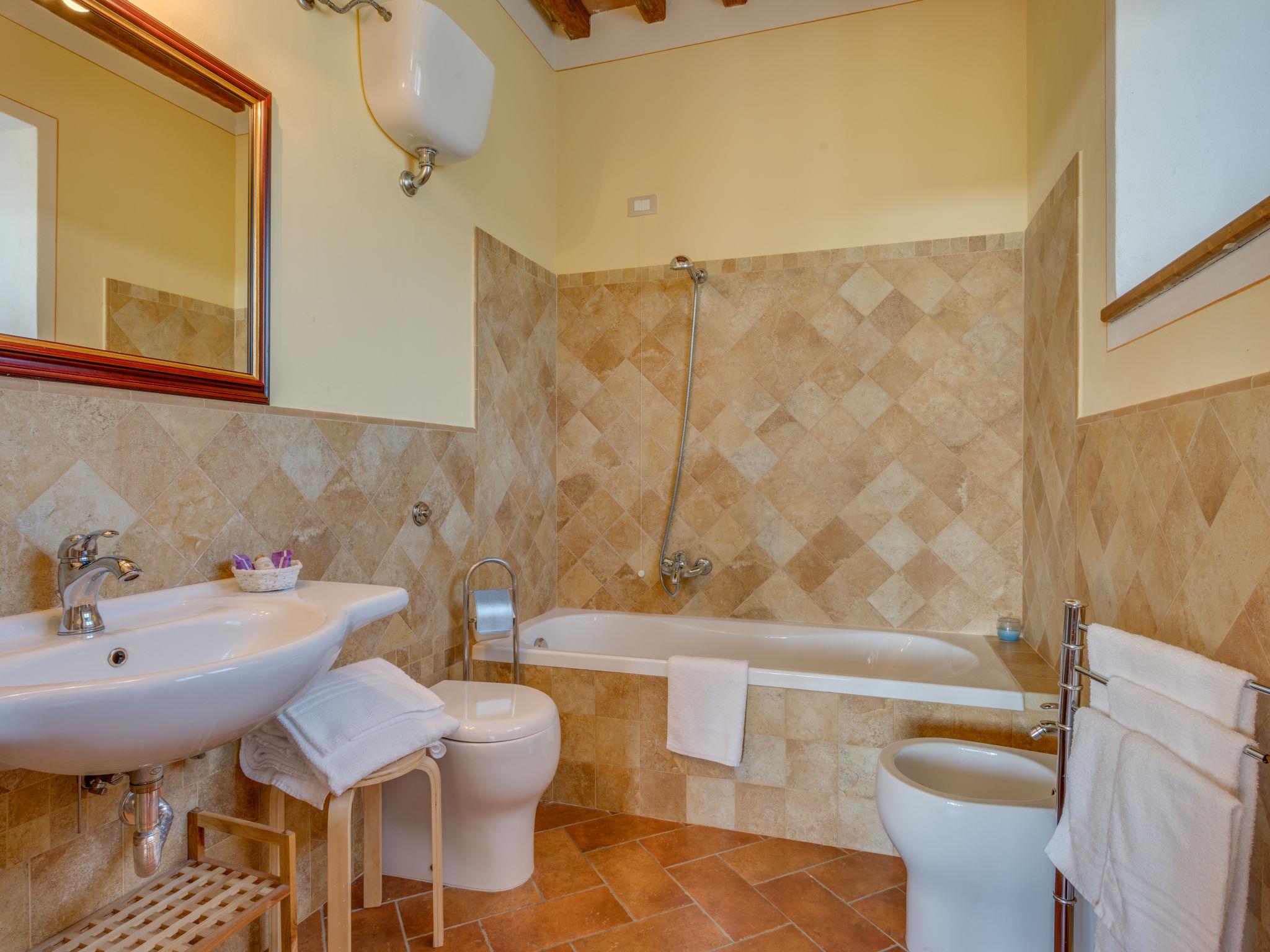 9-room villa 300 m2 on 3 levels. Spacious, fully renovated, beautiful and tasteful furnishings: large living room with 1 double sofabed and satellite TV (flat screen). Exit to the garden, to the loggia. Open dining room with open-hearth fireplace (only for decoration). Exit to the garden. 1 room with 1 bed, 1 double bed and bath/bidet/WC. Exit to the garden. 1 double bedroom with shower/bidet/WC. Kitchen (6 hot plates, oven, dishwasher, microwave, electric coffee machine). Exit to the garden. Upper floor: lounge. Exit to the garden, to the loggia. 3 double bedrooms, each room with shower/bidet/WC. 2nd upper floor: 1 double bedroom. Shower/bidet/WC. Gas heating. Heating available only from 22.10. to 07.04. Comfortable furnishings in the country house style. Marvellous view of the countryside. Facilities: washing machine, children's high chair, hair dryer. Internet (WiFi, free). Parking. Suitable for families. Maximum 2 pets/ dogs allowed. Farmhouse completely renovated in 2012 maintaining the typical traditionality of the country house with a mixture of period details but also modern comforts such as WIFI (AN and TV present in most of the rooms). IT051012B5FIP9RVI6