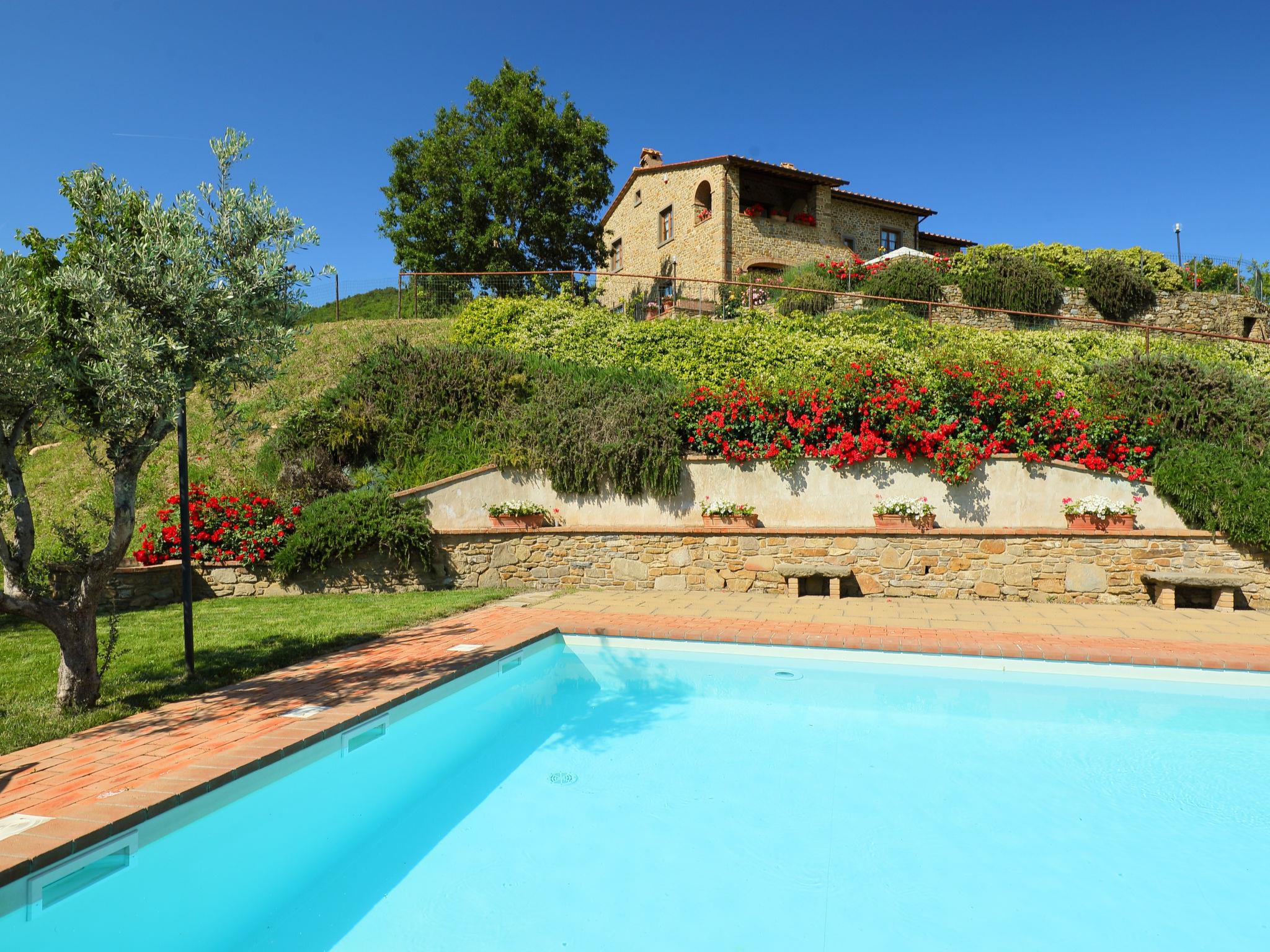 Stunning Tuscan countryside house with beautiful views. With private pool overlooking the estate olive groves this house makes a unique holiday place to spend a holiday. Villa "Zen", 350 m a.s.l., detached, renovated, surrounded by trees and fields. 5 km from the centre of Castiglion Fiorentino, 15 km from the centre of Cortona, 25 km from the centre of Arezzo, in a secluded, sunny position on top of a hill, 20 km from the lake, in the countryside. Private: property (fenced), beautiful garden to relax, swimming pool (12 x 7 m, depth 140 cm, seasonal availability: 01.May. - 15.Oct.). Outdoor shower, garden furniture, barbecue. In the house: internet access, washing machine. Motor access (500 m via unmade road, mountain road, ramp). Parking on the premises. Grocery 5 km, supermarket 5 km, restaurant 2 km, bus stop 2.5 km, bathing lake "Trasimeno" 20 km. Please note: car recommended.