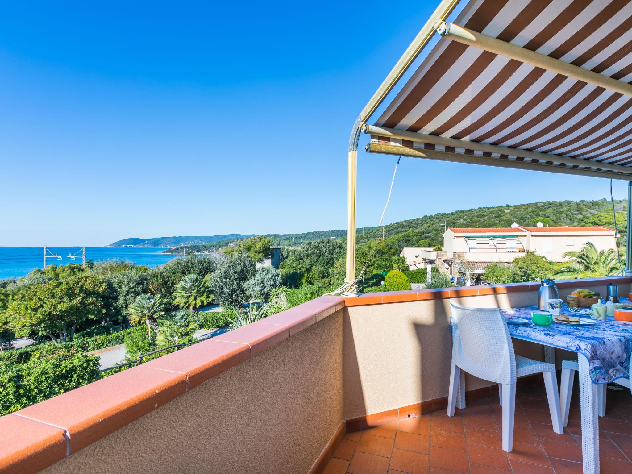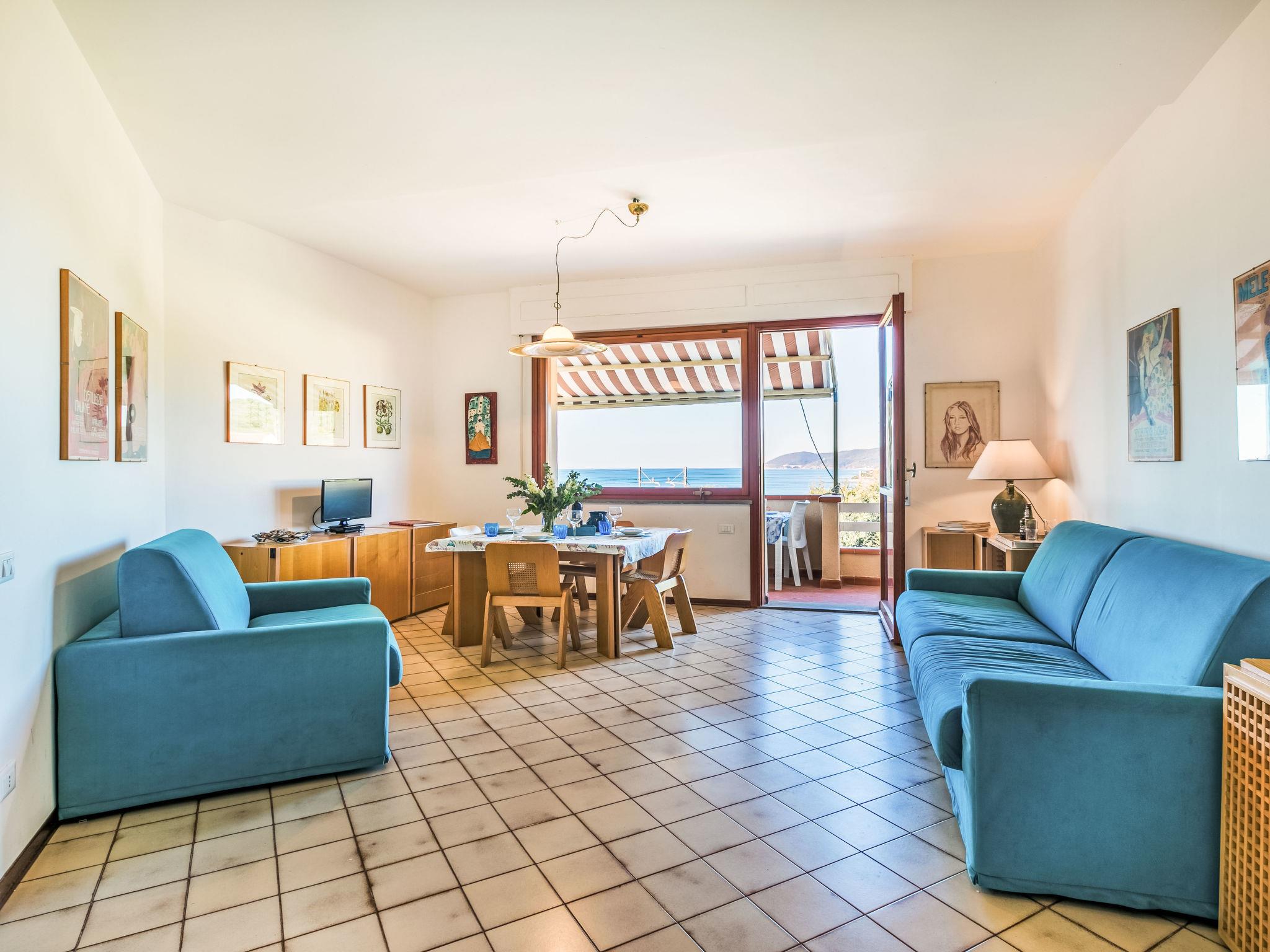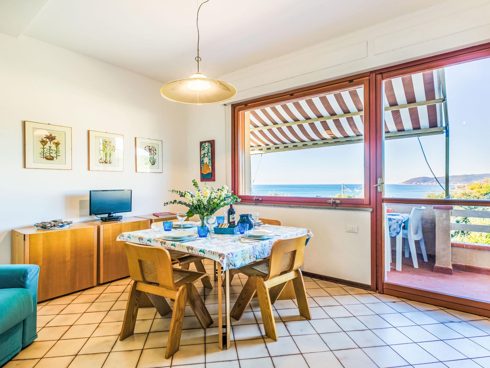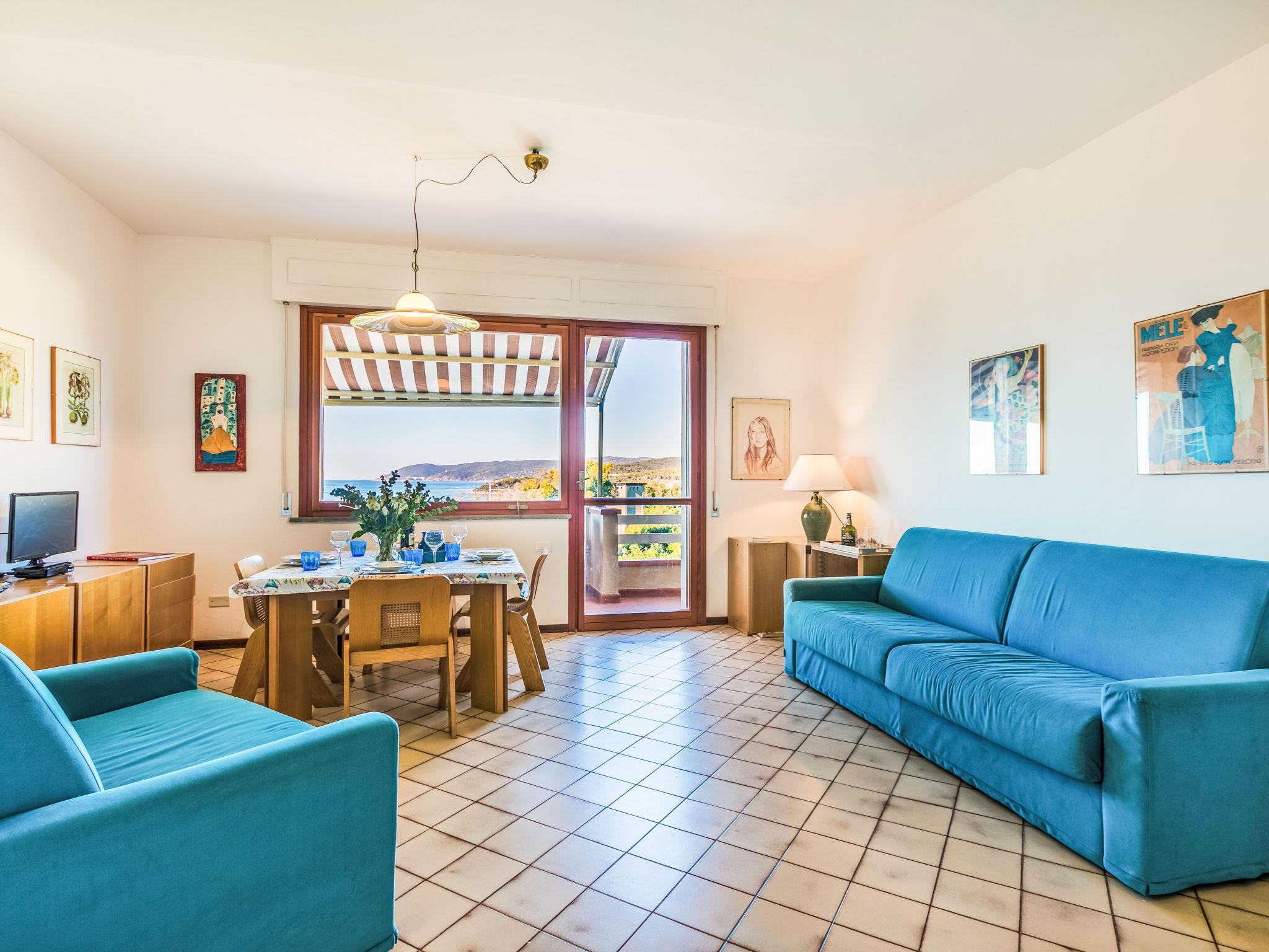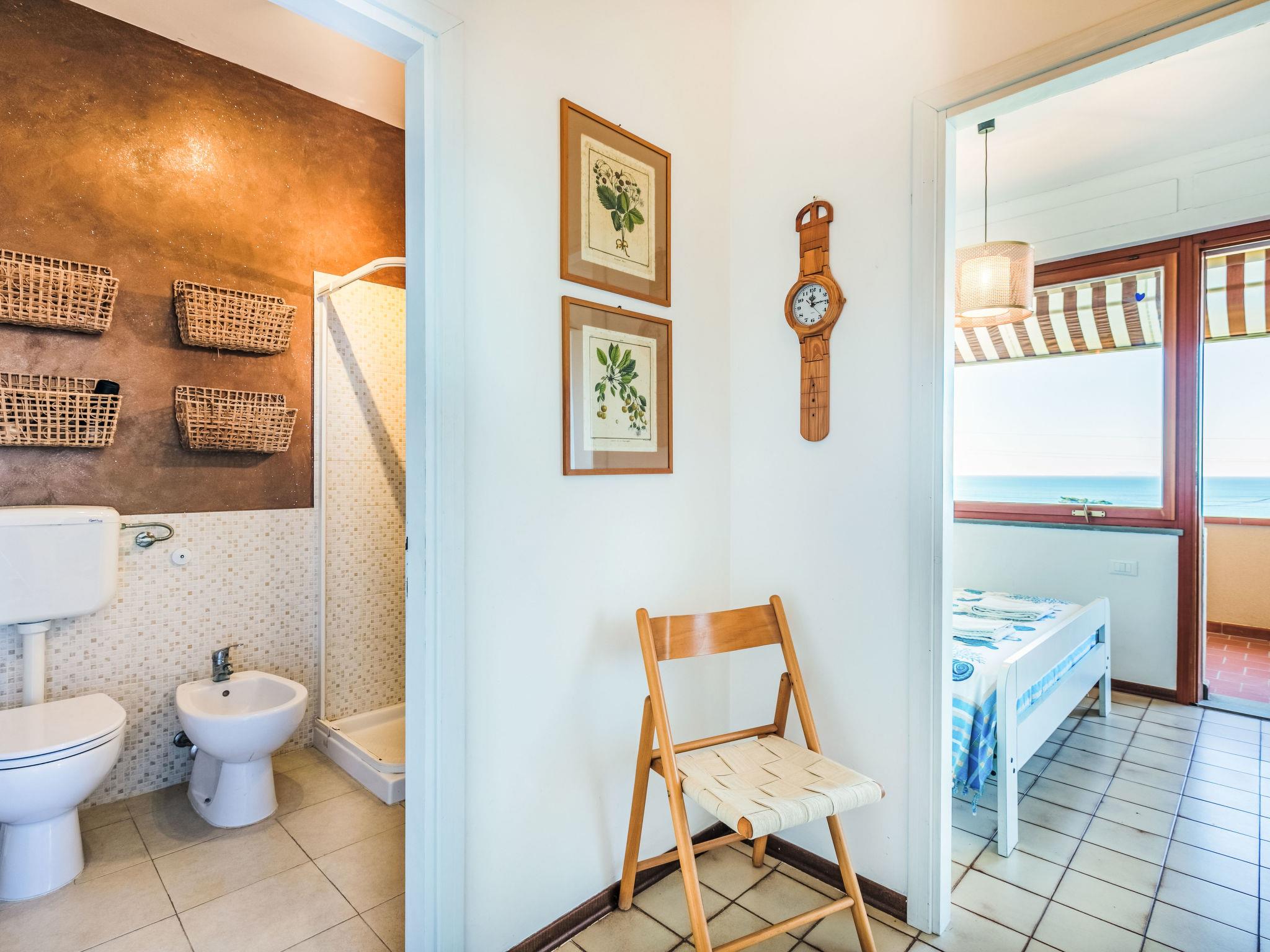 2-room apartment 50 m2 on 1st floor. Spacious and bright, beautiful and modern furnishings: upper floor: (exterior staircase) living/sleeping room with 1 double sofabed, dining table and TV. Exit to the balcony. 1 double bedroom with 1 double bed. Exit to the balcony. Open kitchen (oven, dishwasher, 4 induction hot plates, toaster, kettle, electric coffee machine). Shower/bidet/WC. Electric heating, air-conditioning. Balcony 30 m2. Balcony furniture, deck chairs (2). Marvellous view of the sea. Facilities: hair dryer. Internet (WiFi, free). Please note: fire extinguisher. Bedlinen, towels, final cleaning and all energy costs are included. IT049017C235RLHE4A