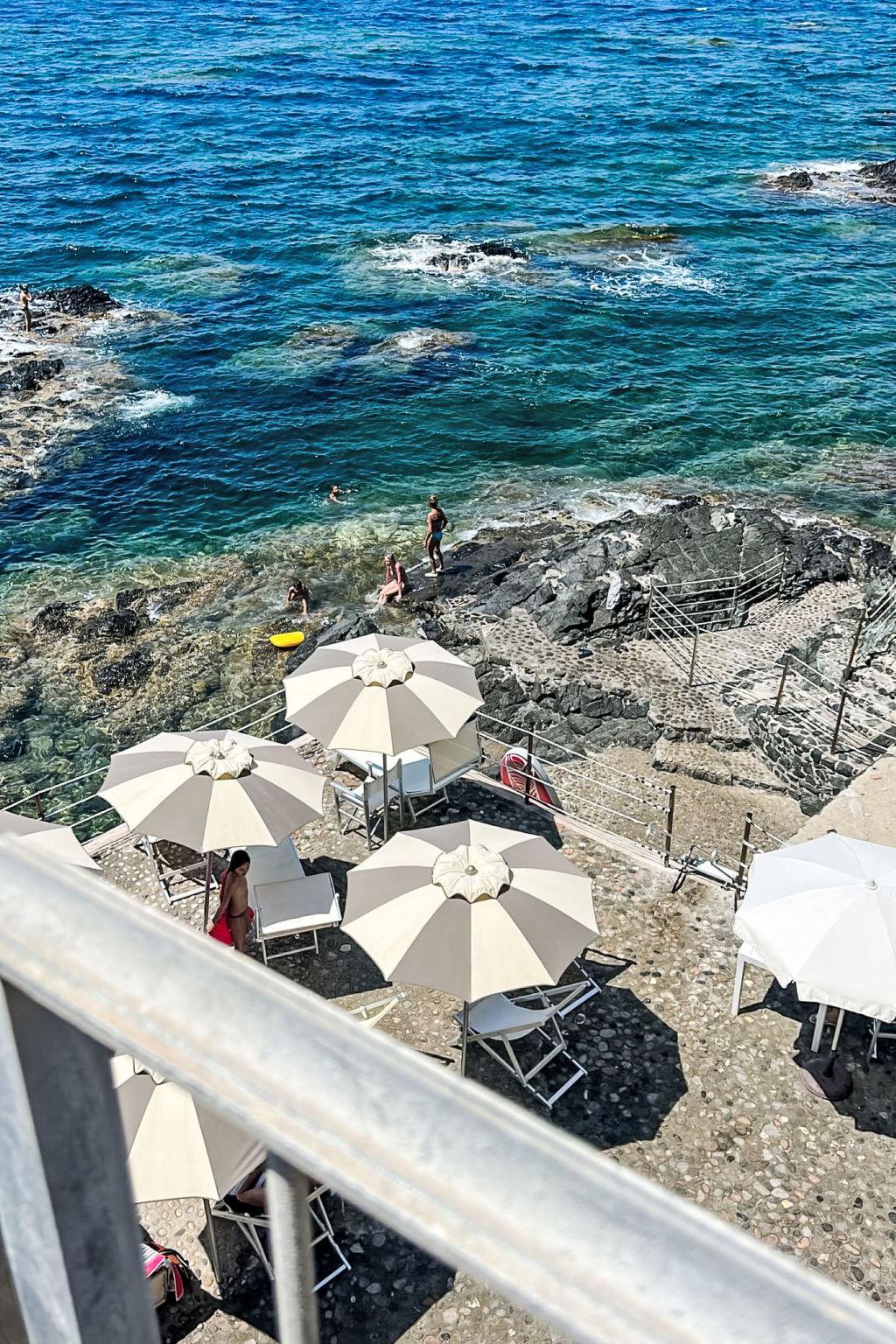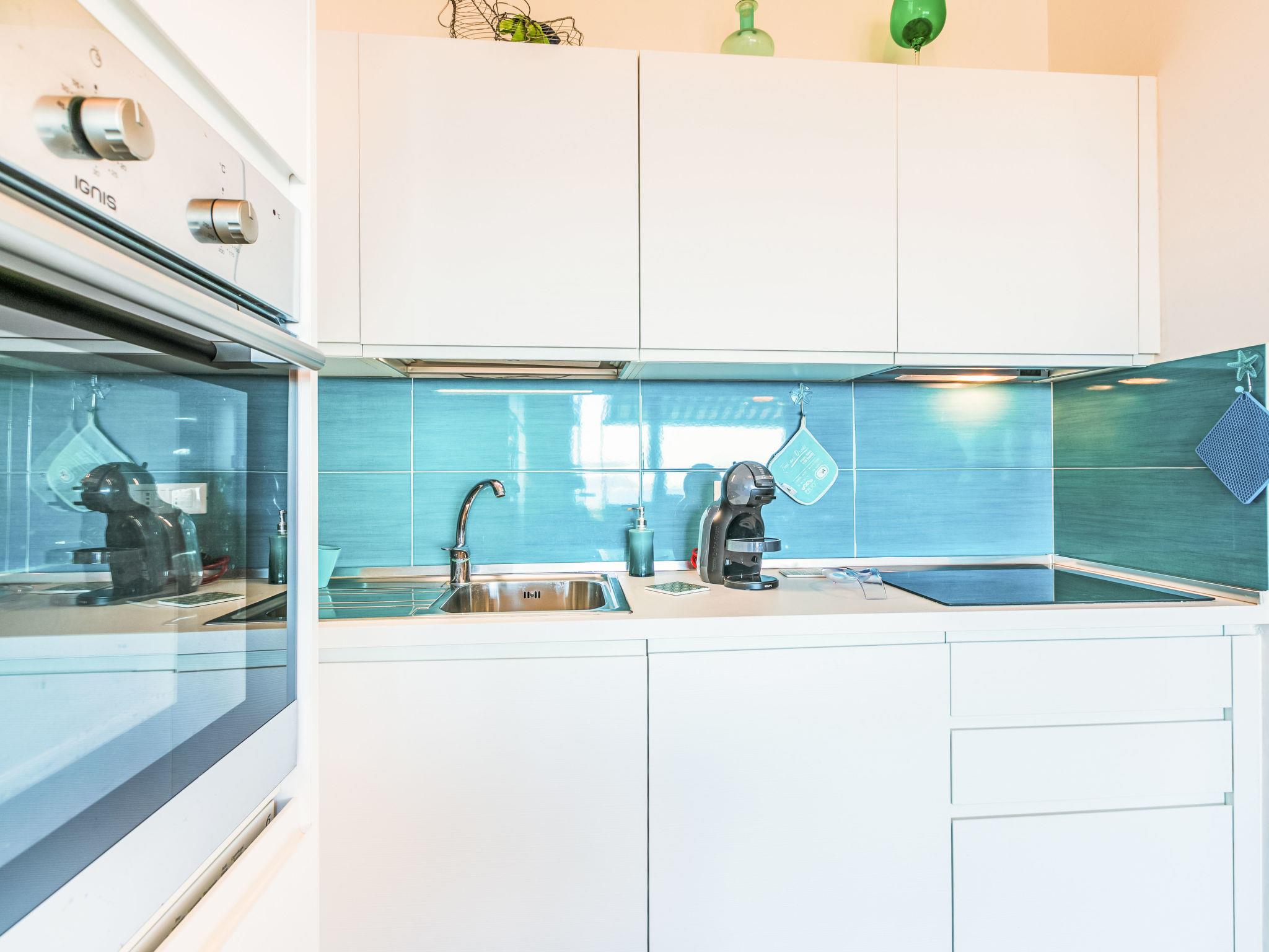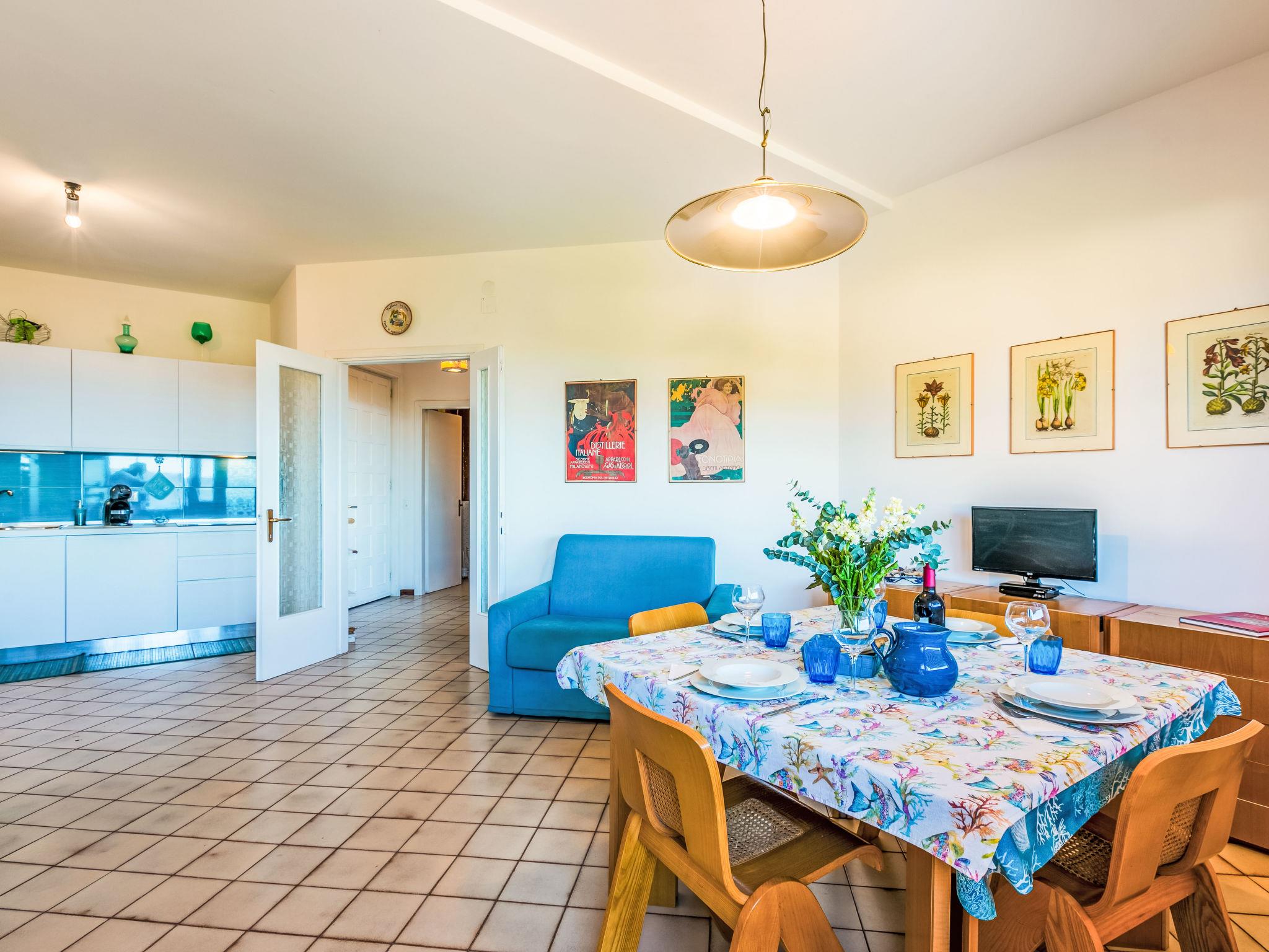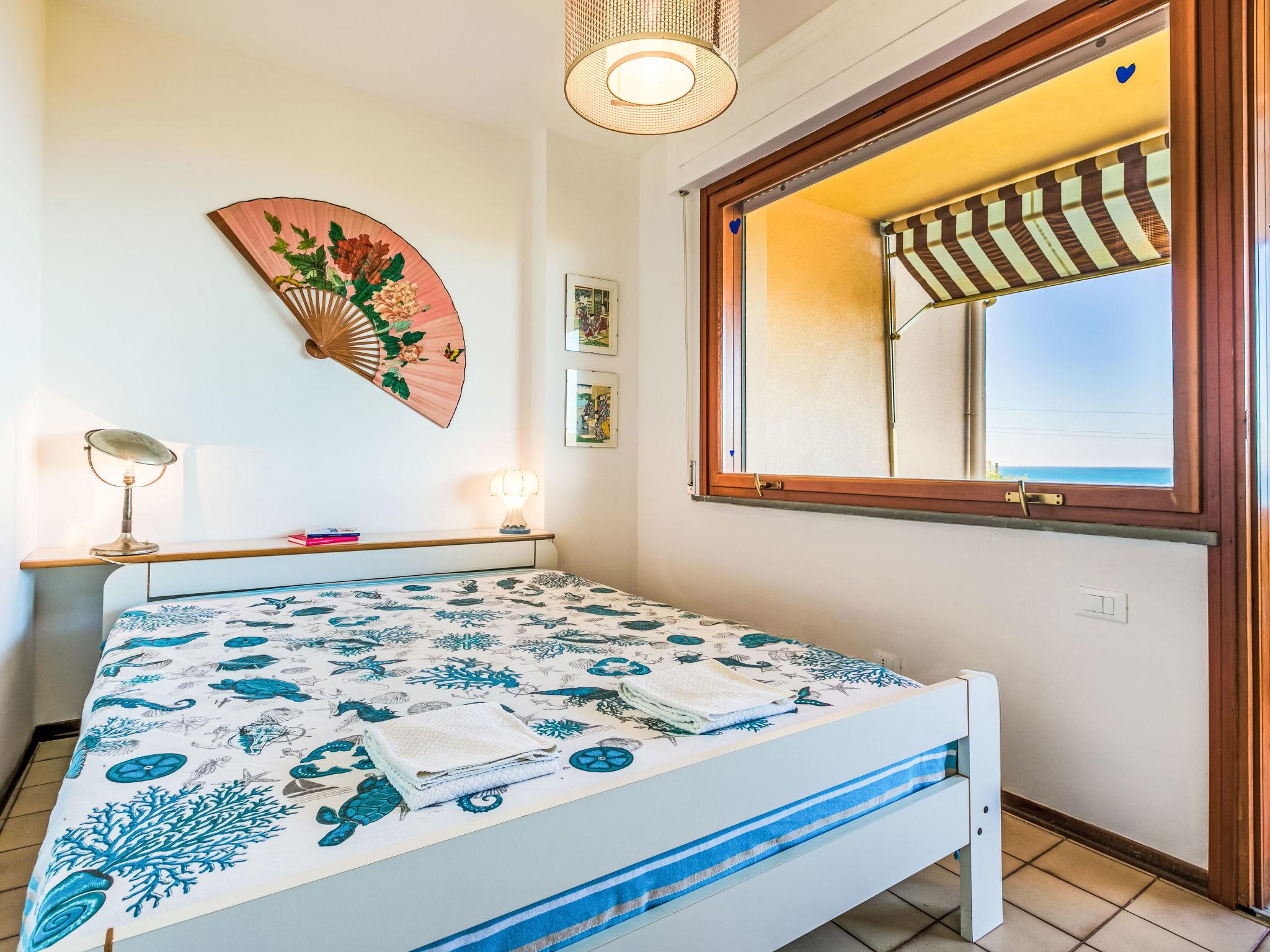 2-room apartment 50 m2 on 1st floor. Spacious and bright, beautiful and modern furnishings: upper floor: (exterior staircase) living/sleeping room with 1 double sofabed, dining table and TV. Exit to the balcony. 1 double bedroom with 1 double bed. Exit to the balcony. Open kitchen (oven, dishwasher, 4 induction hot plates, toaster, kettle, electric coffee machine). Shower/bidet/WC. Electric heating, air-conditioning. Balcony 30 m2. Balcony furniture, deck chairs (2). Marvellous view of the sea. Facilities: hair dryer. Internet (WiFi, free). Please note: fire extinguisher. Bedlinen, towels, final cleaning and all energy costs are included. IT049017C235RLHE4A