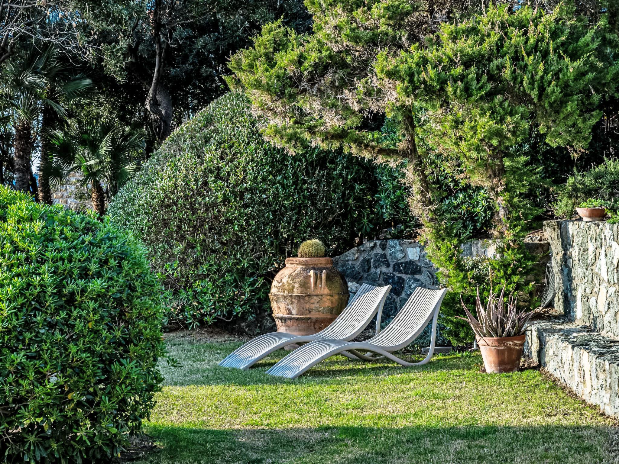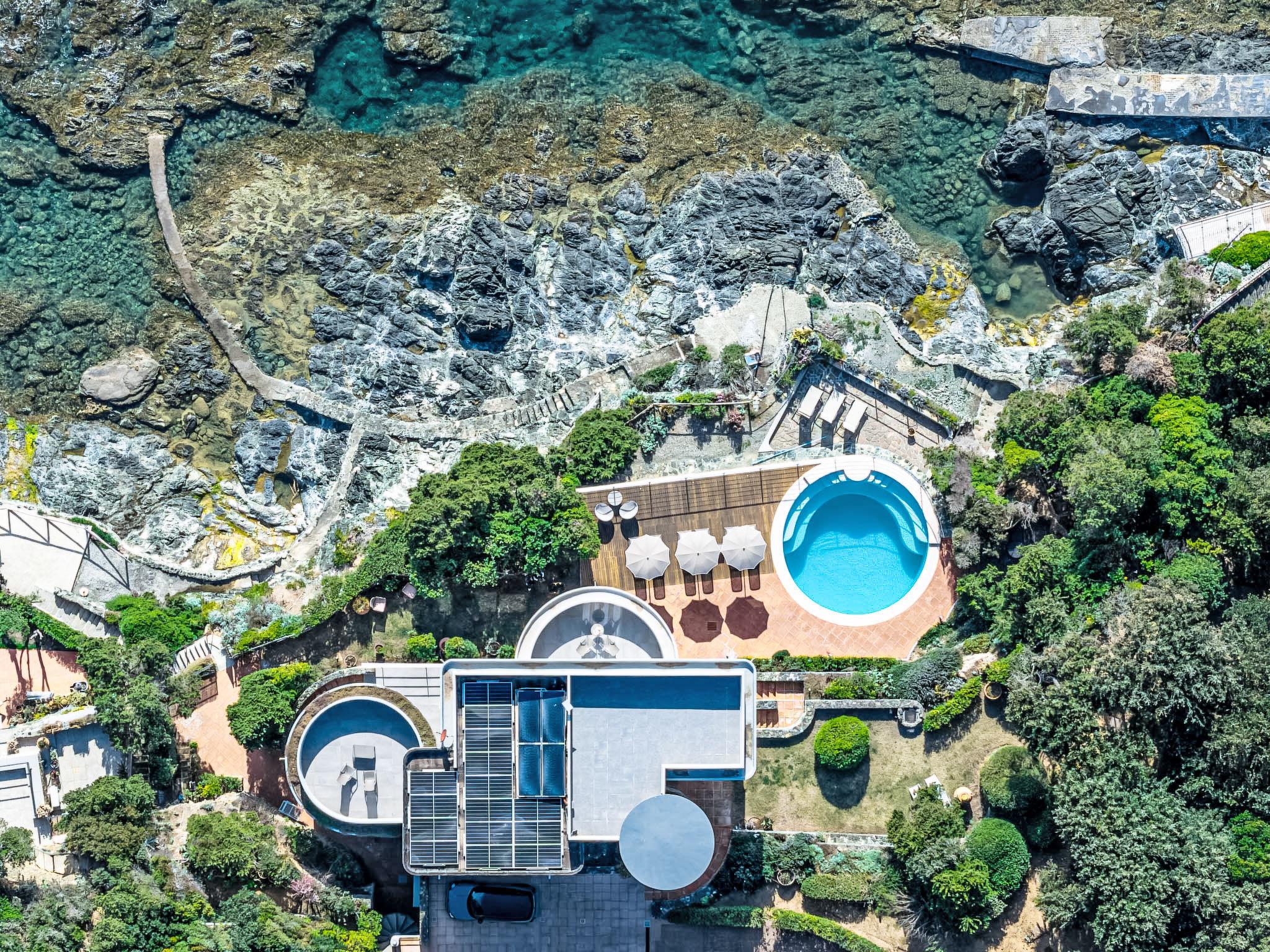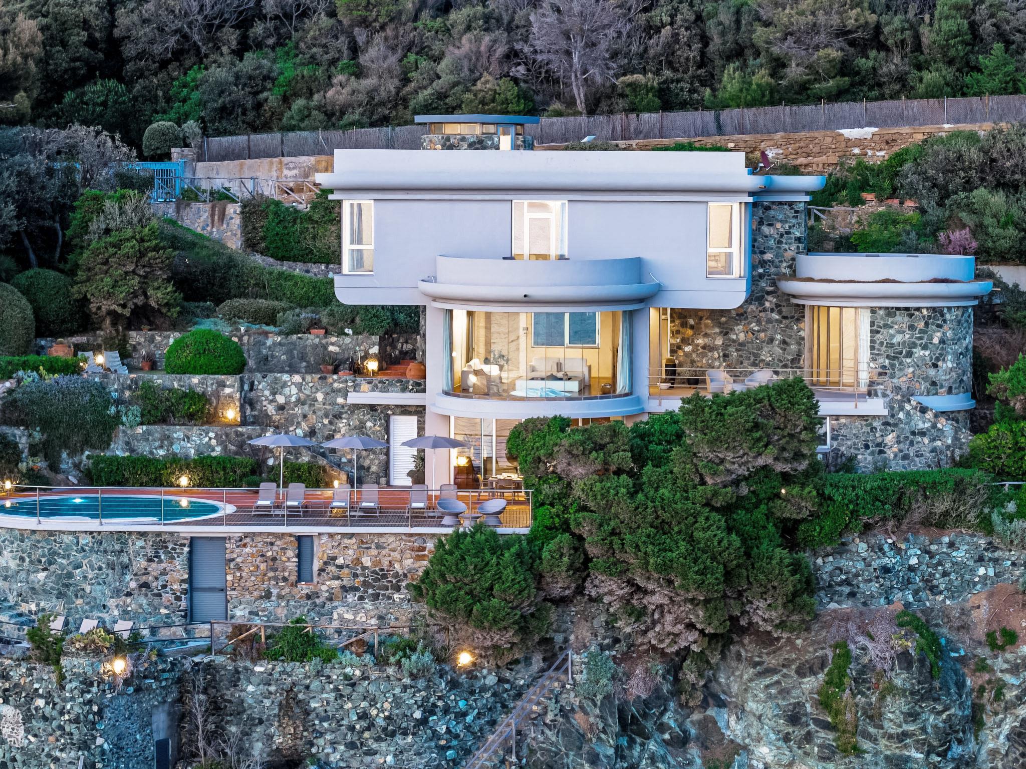 "Vistamare", 8-room house 450 m2 on 3 levels. Renovated in 2022, beautiful and tasteful furnishings: 1 double bedroom with 1 double bed. 1 room with 2 beds (80 cm). Dining room with dining table. Exit to the terrace. Kitchen (oven, dishwasher, 5 induction hot plates, toaster, kettle, microwave, freezer, electric coffee machine). Exit to the garden. Shower/WC. Upper floor: (spiral staircase) living room with TV, hi-fi system and DVD. Exit to the terrace. 2nd upper floor: 2 double bedrooms. 1 double bedroom. Exit to the balcony. 1 room with 2 beds. Exit to the balcony. 2 showers/WC. Electric heating, air-conditioning. Parquet floors. Balcony, 3 terraces partly covered. Terrace furniture, box-room. Marvellous view of the sea. Facilities: washing machine, safe, iron, children's high chair, baby cot for up to 3 year olds, hair dryer. Internet (WiFi, free). Please note: maximum 2 pets/ dogs allowed. Fire extinguisher. IT049017B4ZSMZZVZD