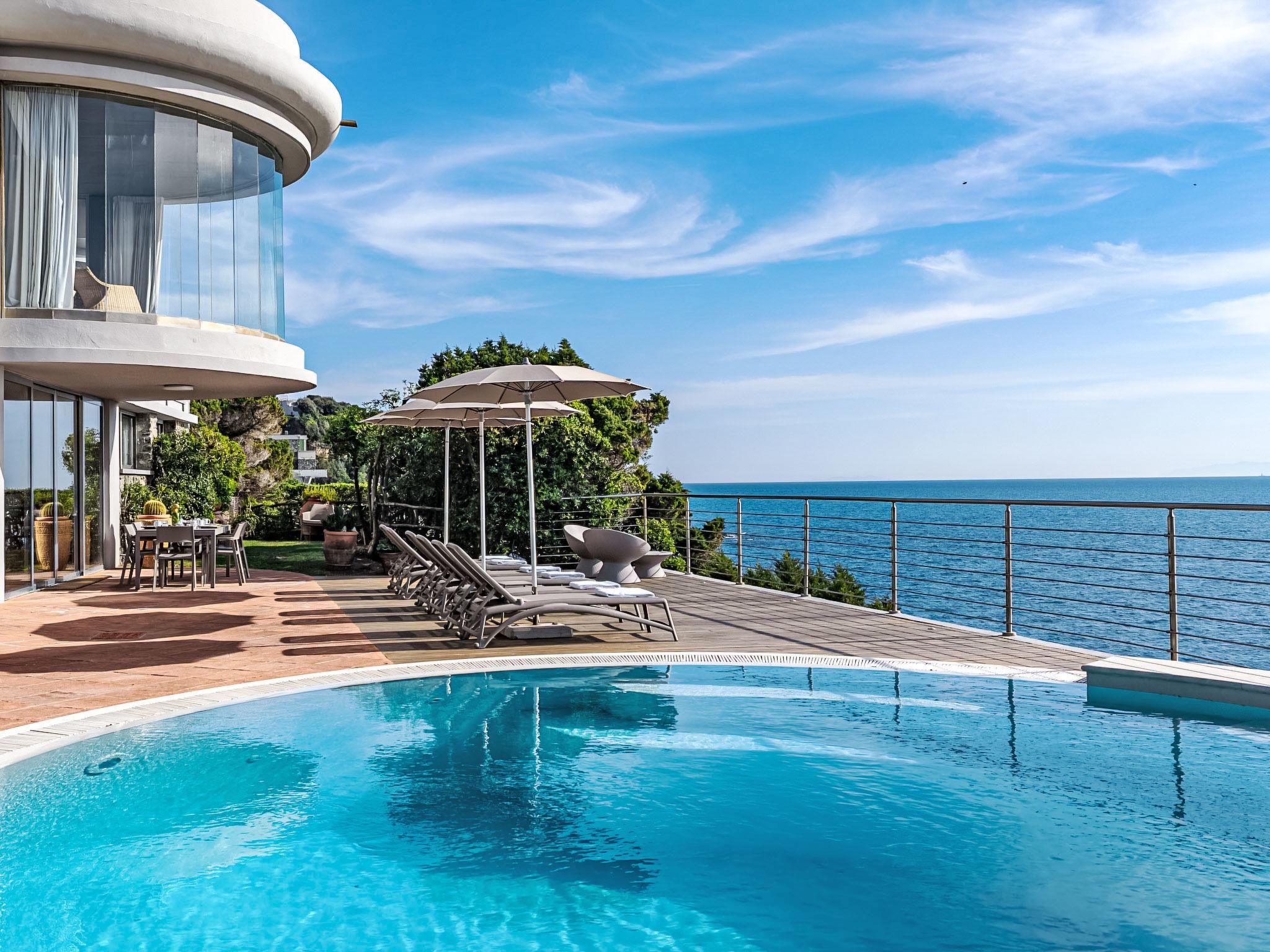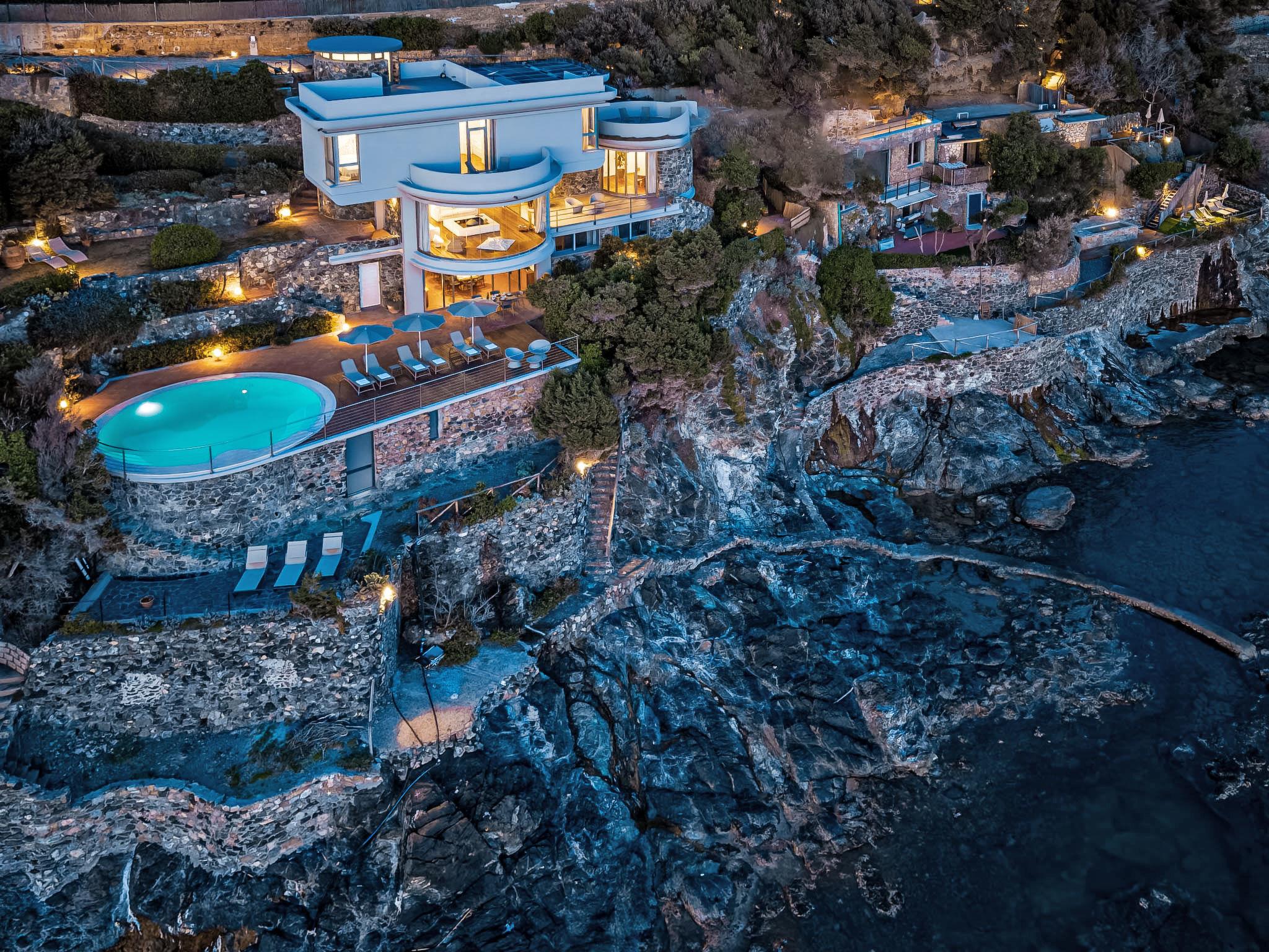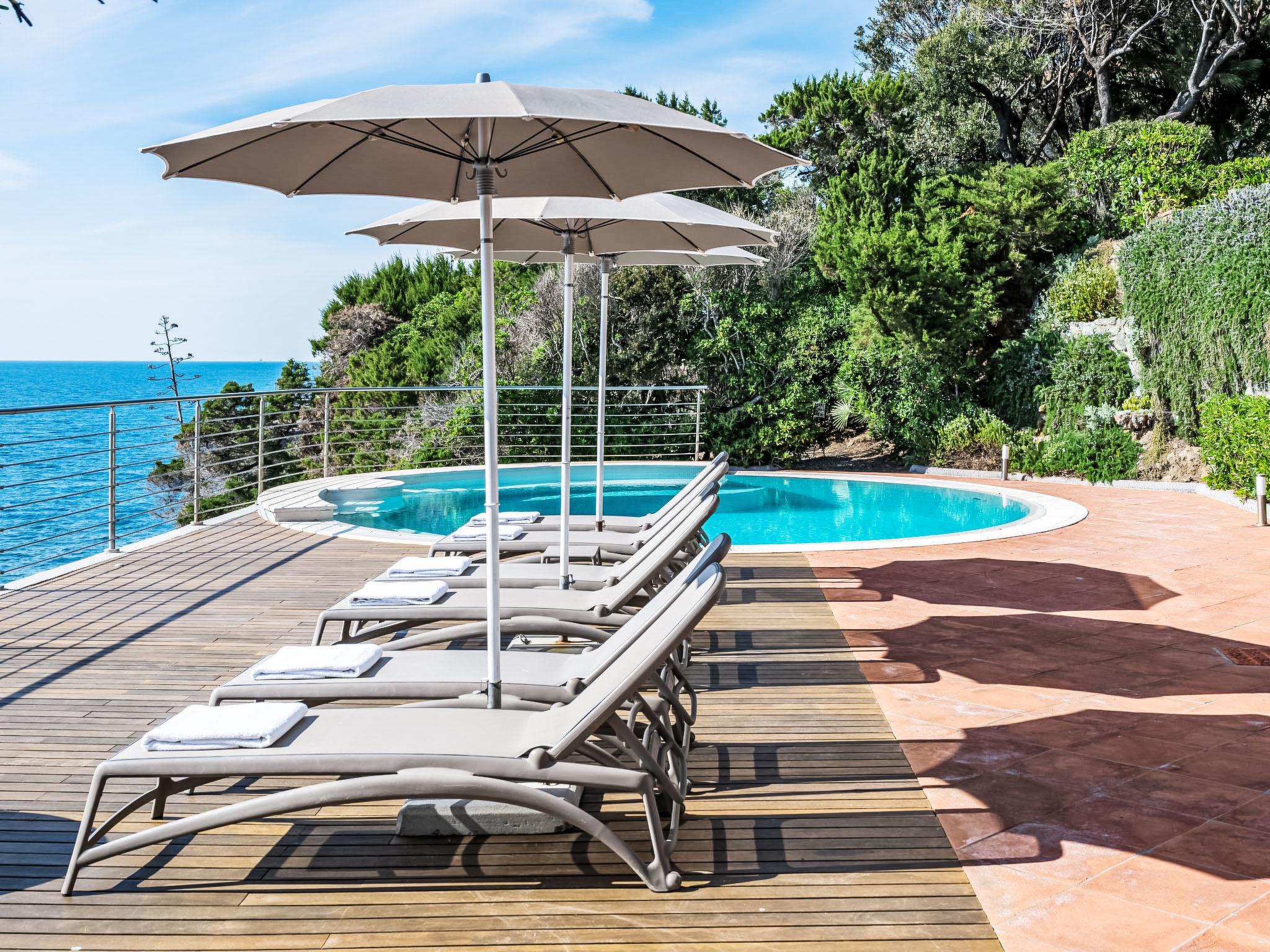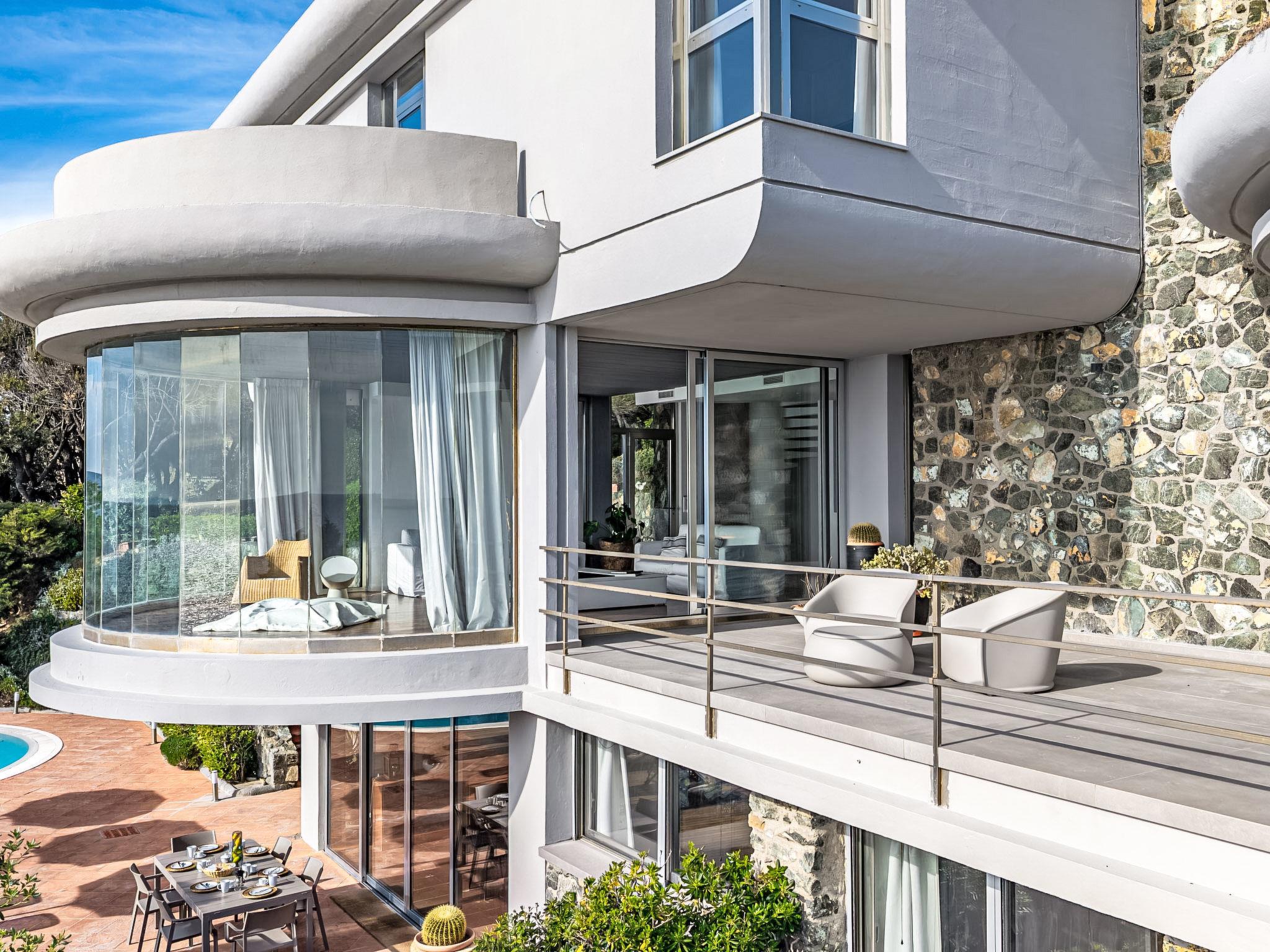 "Vistamare", 8-room house 450 m2 on 3 levels. Renovated in 2022, beautiful and tasteful furnishings: 1 double bedroom with 1 double bed. 1 room with 2 beds (80 cm). Dining room with dining table. Exit to the terrace. Kitchen (oven, dishwasher, 5 induction hot plates, toaster, kettle, microwave, freezer, electric coffee machine). Exit to the garden. Shower/WC. Upper floor: (spiral staircase) living room with TV, hi-fi system and DVD. Exit to the terrace. 2nd upper floor: 2 double bedrooms. 1 double bedroom. Exit to the balcony. 1 room with 2 beds. Exit to the balcony. 2 showers/WC. Electric heating, air-conditioning. Parquet floors. Balcony, 3 terraces partly covered. Terrace furniture, box-room. Marvellous view of the sea. Facilities: washing machine, safe, iron, children's high chair, baby cot for up to 3 year olds, hair dryer. Internet (WiFi, free). Please note: maximum 2 pets/ dogs allowed. Fire extinguisher. IT049017B4ZSMZZVZD