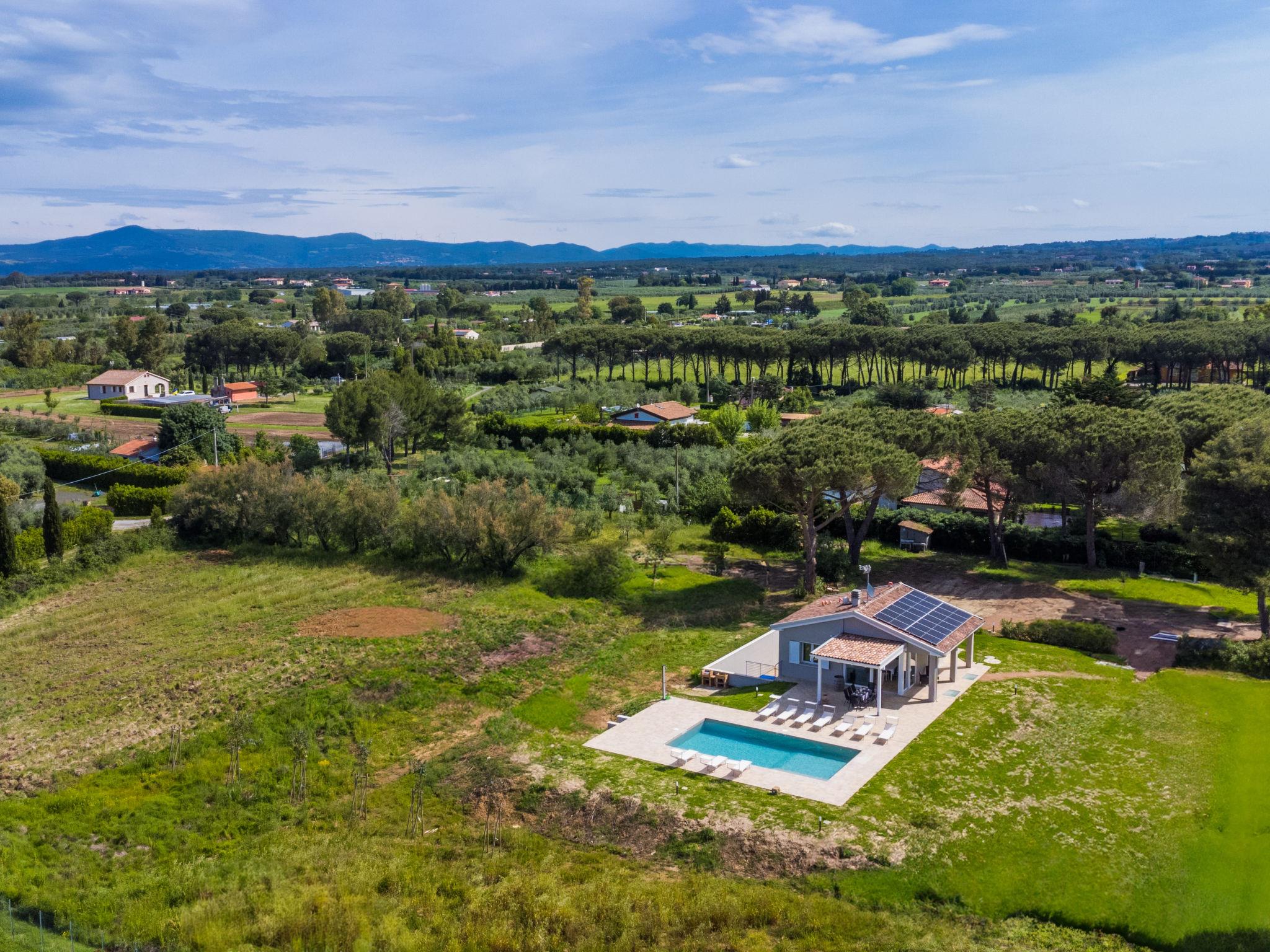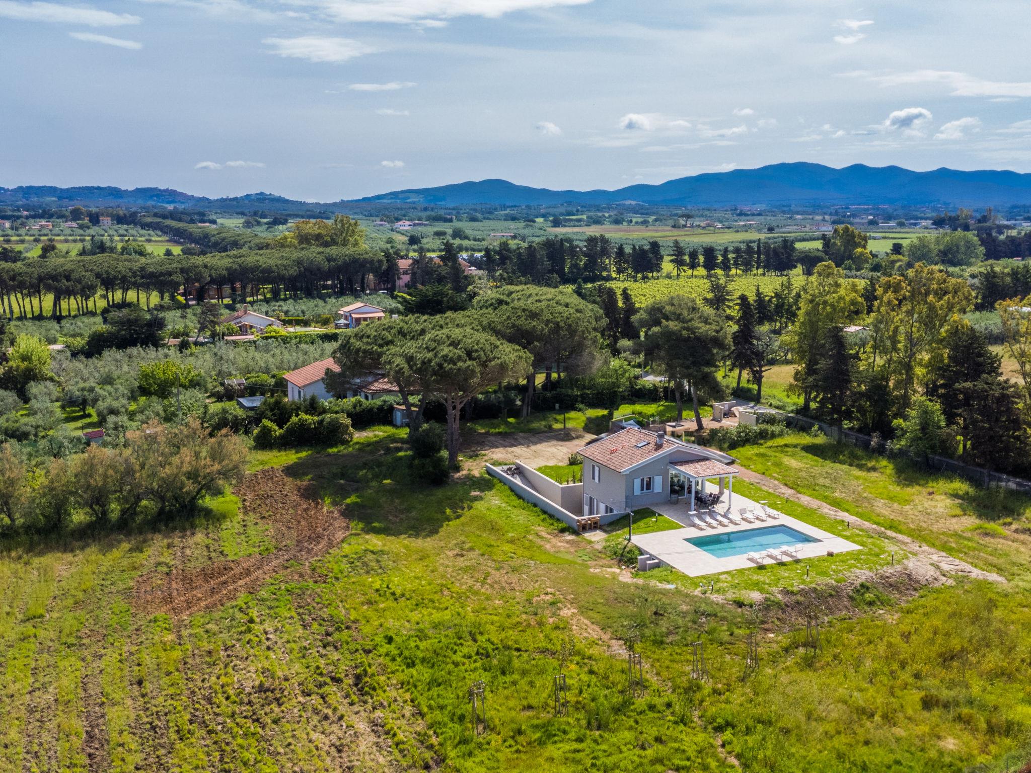 Modern, beautiful single-family house "Veronica", 2 storeys, built in 2023, surrounded by trees and fields. 3 km from the centre of Cecina, 6 km from the centre of Marina di Bibbona, 3 km from the sea, 3 km from the beach. Private: property 1 ha (fenced), natural garden, swimming pool (10 x 5 m, depth 90 - 150 cm, seasonal availability: 20.Apr. - 10.Oct.). Barbecue, pool maintenance by the owner/gardener. In the house: table tennis, table football, washing machine. Linen change (suppl. charge extra). Towel change (suppl. charge extra). Parking at the house. Shop 1.2 km, grocery 1.2 km, supermarket 2.7 km, restaurant 1.2 km, bakery 1.2 km, bus stop "V. Della Macchia, Aurelia" 200 m, railway station "Cecina" 5 km, sandy beach "Marina di Cecina" 4.5 km. Nearby attractions: Bogheri 12 km, Pisa 60 km, Lucca 90 km, Firenze 120 km. The owner does not accept any youth groups. Please note: main road close by 100 m from the property.