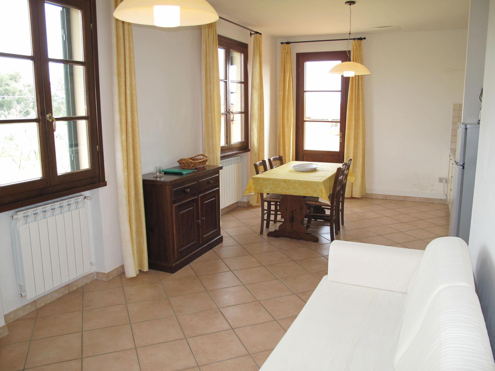 Beautiful residence "Le Macine", 2 storeys, surrounded by trees and meadows. 9 apartments in the residence. 2.5 km from the centre of Cecina, 41 km from the centre of Livorno, 36 km from the centre of Volterra, 5 km from the sea, in the countryside. For shared use: property 2'000 m2, meadow, beautiful garden to relax, swimming pool (19 x 8 m, seasonal availability: 21.May. - 02.Oct.). Children's pool, outdoor shower, table tennis, boccia, beach volleyball, patio, arbour, barbecue, pool maintenance by the owner/gardener. In the house: reception, WiFi, washing machine (for shared use, extra). Parking on the premises. Shop 2.5 km, supermarket 2.5 km, bus stop 1 km, sandy beach "Cecina Mare" 5 km. Local sale of farm products. Residence with electric gates.