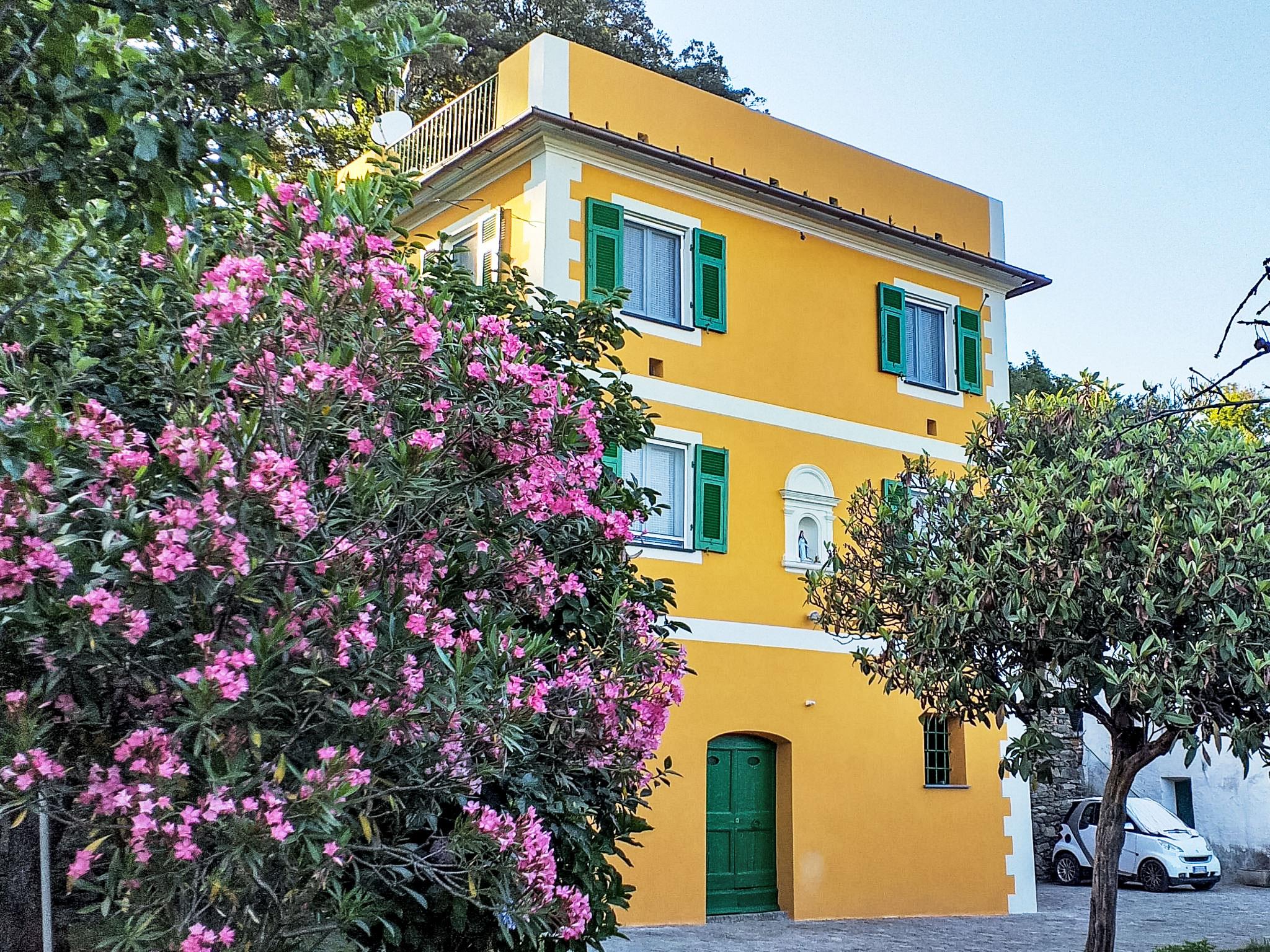 Old 2-family house "Casa del Poggio". In the hamlet Sanda 3 km from the centre of Celle Ligure, in a quiet, elevated position on a slope, 3.5 km from the sea, in a cul-de-sac. Motor access to 120 m from the house. Footpath to the house. Public parking 150 m. Shop 3.5 km, supermarket 3.5 km, restaurant 2.5 km, bus stop 150 m, railway station "Celle Ligure" 3.5 km, sandy beach 3.5 km. Nearby attractions: Poggio della Fratellanza Umana, Albissola 5 km, Beigua Geopark 10 km, Varazze 7 km. Hiking paths: Sentiero Liguria 200 m. Please note: car recommended.