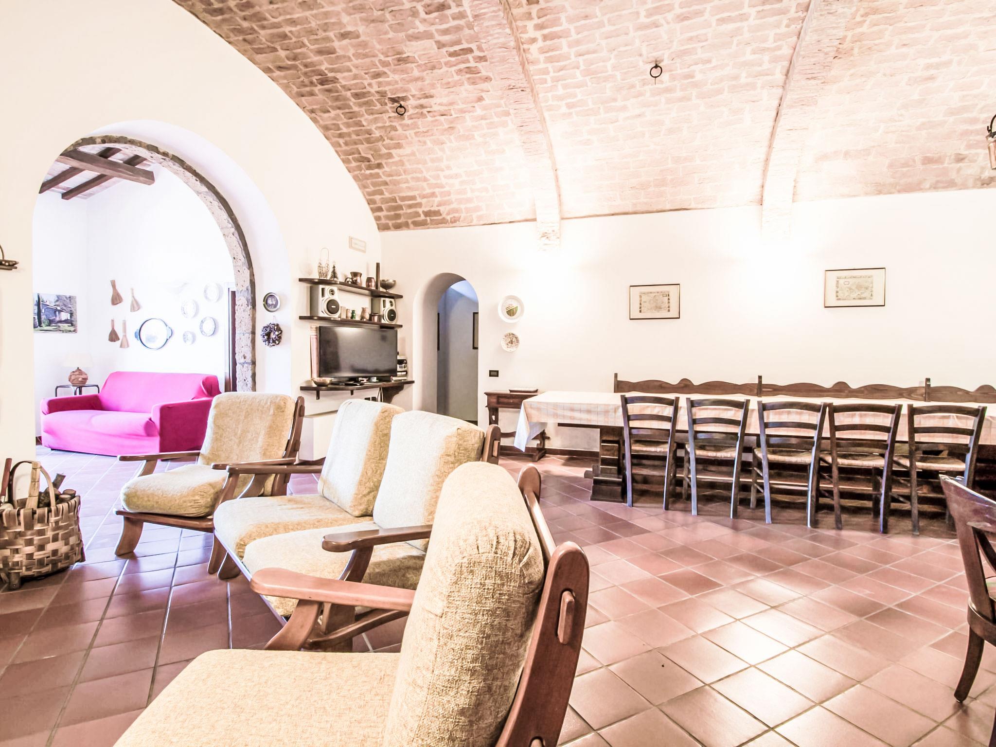 5-room house 160 m2 on 2 levels, on the ground floor. Comfortable and rustic furnishings: lounge with panoramic window. Living/dining room with open-hearth fireplace and satellite TV. Kitchen-/living room (4 hot plates, oven, dishwasher, microwave, freezer). Shower/bidet/WC. Upper floor: (spiral staircase), 1 double bedroom with air conditioning. (ladder), 1 room with 2 beds and air conditioning. Exit to the garden. (ladder), 1 double bedroom with air conditioning. Exit to the garden. Living room with panoramic window with heating stove. Exit to the garden. Shower/bidet/WC. Heating available only from 01.11. to 15.04, no heating option. Patio. Terrace furniture, barbecue. Facilities: washing machine. Maximum 1 small pet/ dog allowed. The top floor can also be reached from outside. IT056044C2532UEMI5