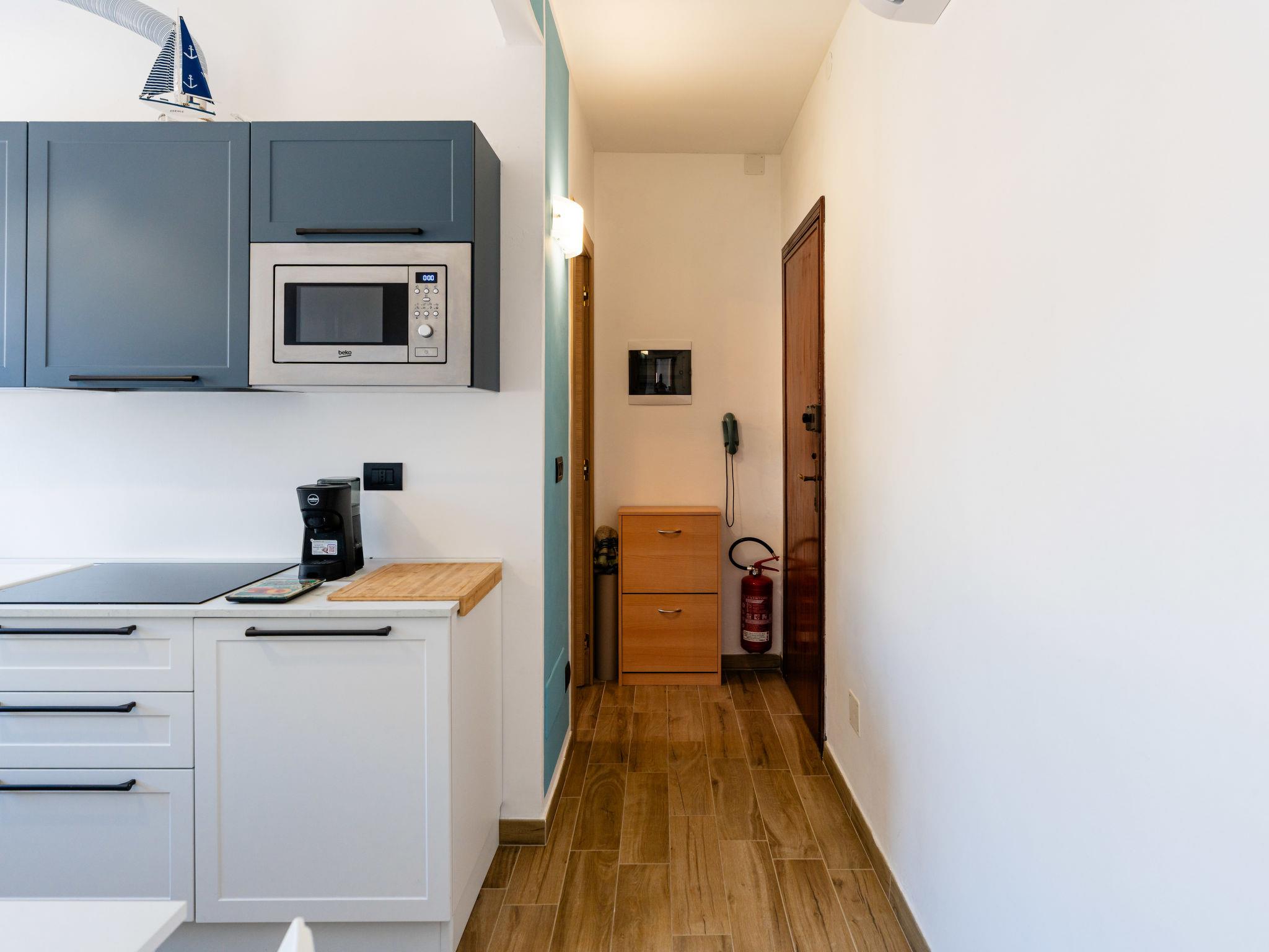 "Tra le onde", 1-room apartment 40 m2 on 3rd floor. Bright, fully renovated in 2025, tasteful and cosy furnishings: 1 room with 1 bed (80 cm, length 200 cm), 1 double bed (1 x 160 cm, length 200 cm), 1 pull-out bed and satellite TV. Exit to the balcony. Kitchen (4 induction hot plates, microwave, freezer, electric coffee machine) with dining table. Shower/bidet/WC. Air-conditioning, forced-air heating. Heating available only from 15.11. to 31.03. Balcony 6 m2. Panoramic view of the mountains and the resort. Facilities: washing machine, hair dryer. Internet (WiFi, free). Please note: smoke alarm, fire extinguisher. IT009024C22RMSUO2U
