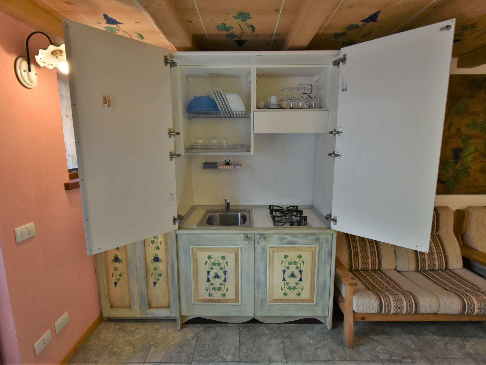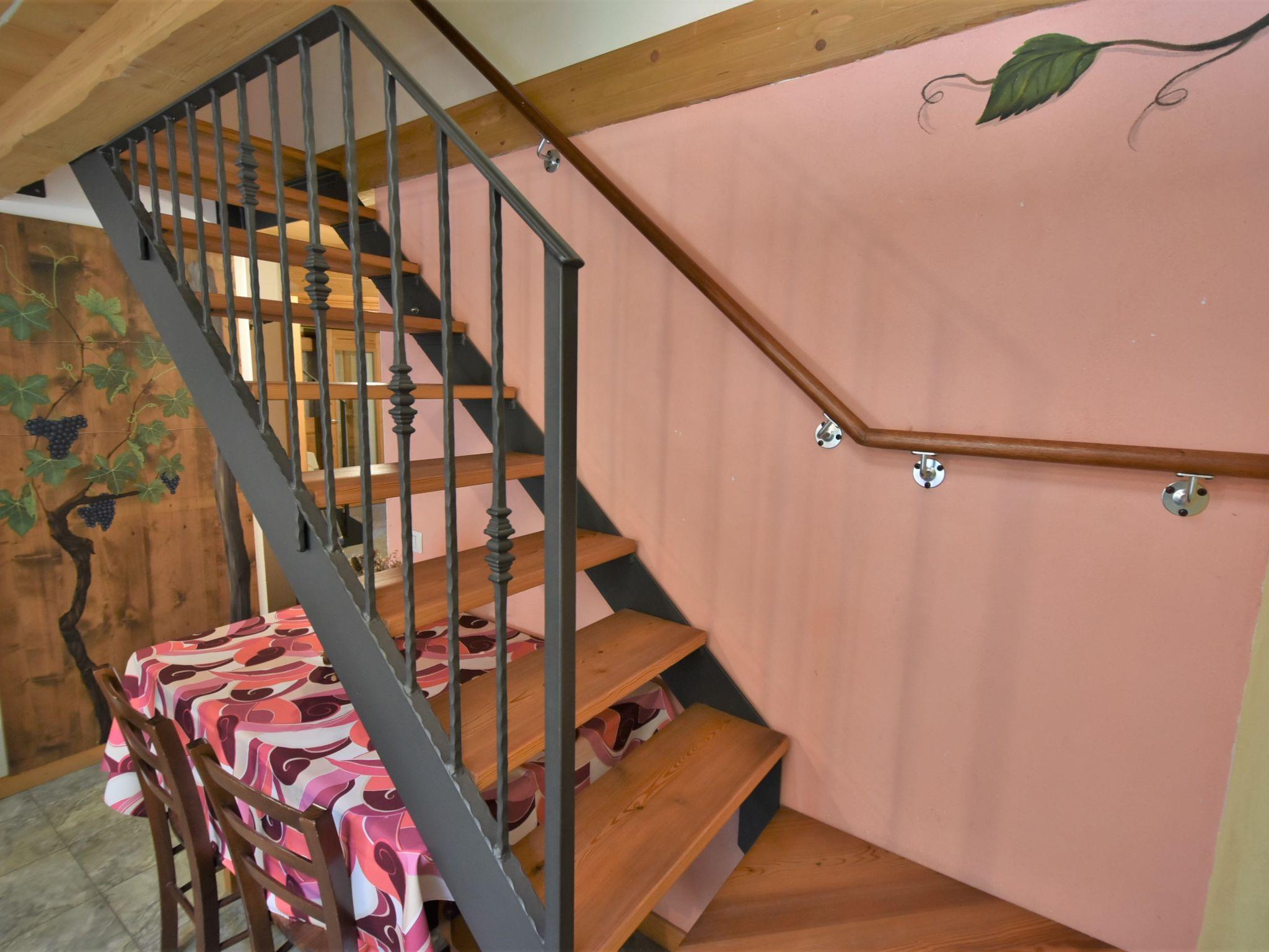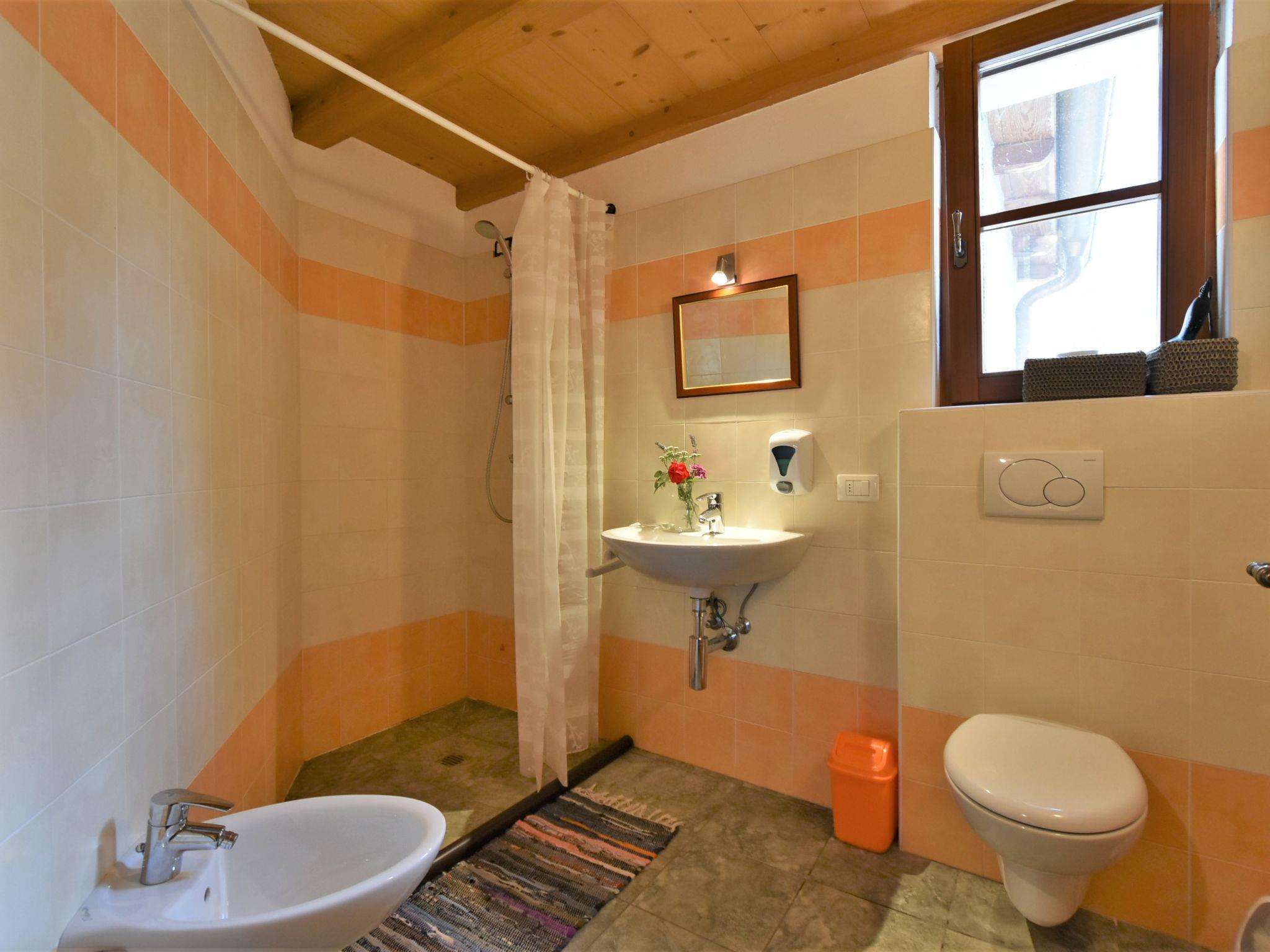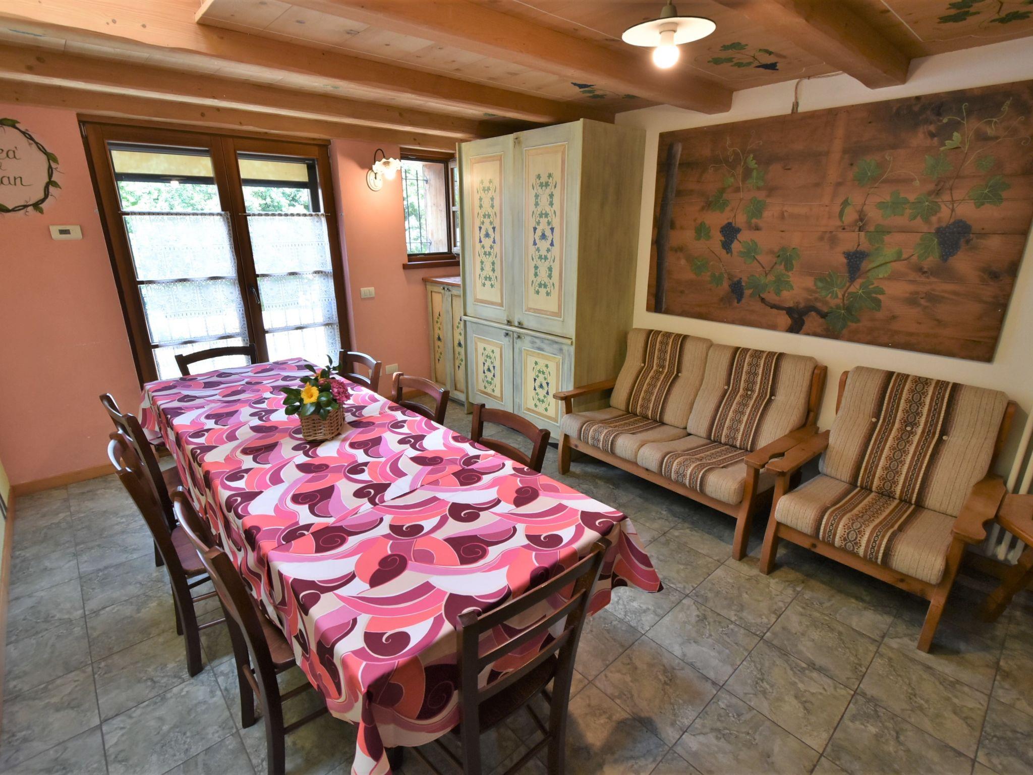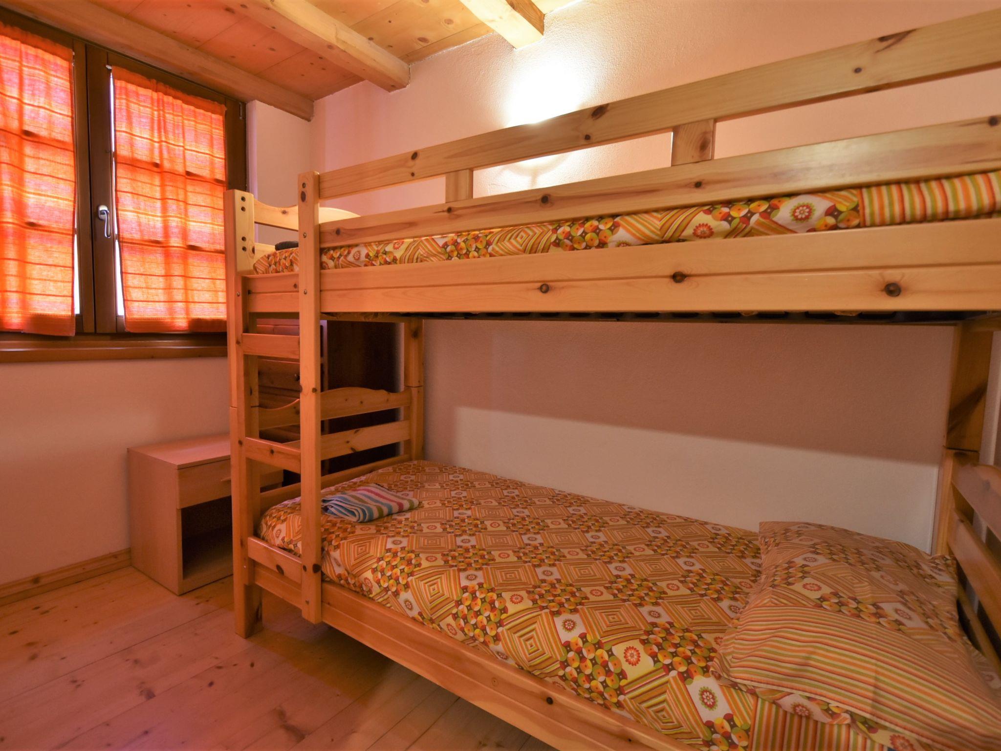 "La Cà del Pian", 3-room apartment 45 m2 on 2 levels on 1st floor. Partly with sloping ceilings, simple and practical furnishings: large living/dining room with dining table and TV (flat screen), air conditioning. 1 room with 1 x 2 bunk beds. Small kitchenette (2 gas rings, toaster, kettle, microwave). Shower/bidet/WC. Upper floor: 1 room with sloping ceilings, ceiling height 130 - 235 cm with 1 bed, 1 double bed and air conditioning. Heating. Facilities: children's high chair, baby cot, hair dryer. Internet (WiFi, free). Suitable for families. Maximum 1 pet/ dog allowed. IT014054B57TJMZEZ5
