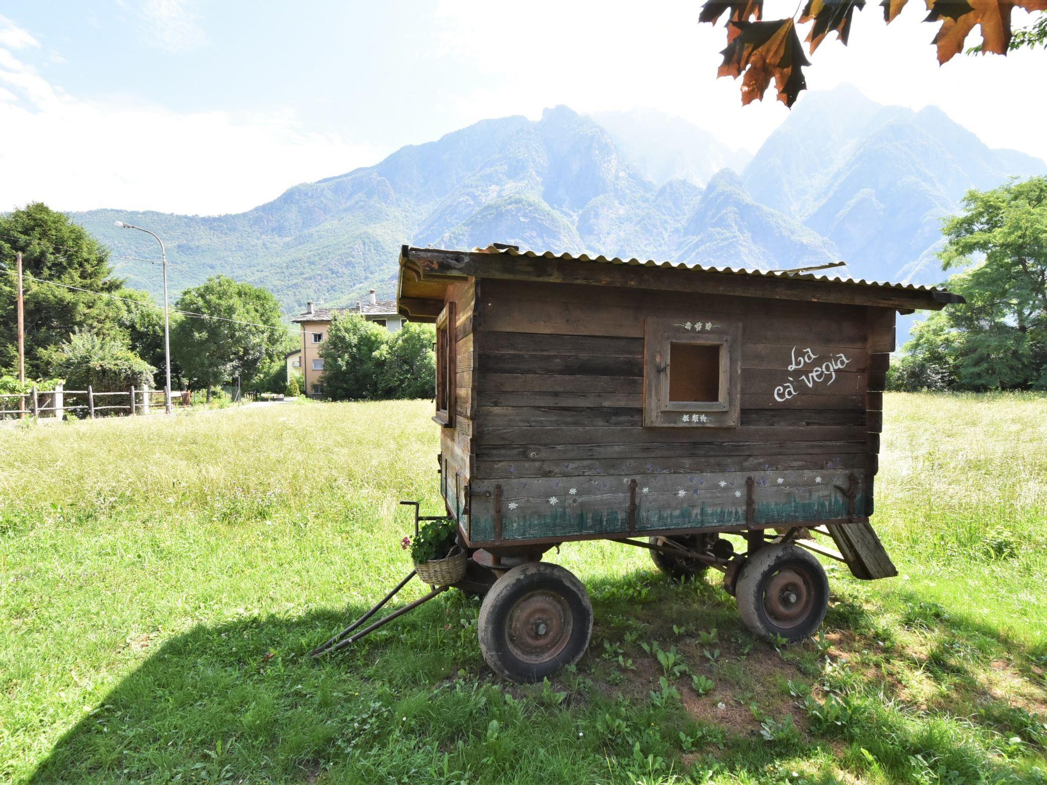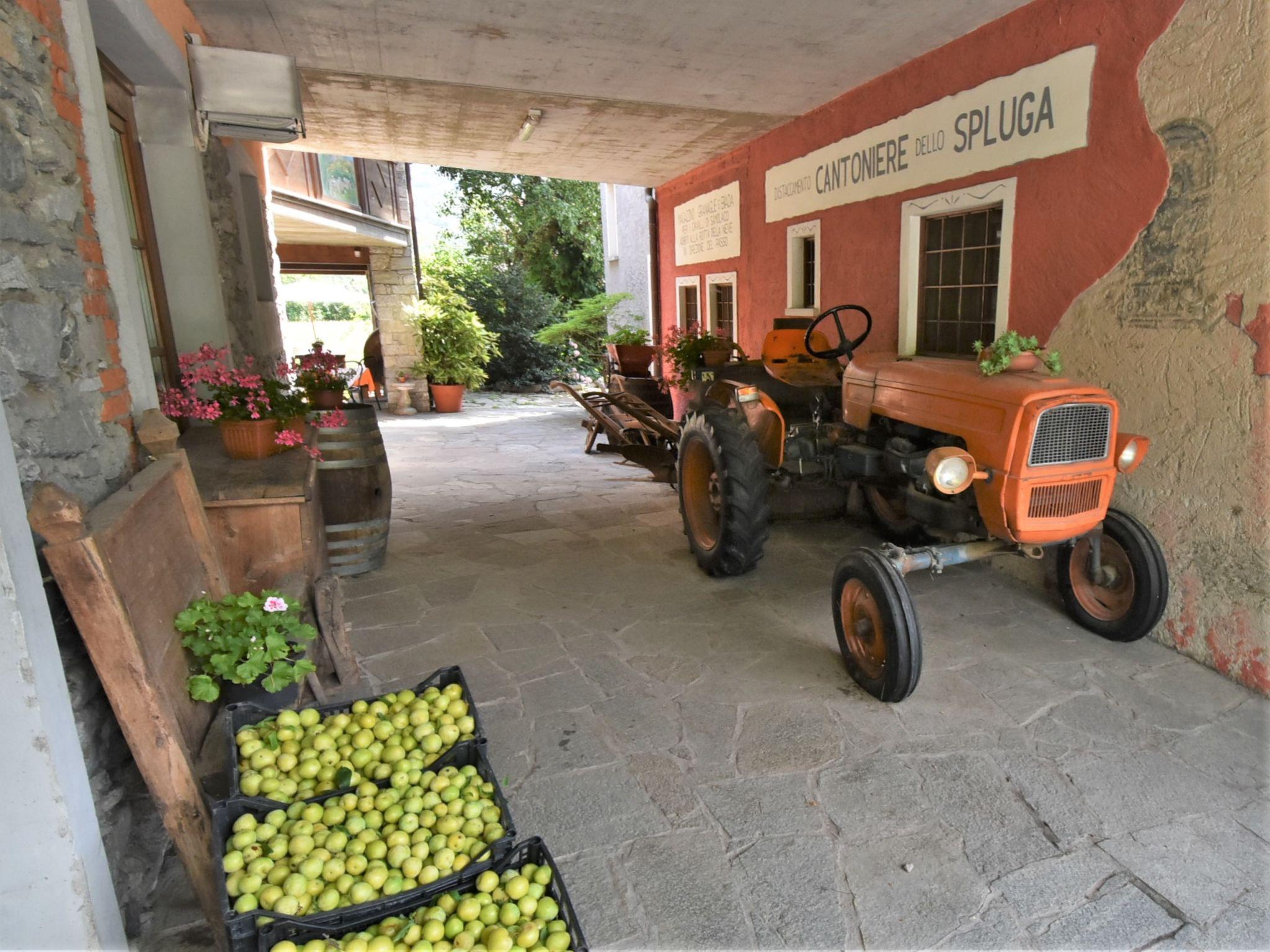 Agriturismo "La Cà Vegia", 300 m a.s.l., 3 storeys, surrounded by fields. 4 apartments in the property. In the hamlet San Cassiano 7 km from the centre of Chiavenna, 29 km from the centre of Madesimo, in a quiet, sunny position, 9 km from the lake, 20 km from the skiing area. For shared use: large garden with lawn and flowers. Pergola, garden furniture, barbecue house. In the complex: storage room for bicycles, storage room for skis. Available: bicycles, children's bicycles. Breakfast possible on request (extra). Parking at the house. E-charging station. Supermarket, restaurant, bar 600 m, bus stop 650 m, railway station "San Cassiano Valchiavenna" 700 m. Nearby attractions: Cascate della Boggia 4 km, Cascate dell' Acquafraggia 10 km, Passo di Maloja (CH) 35 km, Silvaplana (CH) 50 km, Saint Moritz (CH) 54 km. Well-known ski regions can easily be reached: Campodolcino 21 km, Madesimo 29 km. Well-known lakes can easily be reached: Lago di Mezzola 9 km, Lago di Como 19 km. Hiking paths: Sentiero Storico di Fondovalle, Traversata dei Monti, Sentiero Panoramico di Bregaglia. Please note: car recommended. Suitable for families. On the estate animal husbandry. Local sale of farm products. The owner lives on the same property.