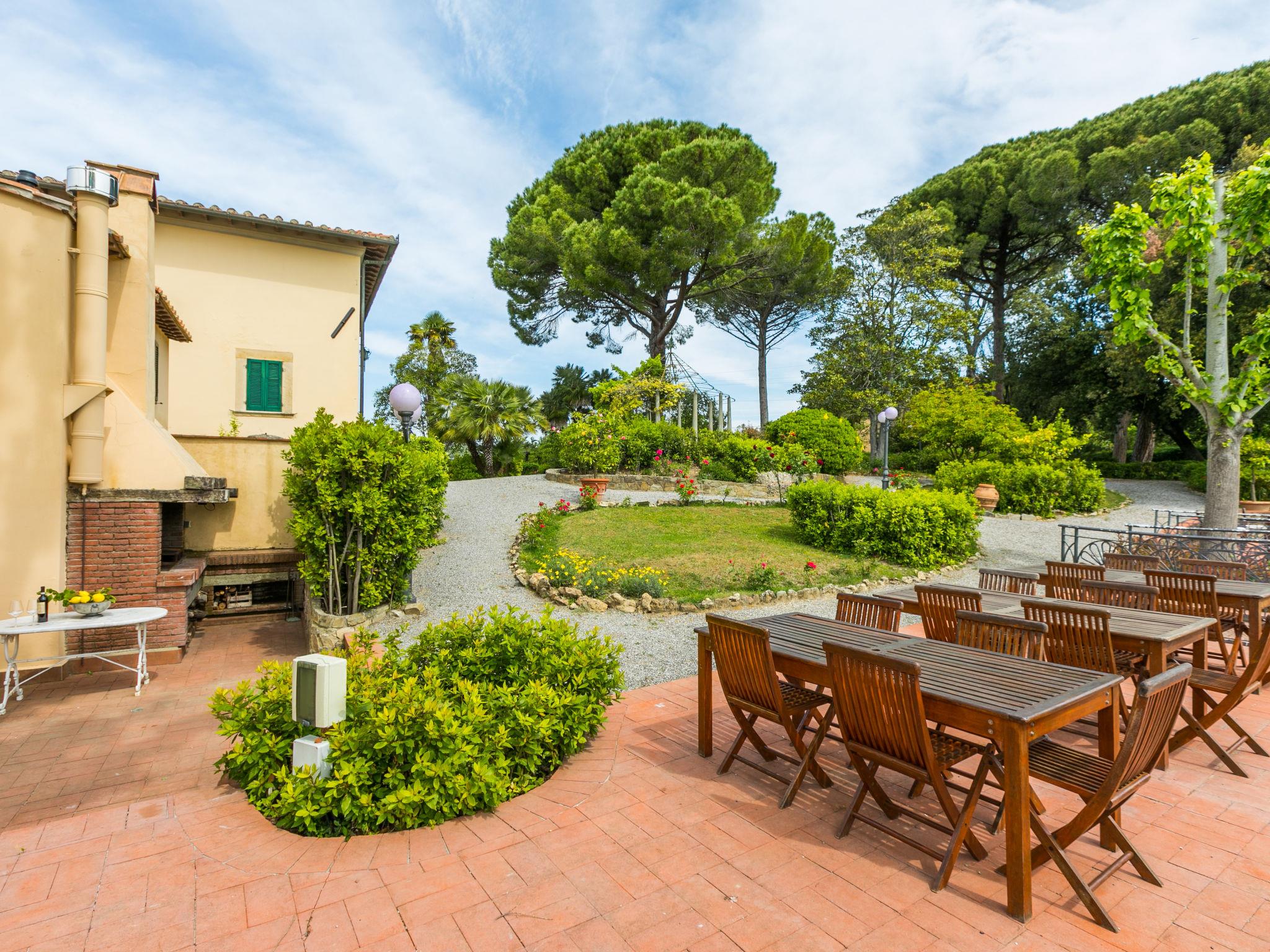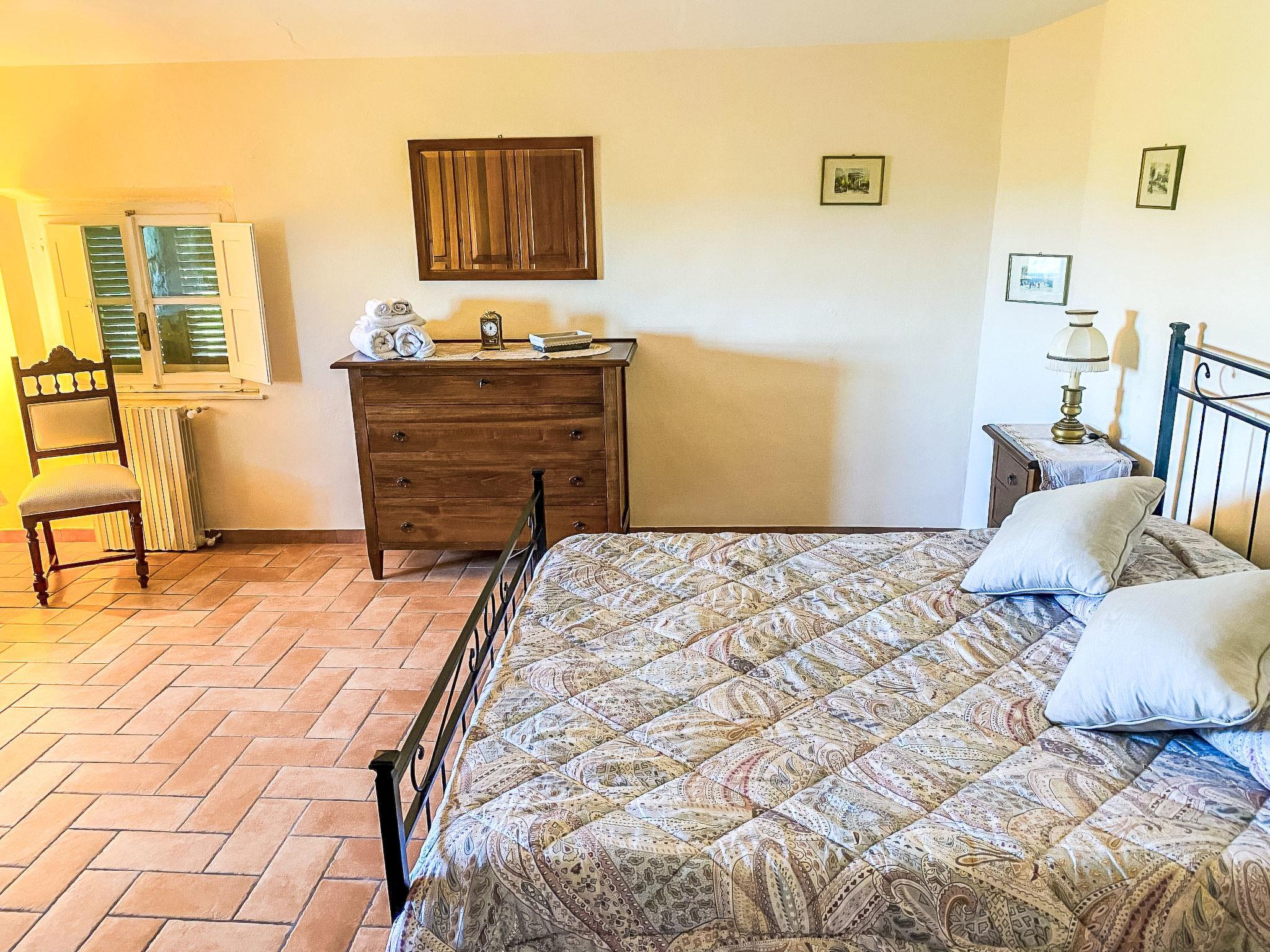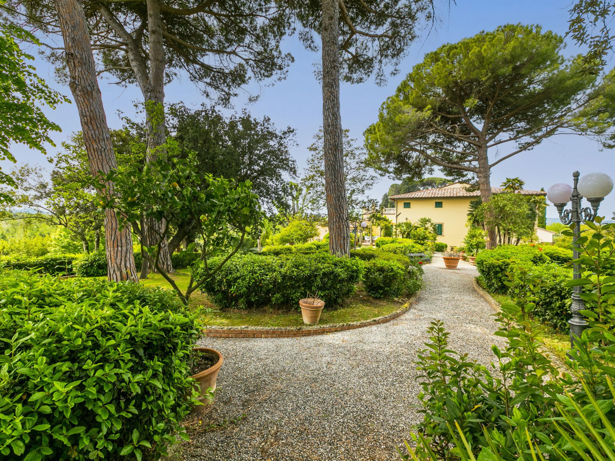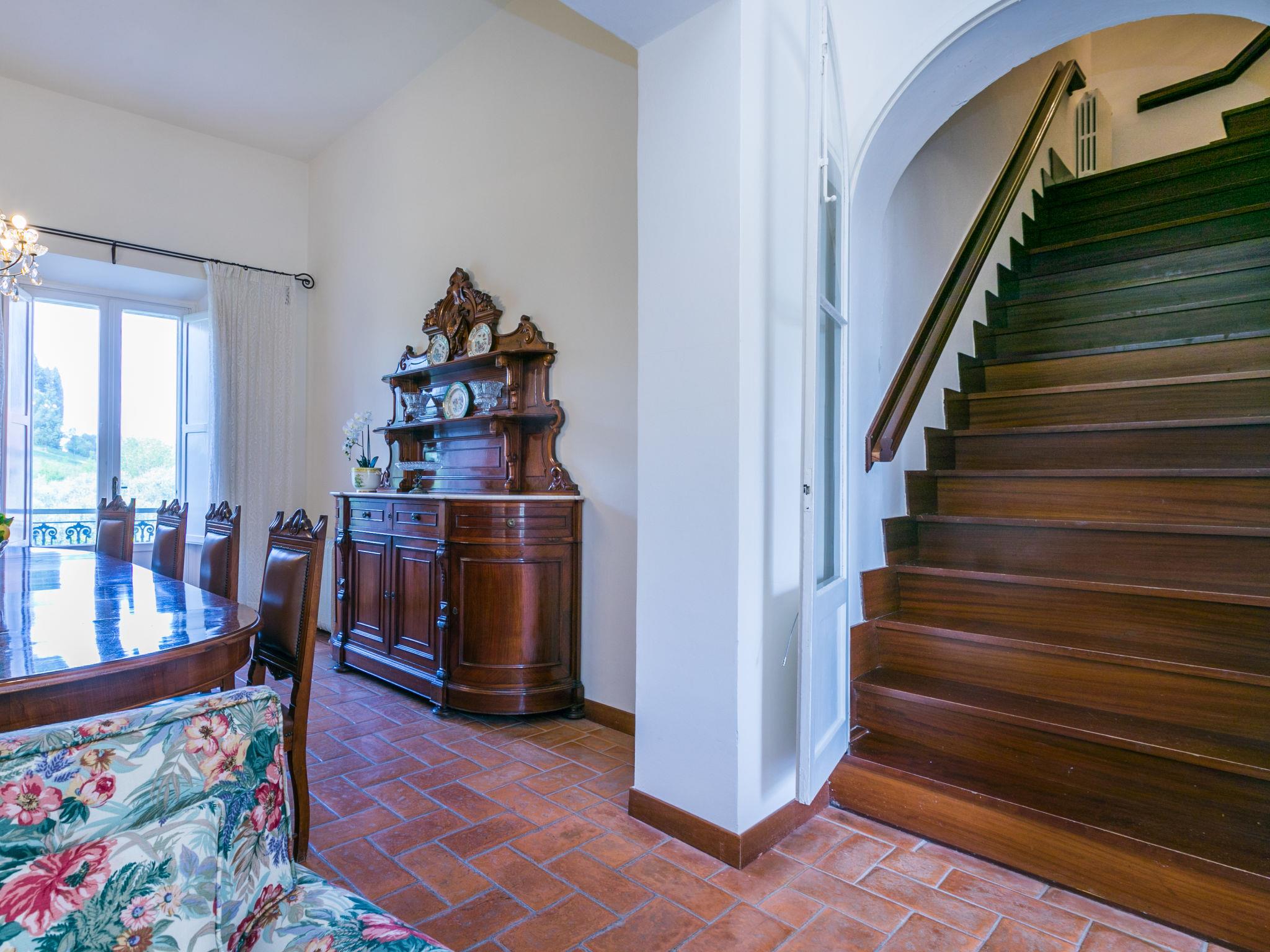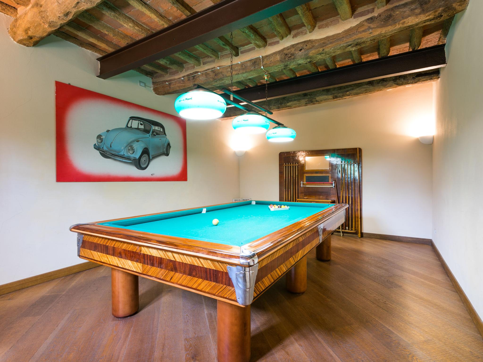 Exclusive and elegant 19th century property located in the heart of the Tuscan hills. Historical country house "Villa La Guardia Vecchia", detached, built in 1700, renovated, surrounded by meadows. 700 m from the centre of Crespina Lorenzana, 30 km from the centre of Pisa, 33 km from the centre of Livorno, in a secluded, quiet, sunny position on top of a hill, 30 km from the sea, in the countryside. Private: park (fenced), flowers and trees, beautiful garden to relax, swimming pool (15 x 7 m, depth 120 - 275 cm, seasonal availability: 01.May. - 01.Oct.). Shower/WC in the pool area, tennis (1 x hard court), table tennis, garden furniture, barbecue. In the house: billiard table, heating to be paid on the spot, heating available only from 01.Nov. - 15.Apr.. Parking on the premises. Restaurant 1 km, bus stop 500 m, sandy beach "Castiglioncello" 35 km, rocky beach "Calafuria" 38 km, thermal baths "Cascina Terme" 10 km. Golf course (9 hole) 30 km, riding stable 500 m. Nearby attractions: Villa Belvedere 500 m, Certosa di Calci 23 km, Lajatico 29 km, Volterra 46 km, San Gimignano 55 km, Lucca 63 km. Please note: car recommended. Suitable for families. Groups of teenagers on request only. Suitable for events. The villa is surrounded by a splendid park with an Italian garden, inside which there are benches, gazebos, fruit trees, a splendid swimming pool and a tennis court. This Villa, an ideal place to spend exclusive relaxing holidays, also offers the possibility of hosting events, weddings and meetings. Adjacent to the villa, with an independent entrance, is the caretaker's house.