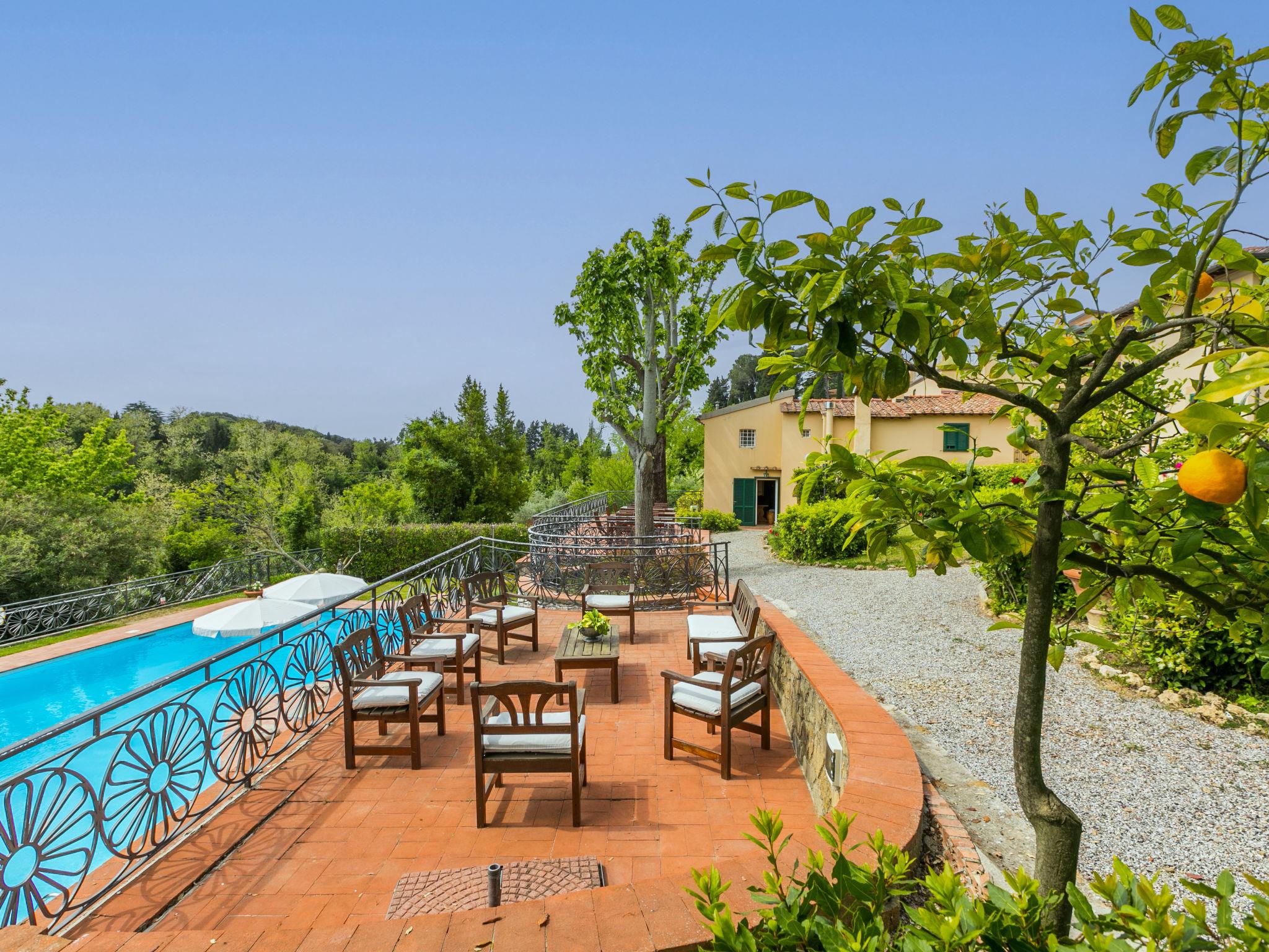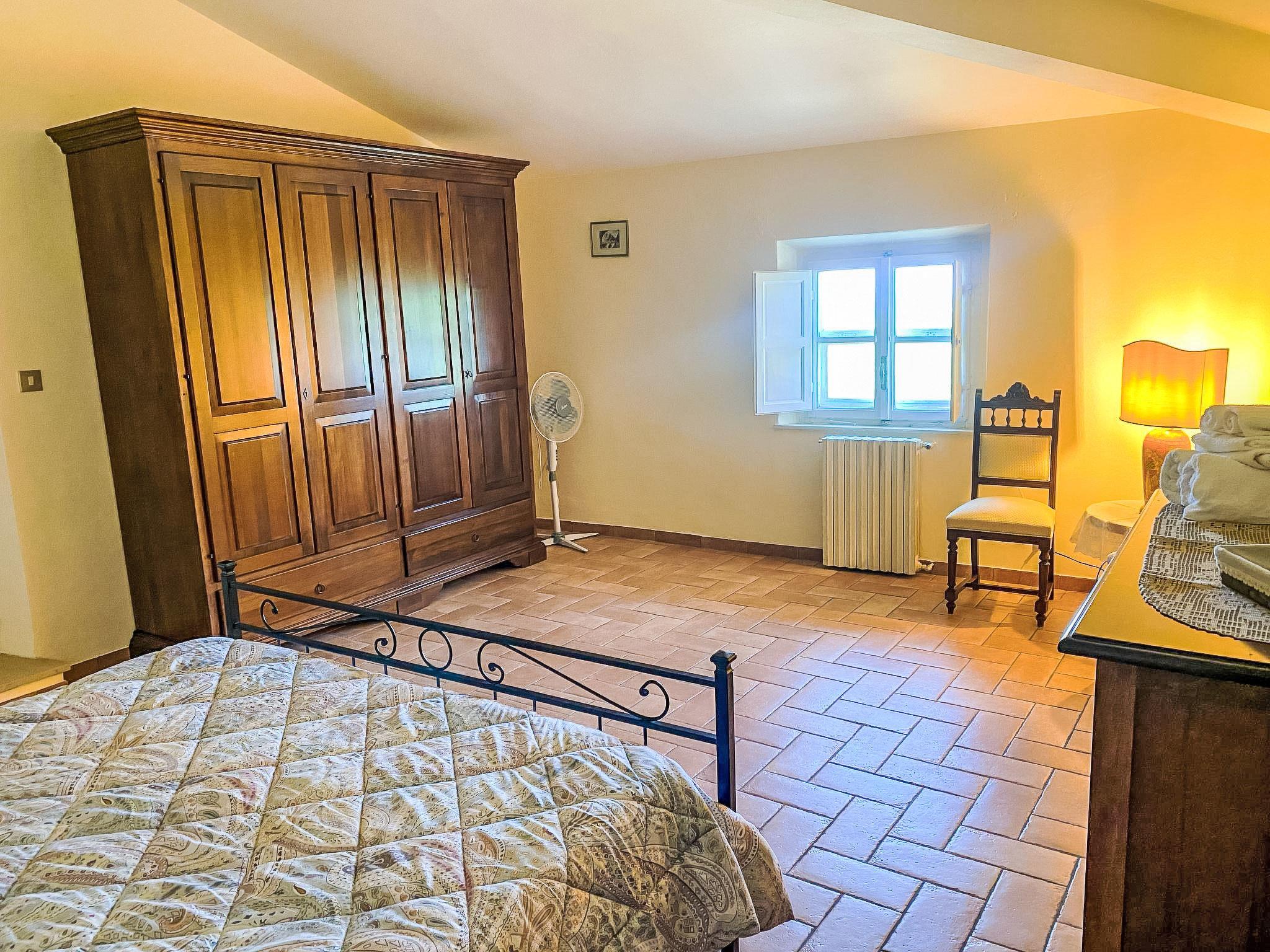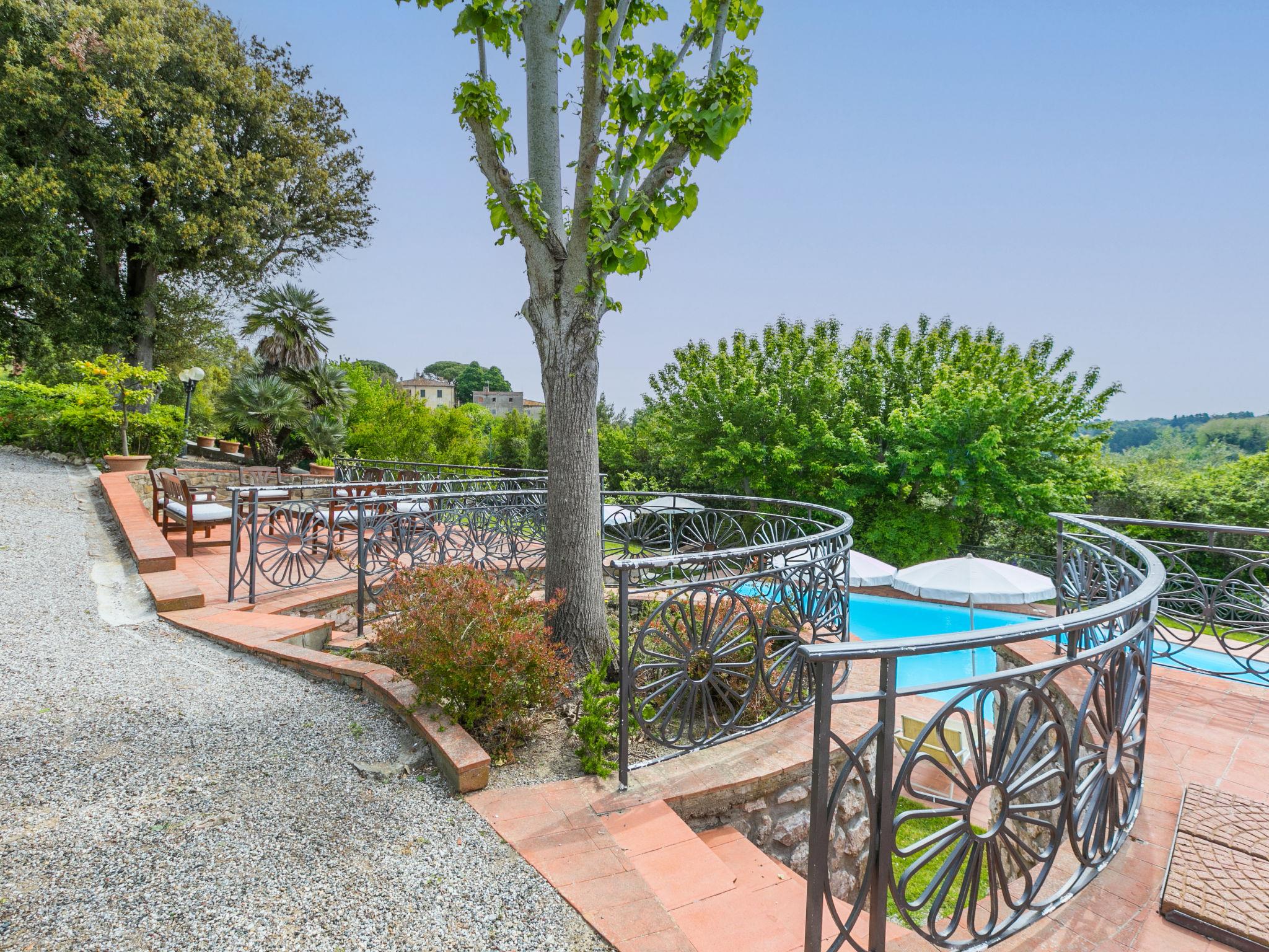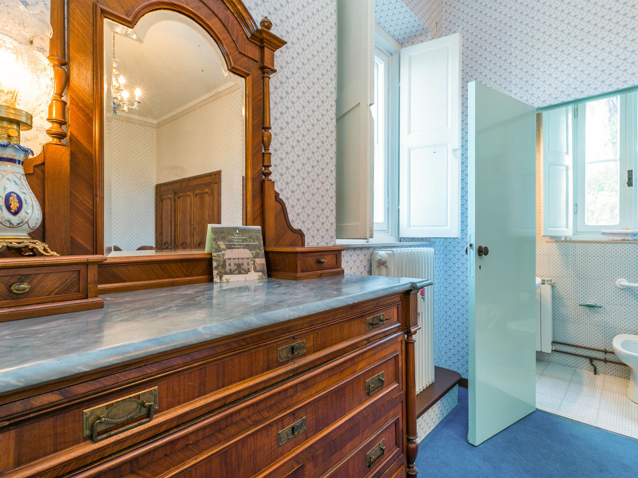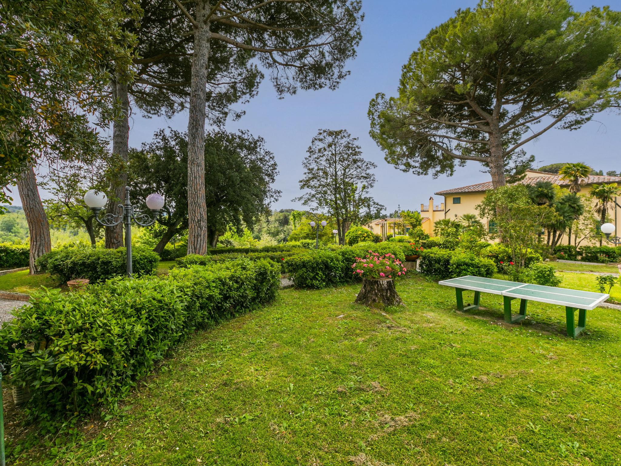 Exclusive and elegant 19th century property located in the heart of the Tuscan hills. Historical country house "Villa La Guardia Vecchia", detached, built in 1700, renovated, surrounded by meadows. 700 m from the centre of Crespina Lorenzana, 30 km from the centre of Pisa, 33 km from the centre of Livorno, in a secluded, quiet, sunny position on top of a hill, 30 km from the sea, in the countryside. Private: park (fenced), flowers and trees, beautiful garden to relax, swimming pool (15 x 7 m, depth 120 - 275 cm, seasonal availability: 01.May. - 01.Oct.). Shower/WC in the pool area, tennis (1 x hard court), table tennis, garden furniture, barbecue. In the house: billiard table, heating to be paid on the spot, heating available only from 01.Nov. - 15.Apr.. Parking on the premises. Restaurant 1 km, bus stop 500 m, sandy beach "Castiglioncello" 35 km, rocky beach "Calafuria" 38 km, thermal baths "Cascina Terme" 10 km. Golf course (9 hole) 30 km, riding stable 500 m. Nearby attractions: Villa Belvedere 500 m, Certosa di Calci 23 km, Lajatico 29 km, Volterra 46 km, San Gimignano 55 km, Lucca 63 km. Please note: car recommended. Suitable for families. Groups of teenagers on request only. Suitable for events. The villa is surrounded by a splendid park with an Italian garden, inside which there are benches, gazebos, fruit trees, a splendid swimming pool and a tennis court. This Villa, an ideal place to spend exclusive relaxing holidays, also offers the possibility of hosting events, weddings and meetings. Adjacent to the villa, with an independent entrance, is the caretaker's house.