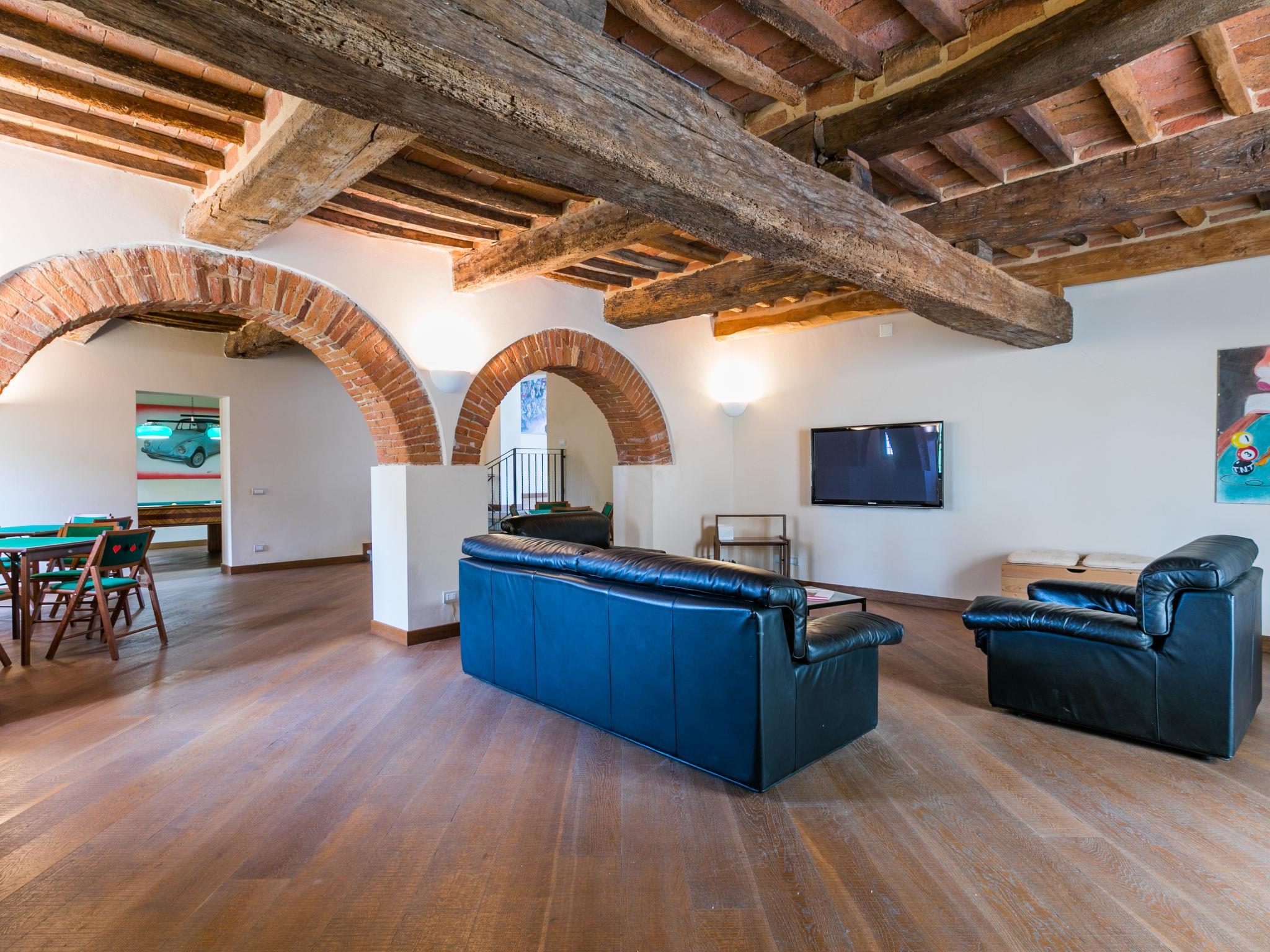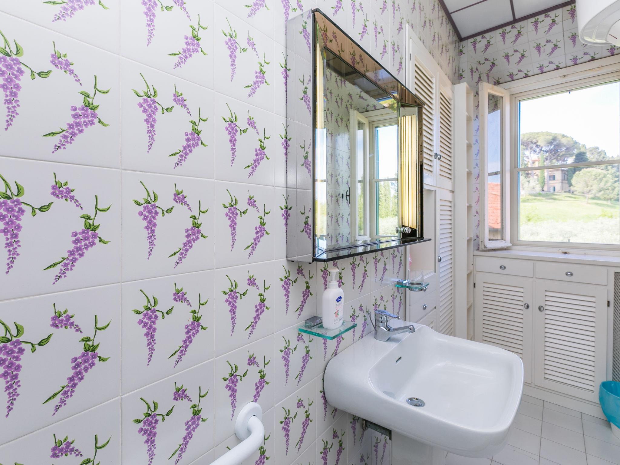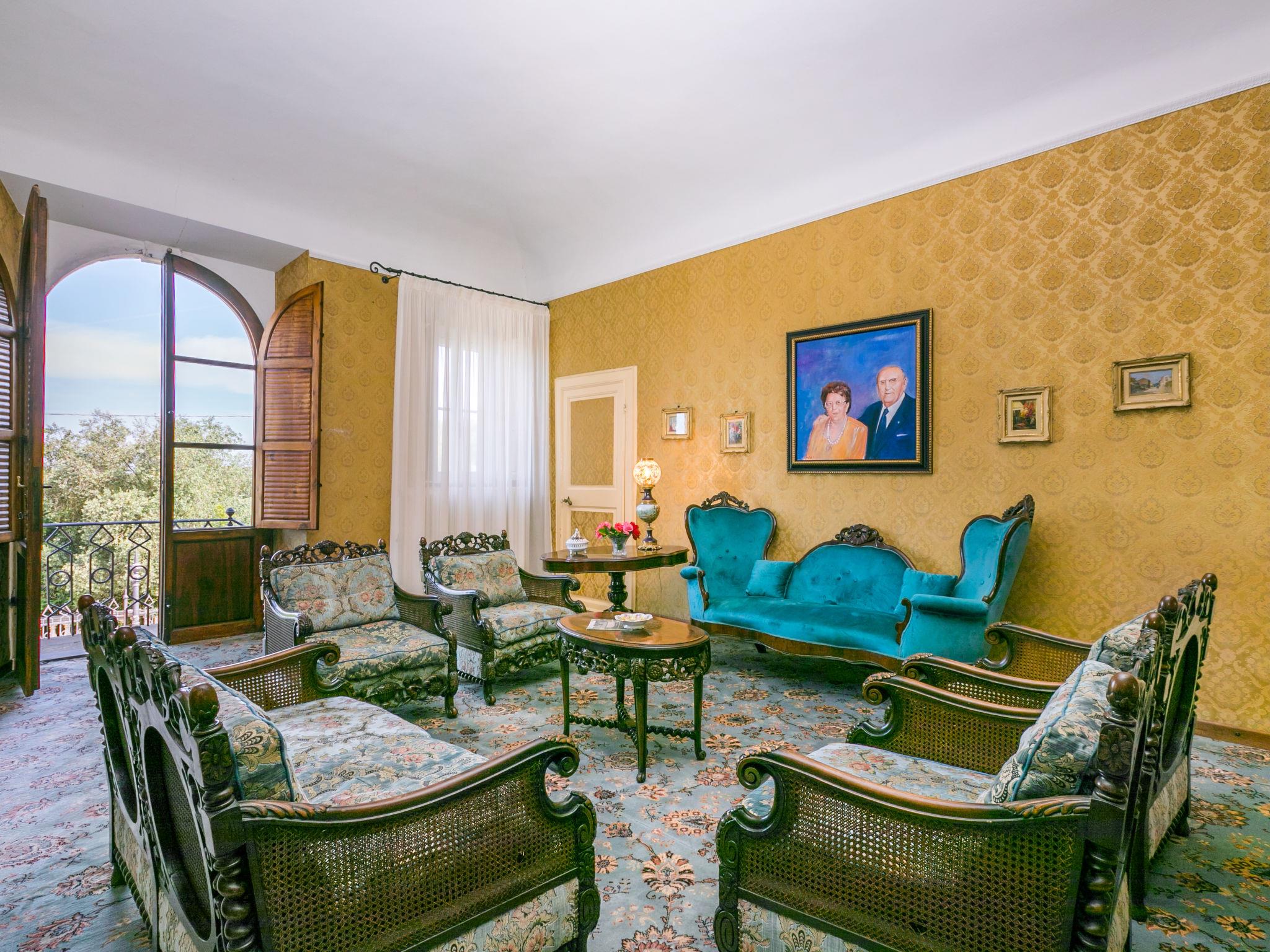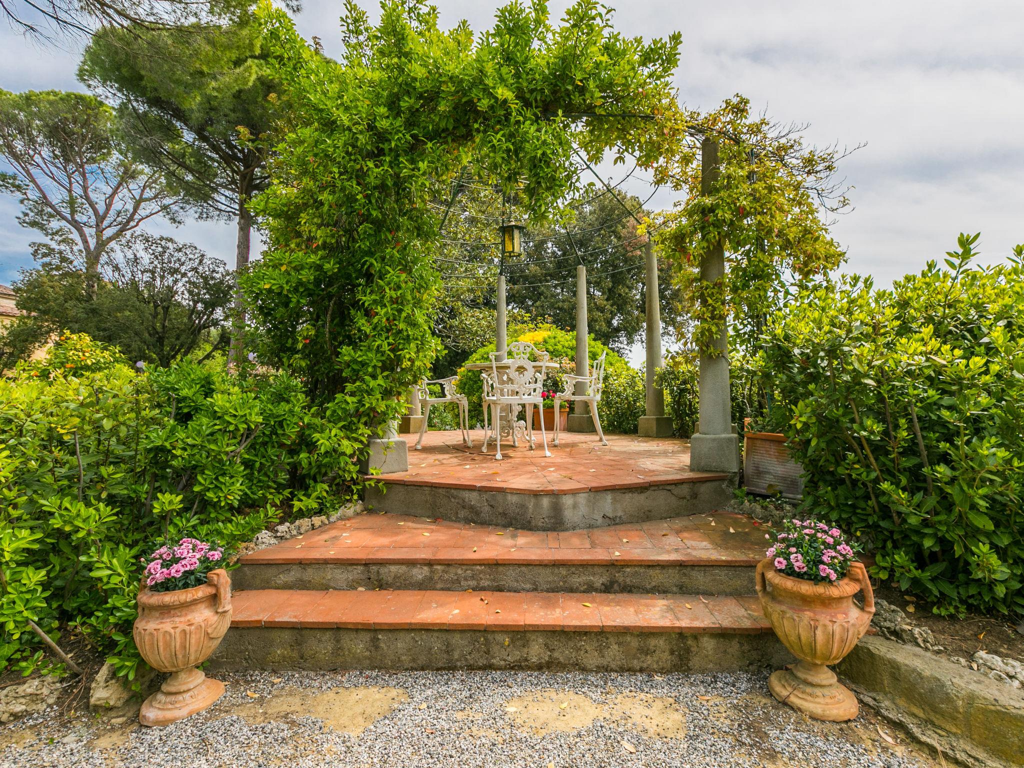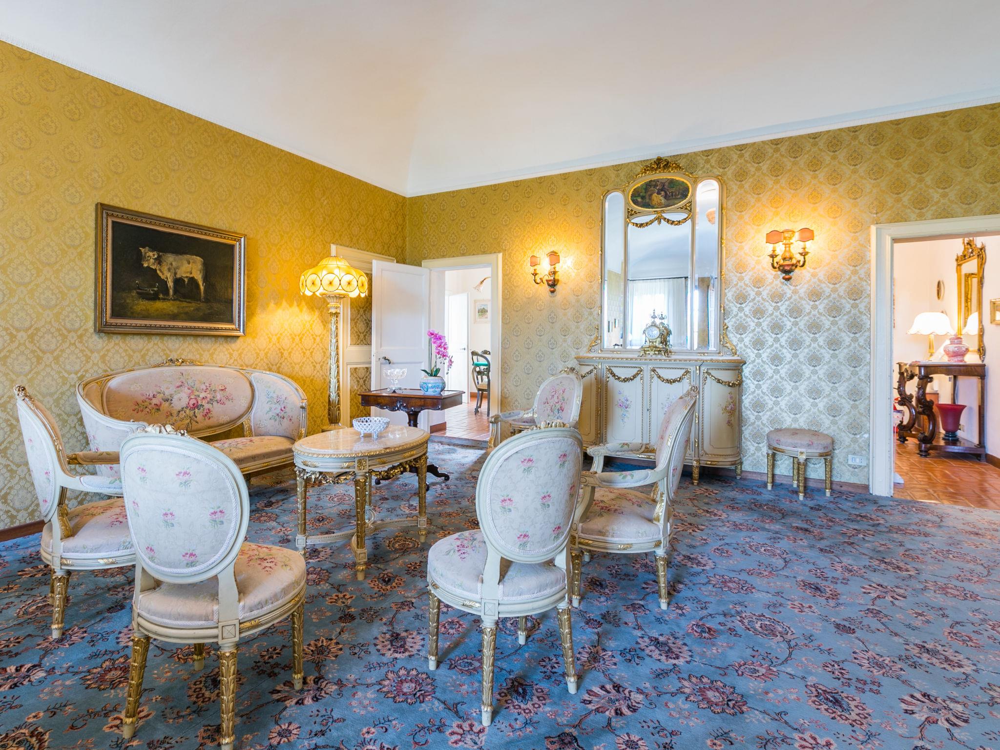 Exclusive and elegant 19th century property located in the heart of the Tuscan hills. Historical country house "Villa La Guardia Vecchia", detached, built in 1700, renovated, surrounded by meadows. 700 m from the centre of Crespina Lorenzana, 30 km from the centre of Pisa, 33 km from the centre of Livorno, in a secluded, quiet, sunny position on top of a hill, 30 km from the sea, in the countryside. Private: park (fenced), flowers and trees, beautiful garden to relax, swimming pool (15 x 7 m, depth 120 - 275 cm, seasonal availability: 01.May. - 01.Oct.). Shower/WC in the pool area, tennis (1 x hard court), table tennis, garden furniture, barbecue. In the house: billiard table, heating to be paid on the spot, heating available only from 01.Nov. - 15.Apr.. Parking on the premises. Restaurant 1 km, bus stop 500 m, sandy beach "Castiglioncello" 35 km, rocky beach "Calafuria" 38 km, thermal baths "Cascina Terme" 10 km. Golf course (9 hole) 30 km, riding stable 500 m. Nearby attractions: Villa Belvedere 500 m, Certosa di Calci 23 km, Lajatico 29 km, Volterra 46 km, San Gimignano 55 km, Lucca 63 km. Please note: car recommended. Suitable for families. Groups of teenagers on request only. Suitable for events. The villa is surrounded by a splendid park with an Italian garden, inside which there are benches, gazebos, fruit trees, a splendid swimming pool and a tennis court. This Villa, an ideal place to spend exclusive relaxing holidays, also offers the possibility of hosting events, weddings and meetings. Adjacent to the villa, with an independent entrance, is the caretaker's house.