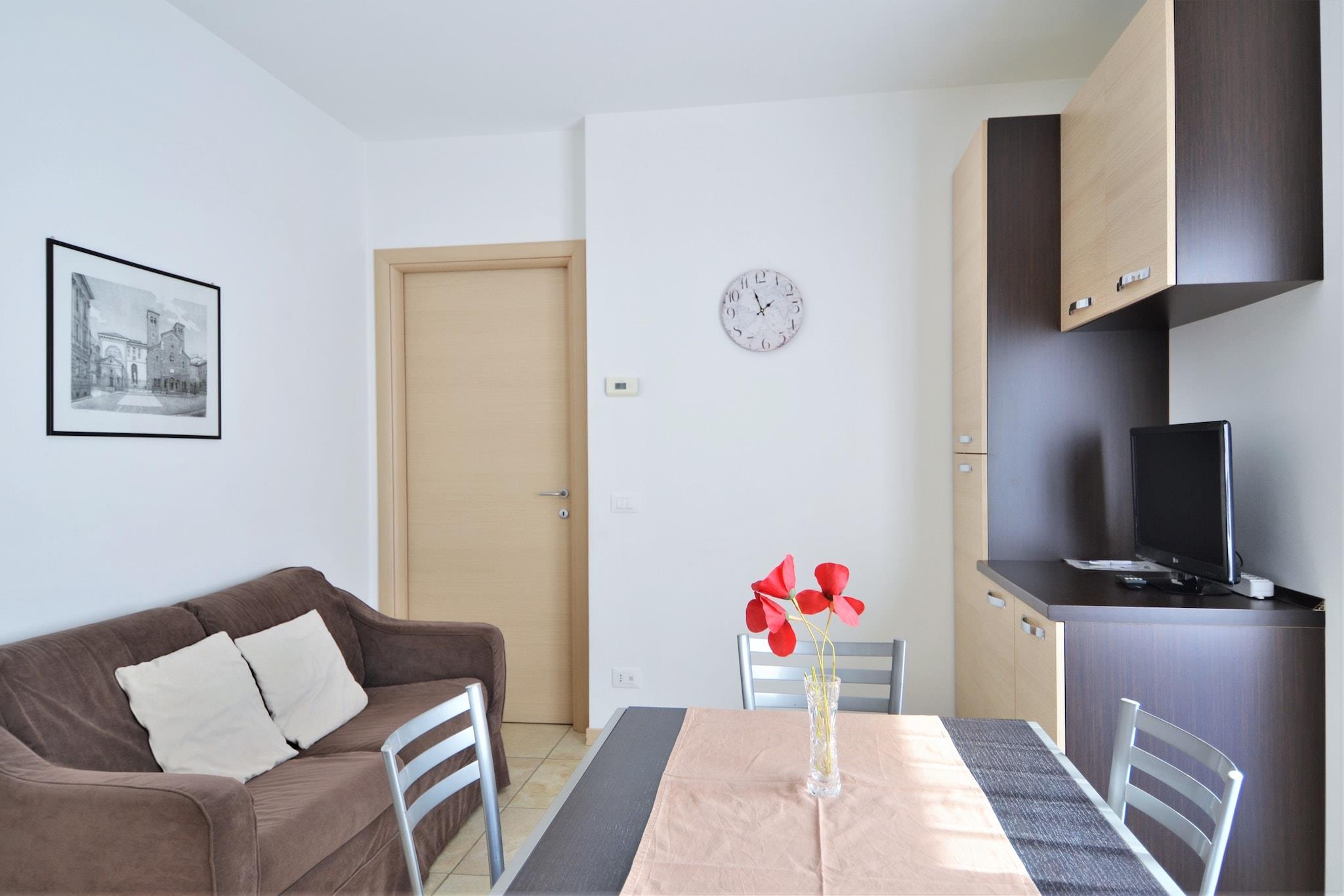Charmig bas vid sjön Njut av en avkopplande semester i denna mysiga lägenhet i Residence Giuliana, Dervio, perfekt för en grupp på fyra personer. Bara 500 meter från sjön och tågstationen, idealiskt belägen för att upptäcka den naturliga skönheten och charmen i Lago di Como och närliggande byar som Vestreno och Corenno Plinio. Bekvämt och välutrustat Lägenheten ligger på första våningen och har ett ljust vardagsrum och matsal med en bäddsoffa för en enkelsäng och ett bekvämt sovrum med både en dubbelsäng och en enkelsäng. Det välutrustade köket har ugn, mikrovågsugn, spis, diskmaskin och kyl-frys. En tvättmaskin i badrummet ger extra bekvämlighet. Lokala nöjen och avkoppling Koppla av med en drink på den privata terrassen eller balkongen efter en dag av utforskande. Besök Spiaggia di Dervio för fantastisk sjöutsikt eller promenera längs den berömda leden Sentiero del Viandante. Ät på lokala restauranger, njut av båtturer från färjehamnen eller utforska historiska platser som Torre di Orezia – allt bara några steg bort.