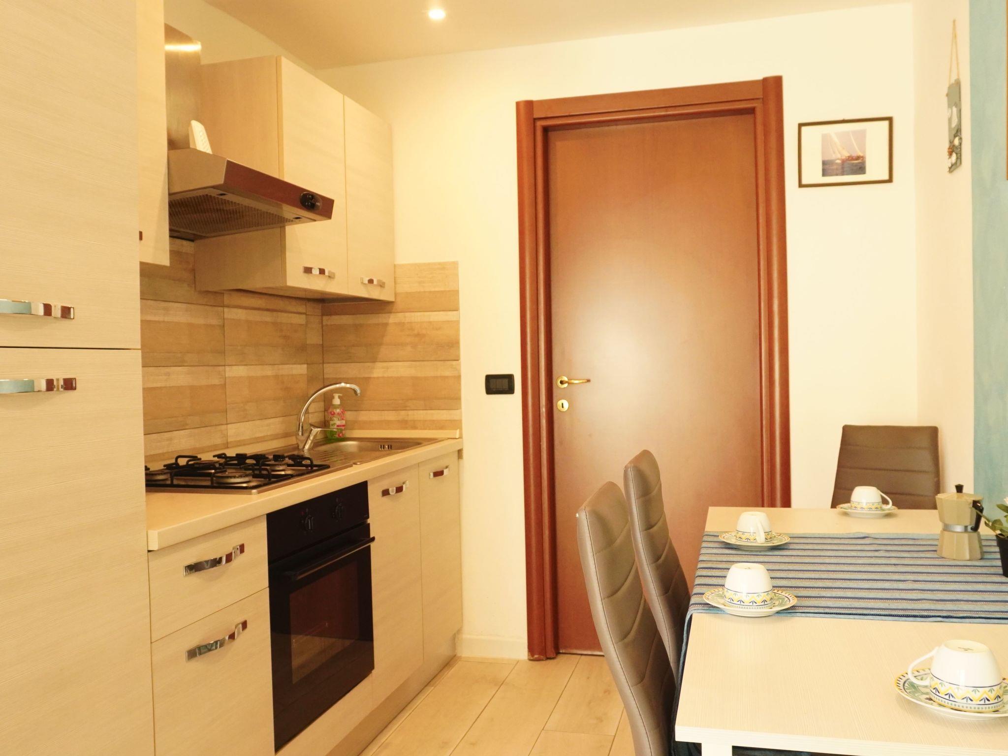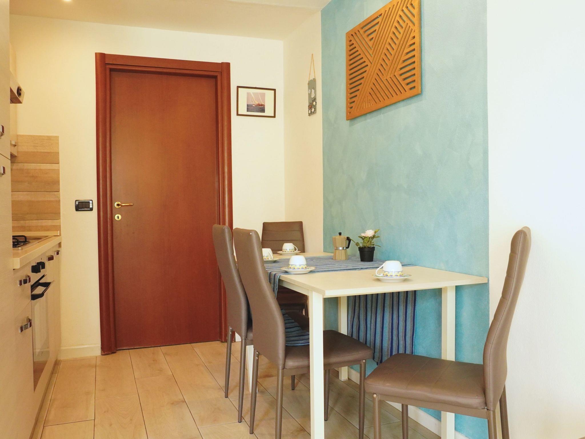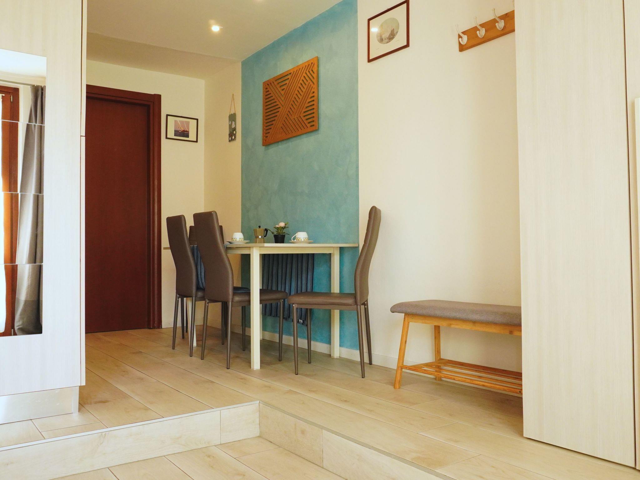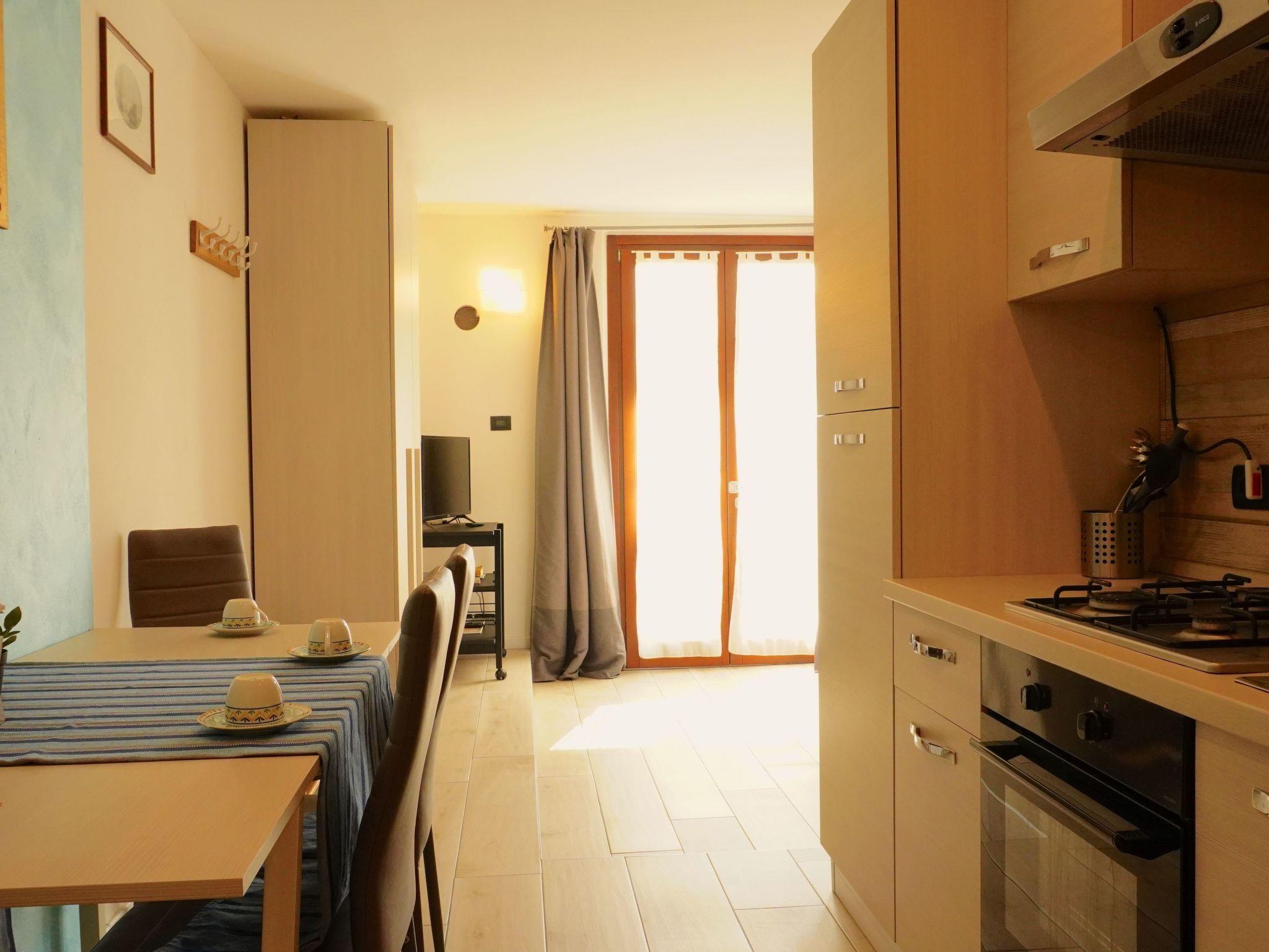 The interior of the studio is designed for maximum comfort and practicality. It is furnished with a double bed and a bunk bed, ideal for accommodating both families and small groups of friends. For those times when you prefer to dine indoors, you will find a practical dining area with a small kitchenette. In addition, the flat boasts a large bathroom with a luxurious corner bath, perfect for relaxing after a busy day.