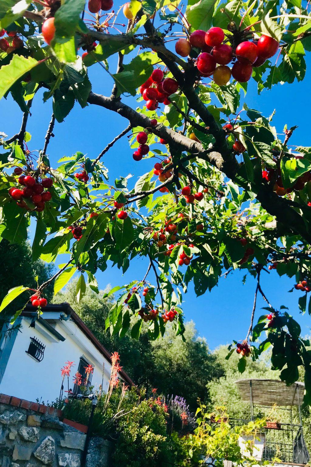 The view from the house sweeps across the olive groves and the valley of Diano Marina to the sea. Guests are also welcome to help themselves to the fruit in the garden, which is organically treated.