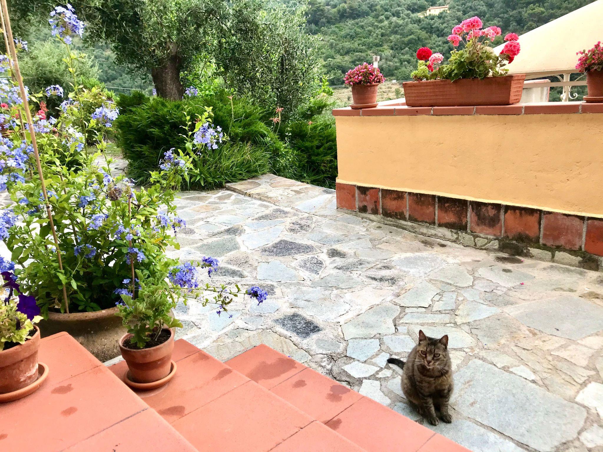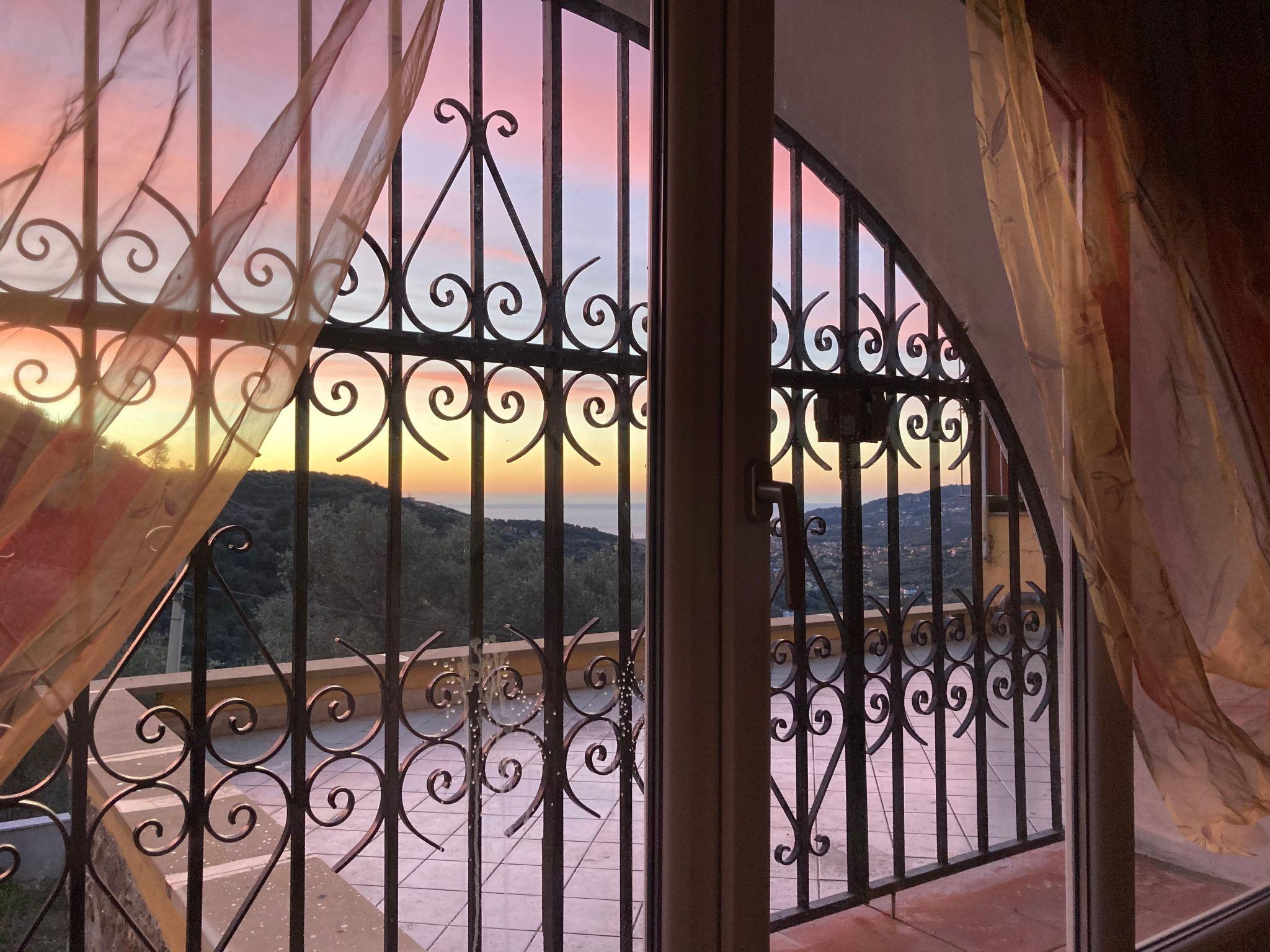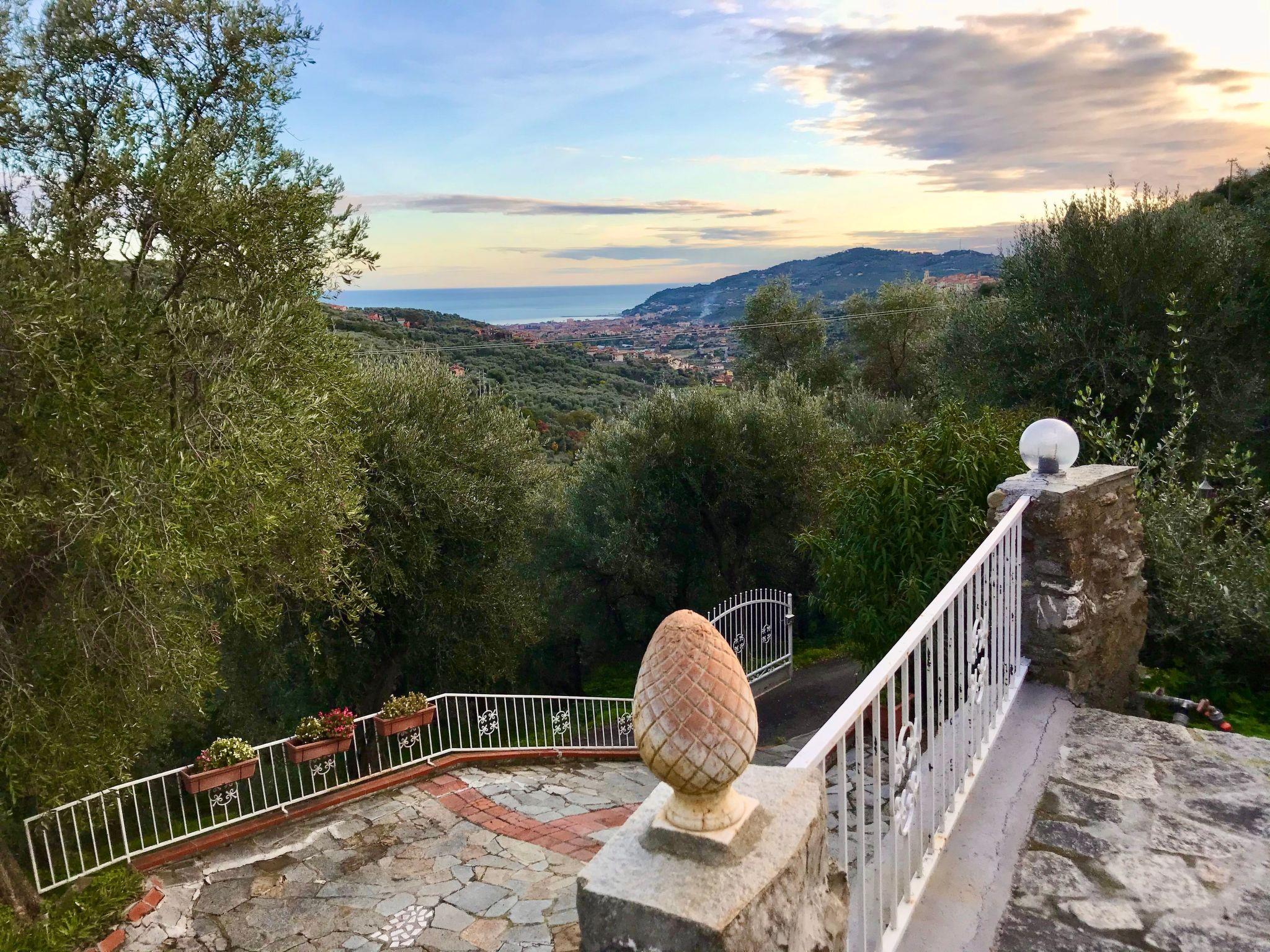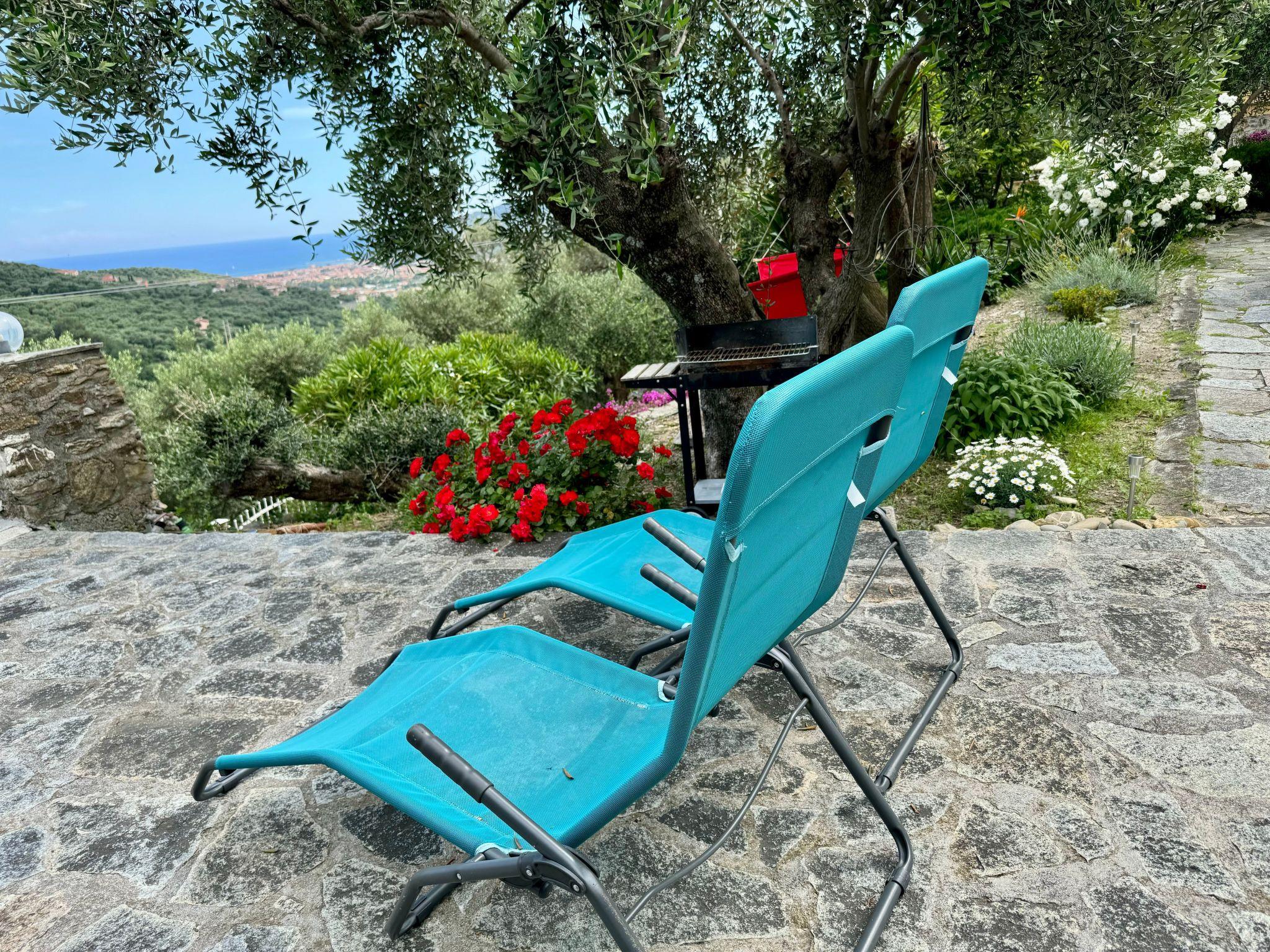 At the separate entrance of the house there is a beautiful subtropical garden with palm trees, oleanders, bouganville and Mediterranean plants and a terrace with a view of the Mediterranean Sea and Diano Marina. There is a barbecue on the terrace.