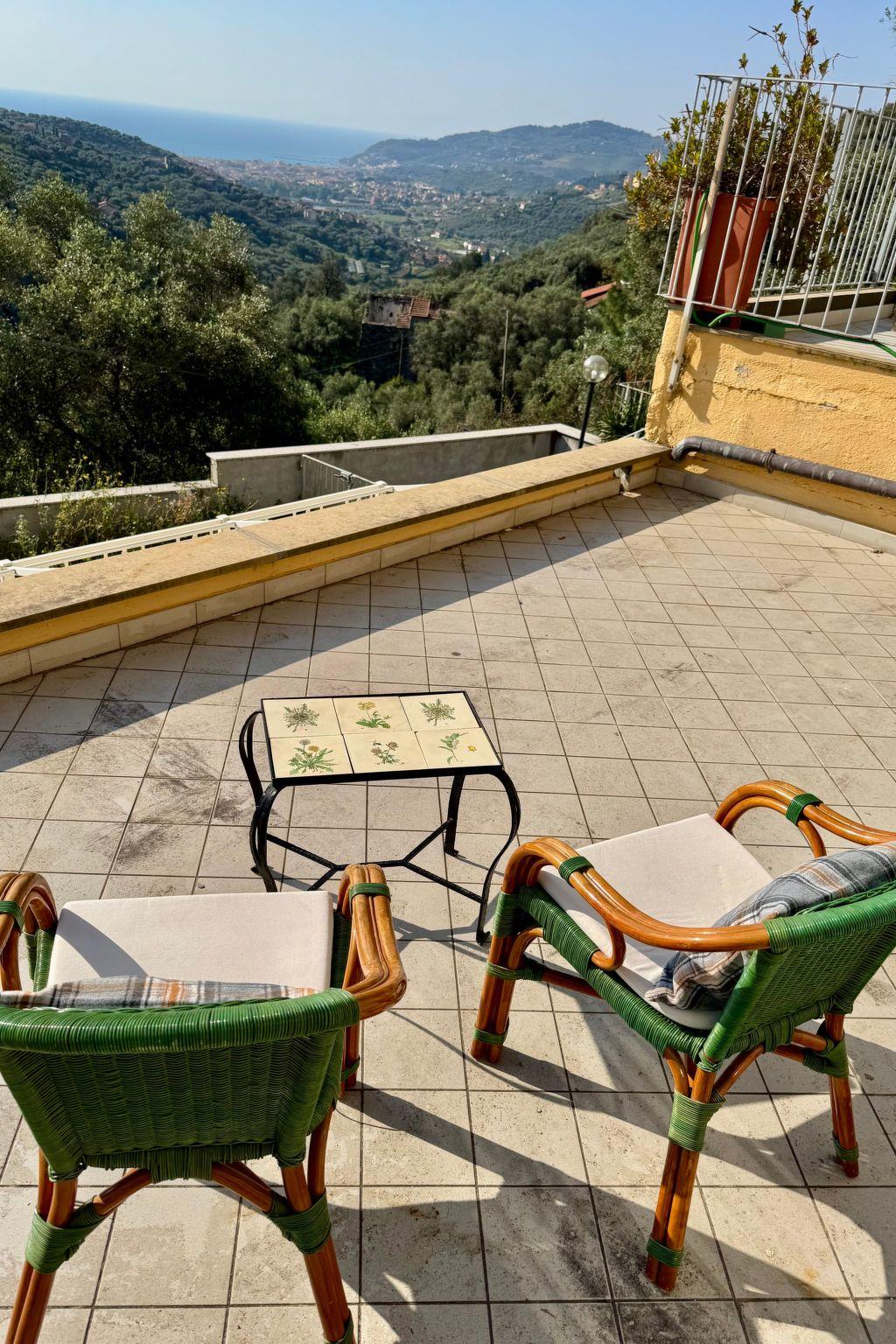 The holiday property is located on the hillside of Diano Marina, approx. 4 km from the sea. The typical Ligurian provincial capital Imperia with its enchanting arcades is 10 km away. Imperia offers many possibilities to eat relaxed in the old fishing harbour. Sanremo is 25 km away and Monte-Carlo and Nice are 45 and 60 km away respectively. Also 6 km away in the other direction is the picturesque village of Cervo and 15 km away is Alassio with its elegant boutiques. A further 80 km away is the Ligurian capital Genoa, which invites you to feast and shop. The railway station which connects all the cities is 3.5 km away. The hinterland offers opportunities for excursions into the impressive Maritime Alps.