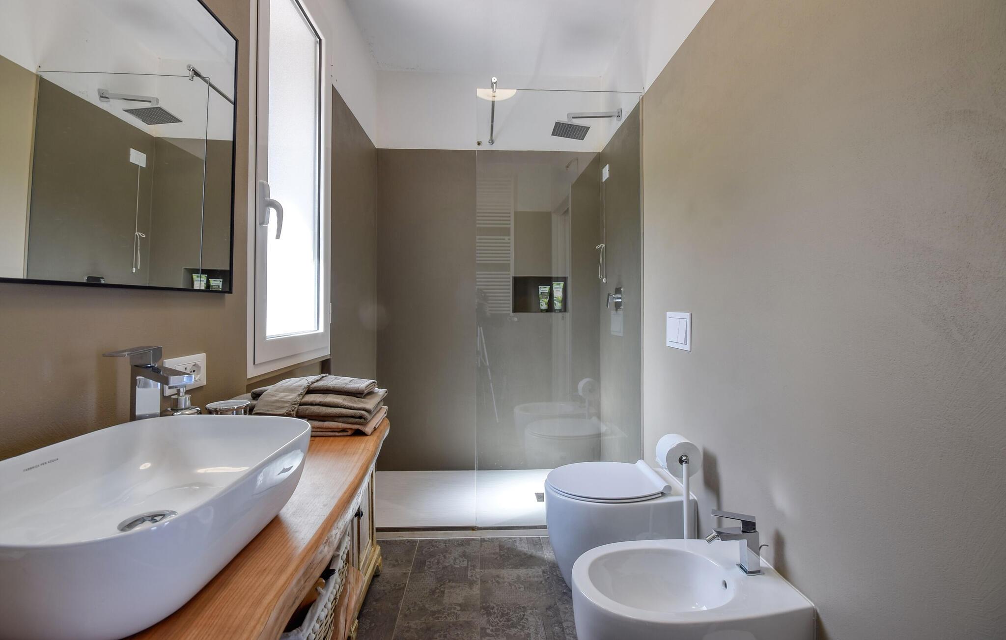 - WC med varmt och kallt vatten, Dusch