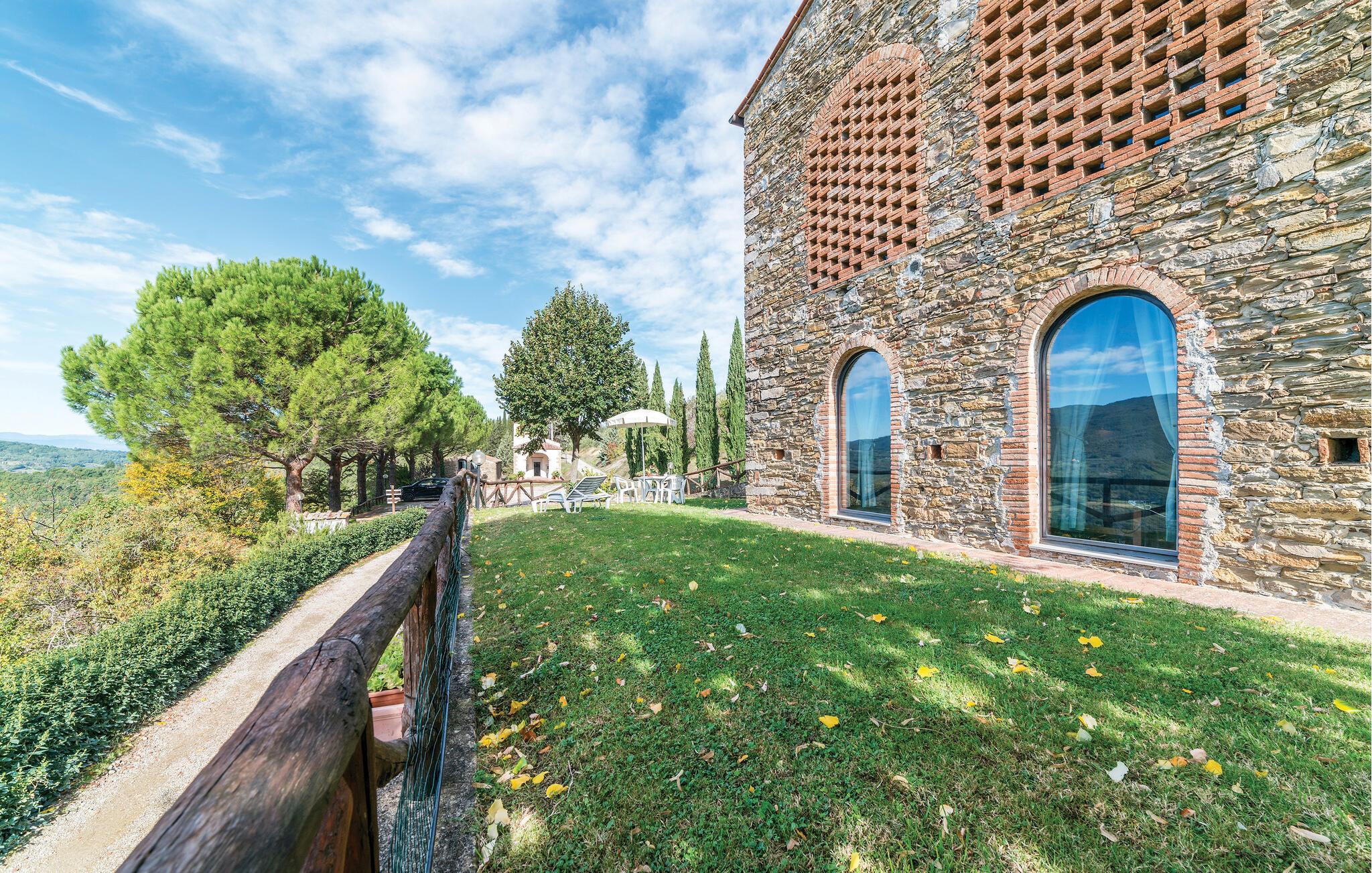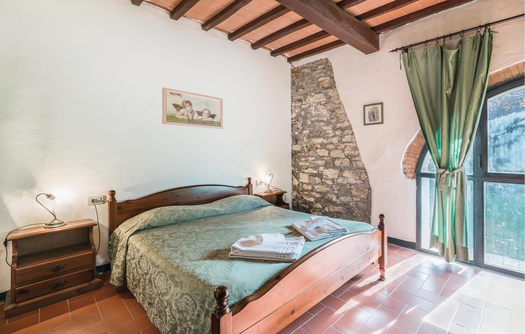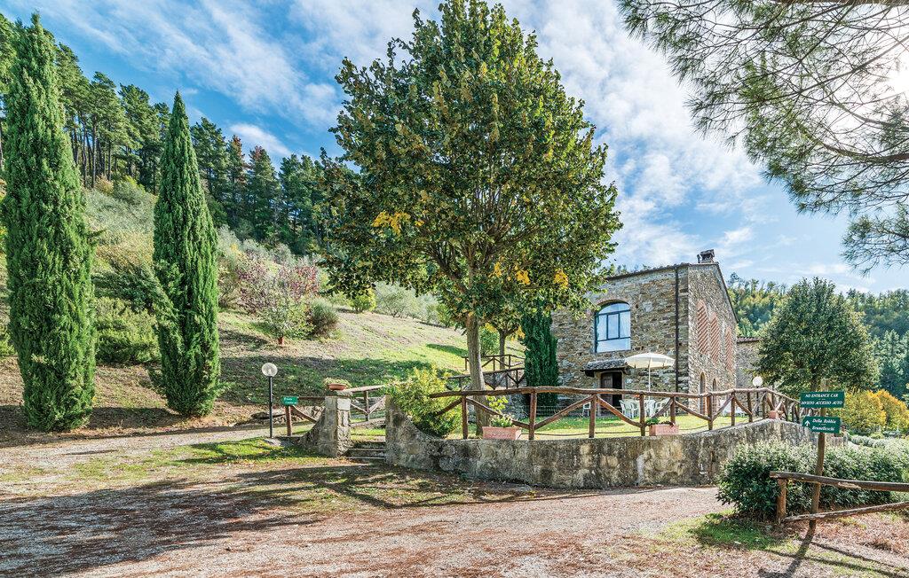 Ditt charmiga semesterhus i Dicomano, omgivet av böljande kullar och frodig grönska, ger dig möjlighet att komma bort från allt. Njut av komforten och lugnet i detta autentiska lanthus samtidigt som du drar nytta av moderna bekvämligheter. Semesterhuset är kärleksfullt utformat och inbjuder till att dröja sig kvar. Det rymliga vardagsrummet med traditionella träbjälkar och terrakottagolv skapar en varm atmosfär. Använd den öppna spisen för att tillbringa mysiga kvällar eller laga läckra rätter med regionala ingredienser i det öppna köket. Matplatsen erbjuder gott om utrymme för gemensamma måltider, där du kan skapa oförglömliga stunder med familj eller vänner.