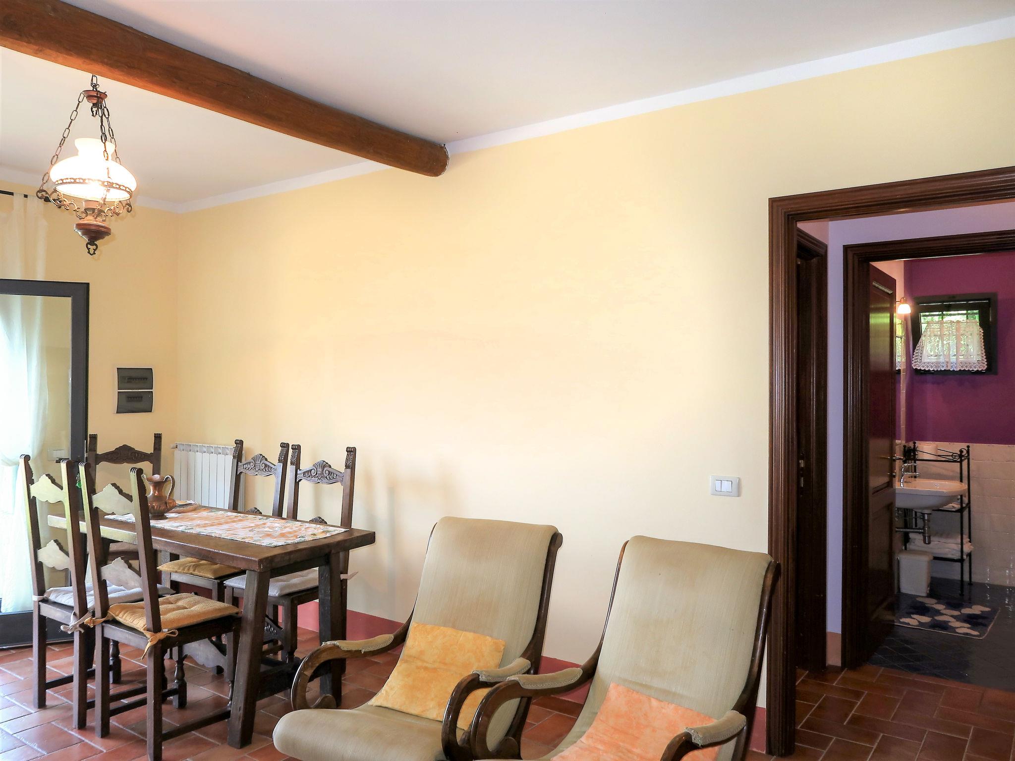 3-room apartment 50 m2, on the ground floor. Rustic and cosy furnishings: living/dining room with open-hearth fireplace, dining table and satellite TV. Exit to the garden. 1 room with 1 french bed (170 cm). 1 room with 2 beds (85 cm). Open kitchen (dishwasher, Gas stove, 4 gas rings, microwave, electric coffee machine). Shower/bidet/WC. Heating. Patio. Terrace furniture, box-room. Panoramic view. Facilities: children's high chair, baby cot for up to 2 year olds. Internet (WiFi, free). Parking (1 car). Please note: non-smoking house. Maximum 1 pet/ dog allowed. Private entrance. No mandatory extra charges to be paid on-site except for local tax. IT048013C28OHJWIUN