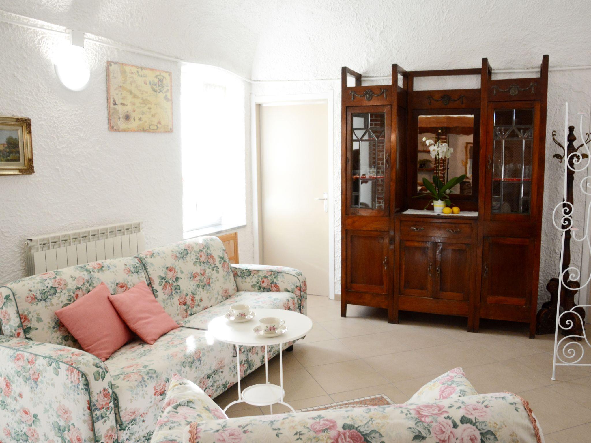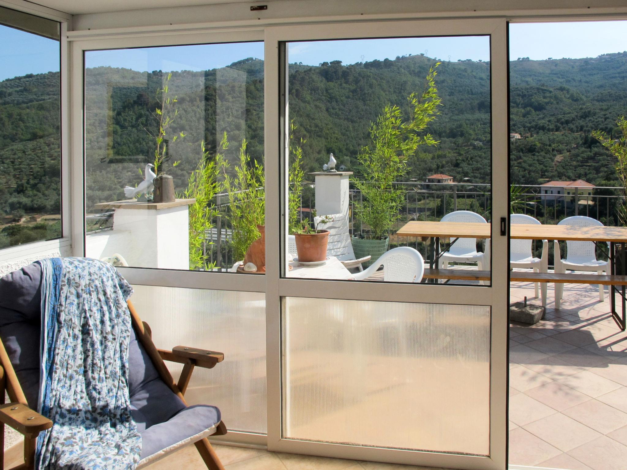 "Daniela (DOL295)", 4-room apartment 120 m2 on 2nd floor. Beautiful and cosy furnishings: living/sleeping room with veranda with 1 double sofabed, 2 folding beds, open-hearth fireplace, satellite TV and heating stove. 1 room with 1 french bed (160 cm). 1 room with 2 beds (80 cm). 1 room, window onto the courtyard with 1 bed (80 cm). Kitchen (oven, dishwasher, 4 gas rings, toaster, kettle, microwave, freezer, electric coffee machine, Capsules for coffee machine (SAECO)) with dining table. Exit to the terrace, to the veranda. Shower/WC. Heating. Terrace. Terrace furniture, barbecue (portable), deck chairs (2), conservatory. Beautiful panoramic view of the valley, the countryside and the ocean. Facilities: washing machine, iron, mosquito net, children's high chair, baby cot, hair dryer. Internet (WiFi, free). Maximum 2 small pets/ dogs allowed. Bed layout is flexible. There are more sleeping options available than the maximum number of people allowed which may, however, not be exceeded. IT008030C2VLX3KBK8